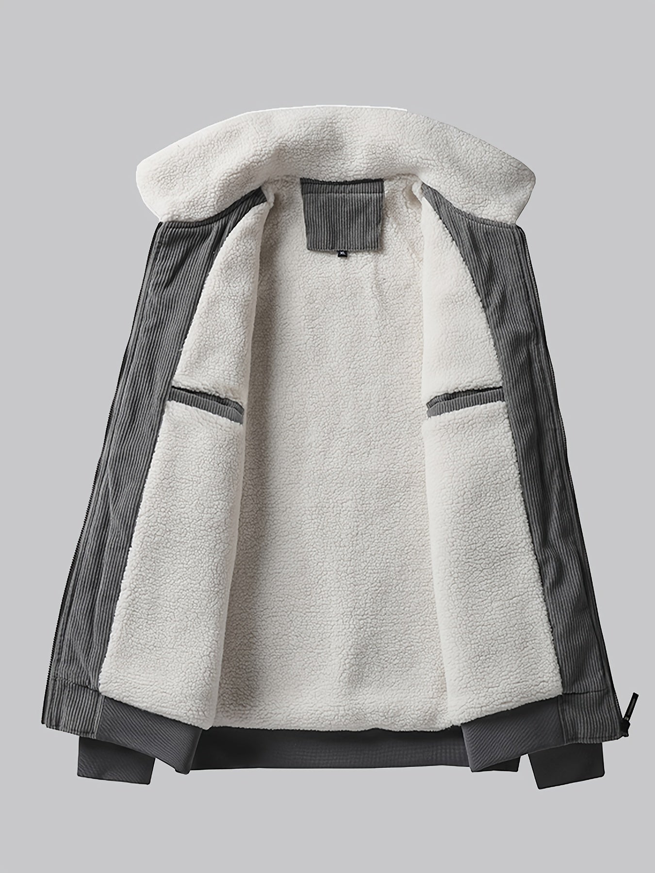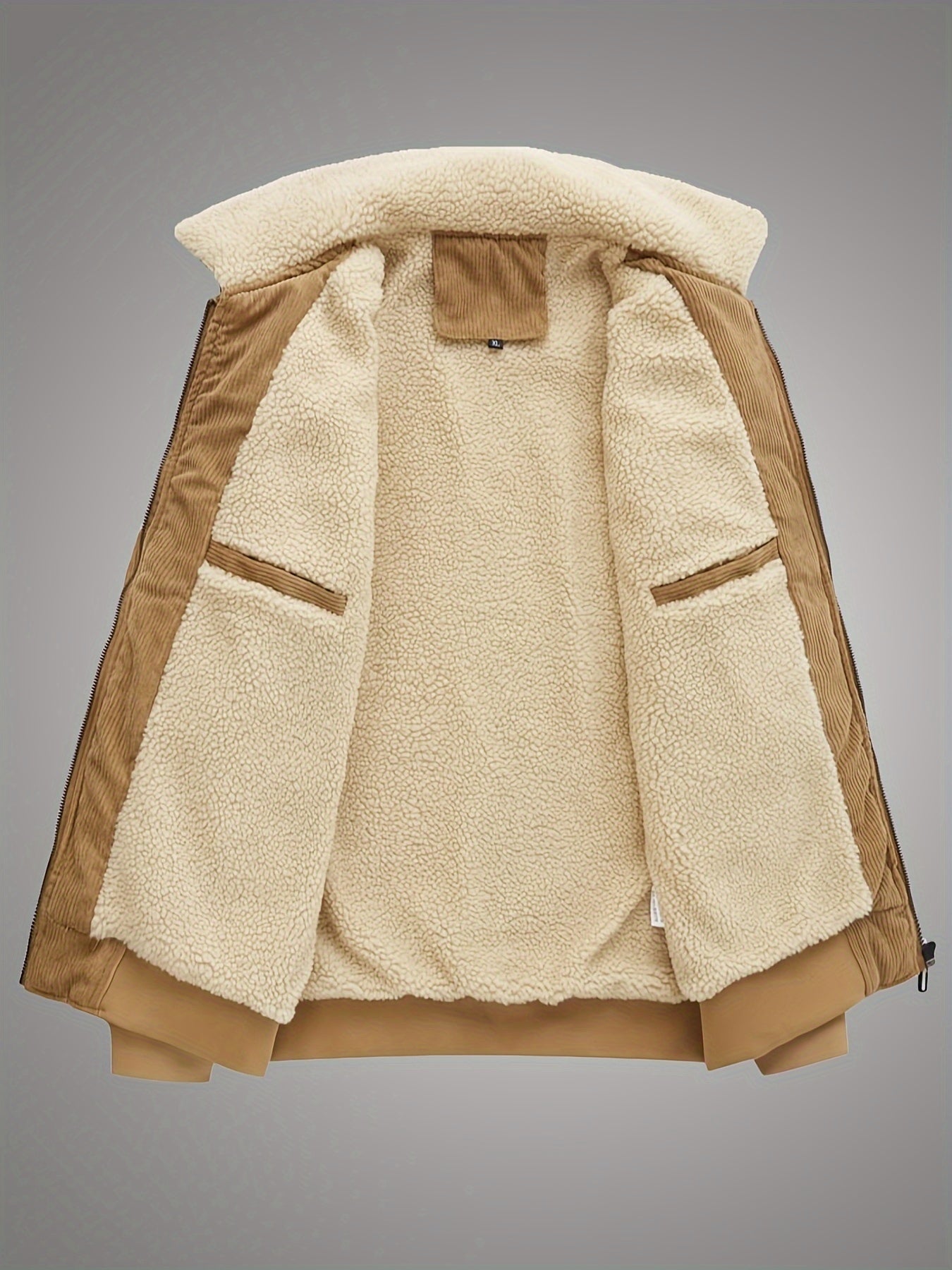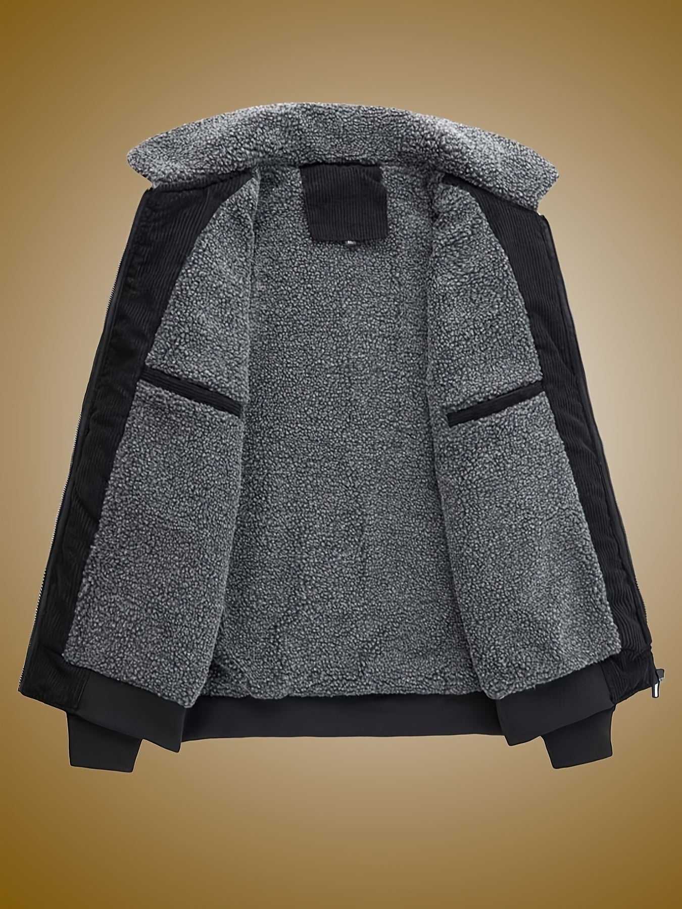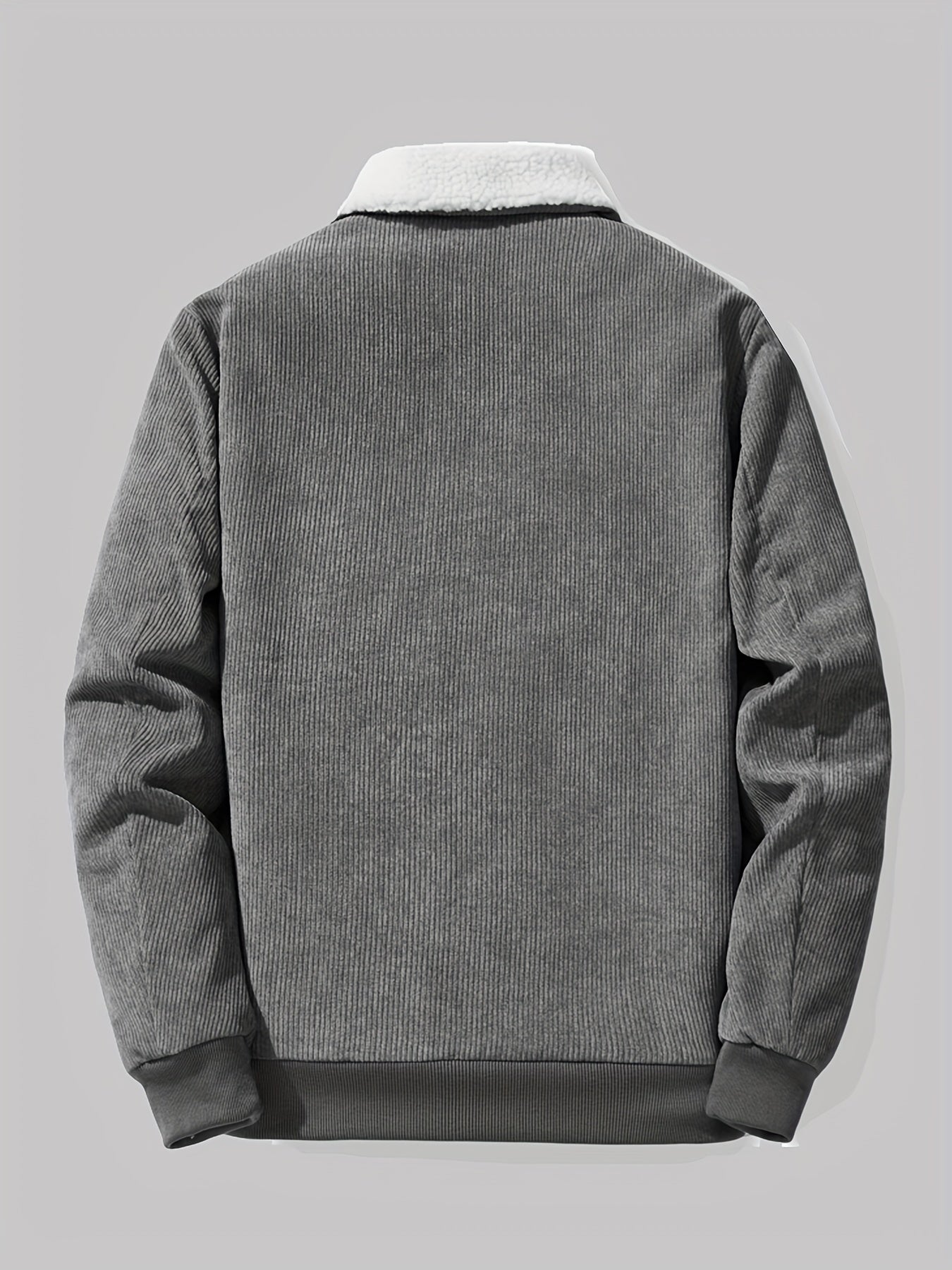 Տղամարդկանց տաք և հաստ երկարաթև օձիքով բաճկոն՝ պիտակի կարկատաններով և գրպաններով, ամենօրյա և դասական բաճկոն բմբուլով աշնանային և ձմեռային բացօթյա հագուստի համար