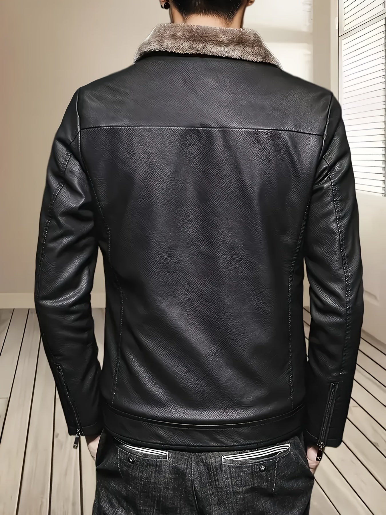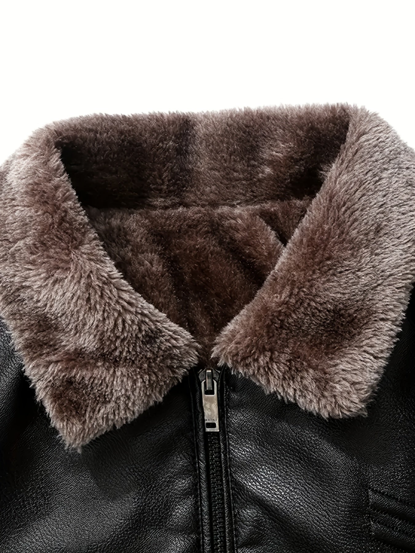 Men's Windproof Winter Jacket with Fleece & Collar, Zippered Pockets, Warm Coat for Skiing, Hiking, Motorcycle Riding - Hand Washable Cold Weather Outerwear (Black/Brown), Winter Clothes Men, Bomber Jackets For Winter, Mens W