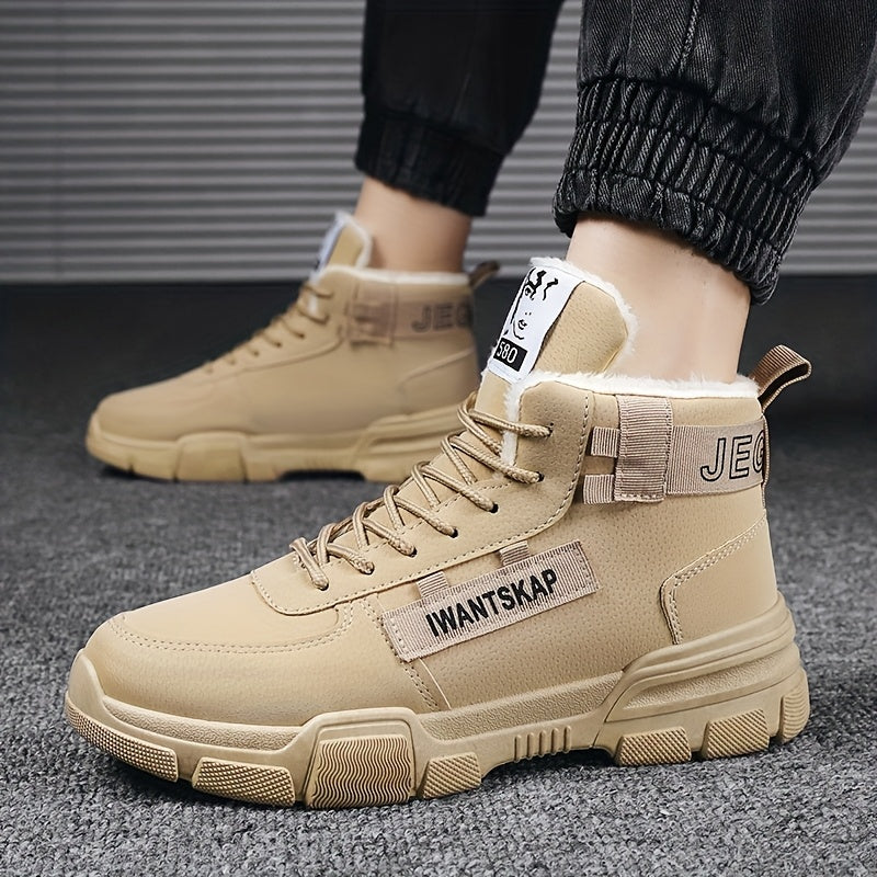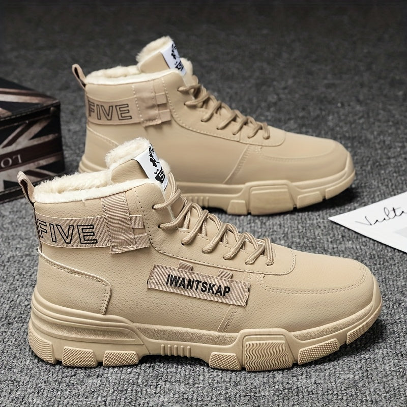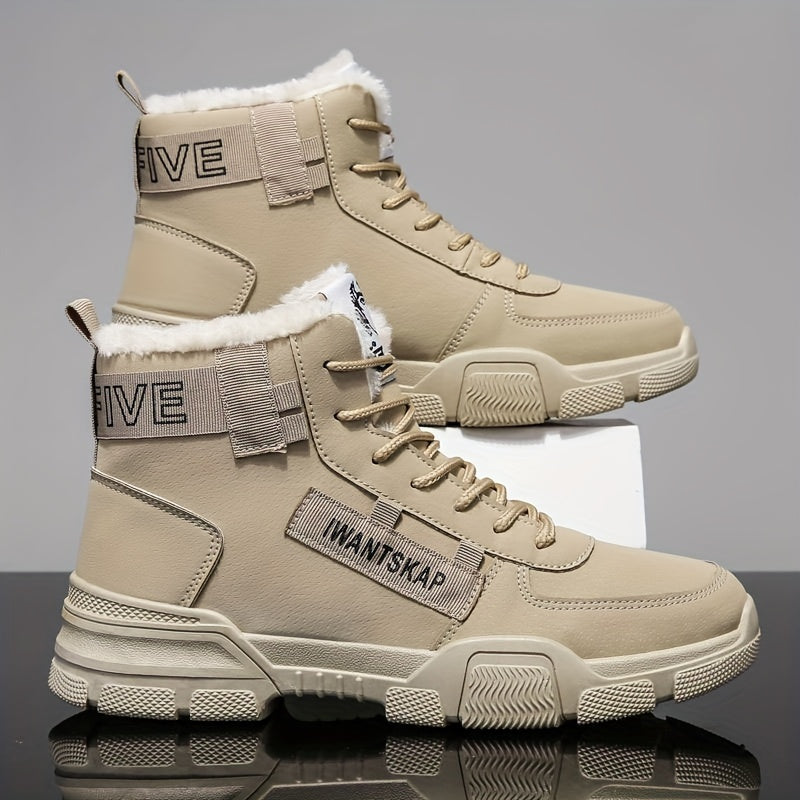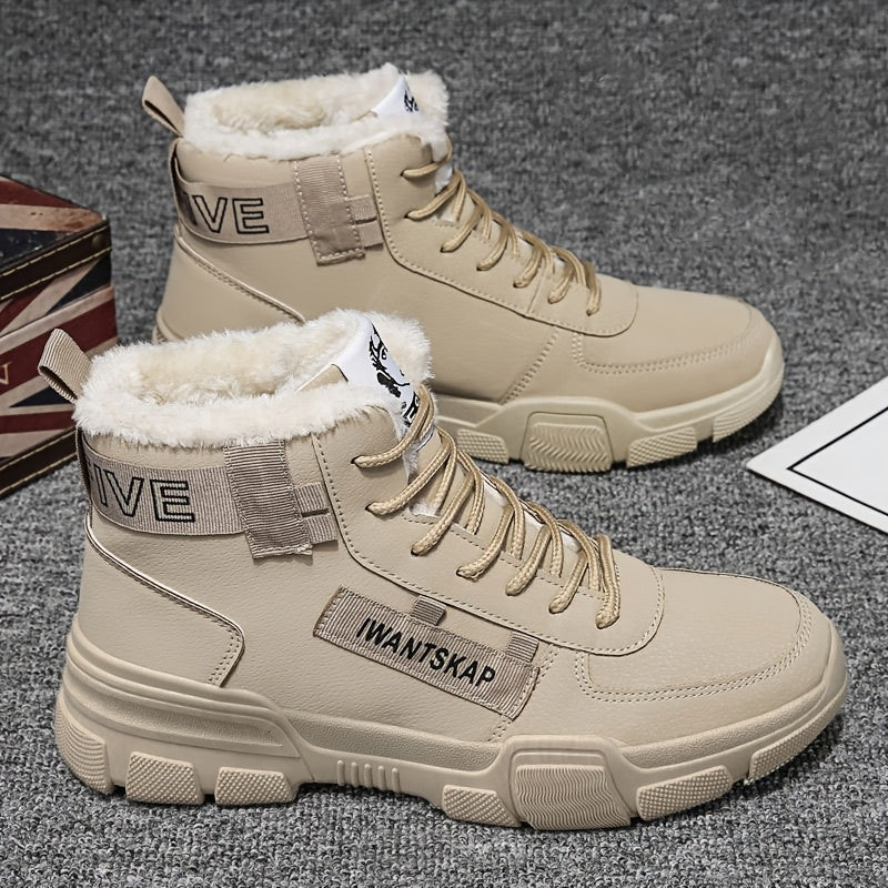 Men'S Winter Boots - Thermal Insulated Anti-Slip Snow Shoes with Cushioned Insole, Beige/Tan Cold Weather Boots for Ice, Snow, and Everyday - Lace-Up Ankle Support, Durable PVC Outsole - Ideal for Hiking, Urban Commute, and O