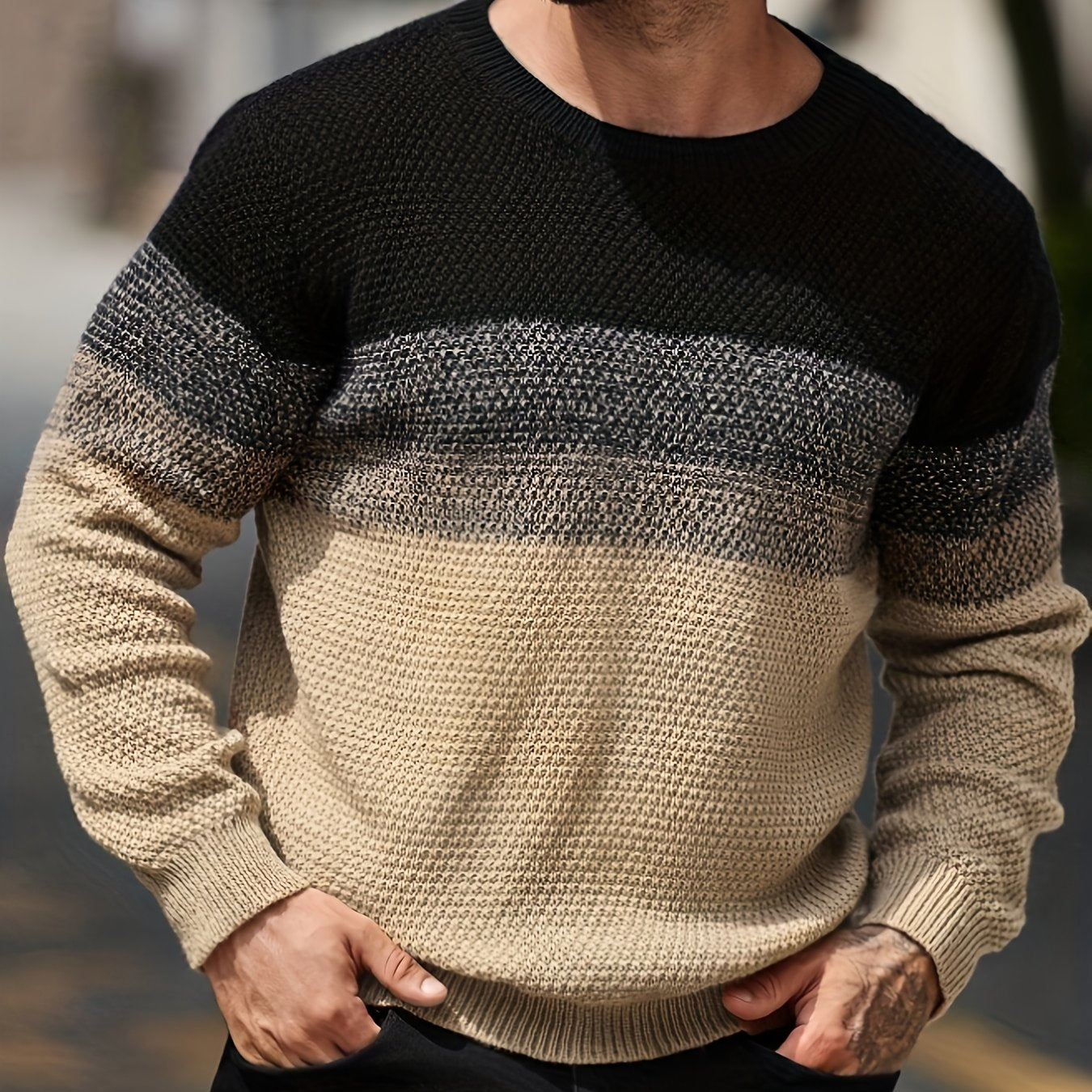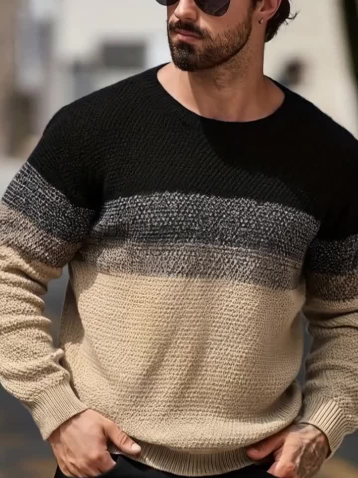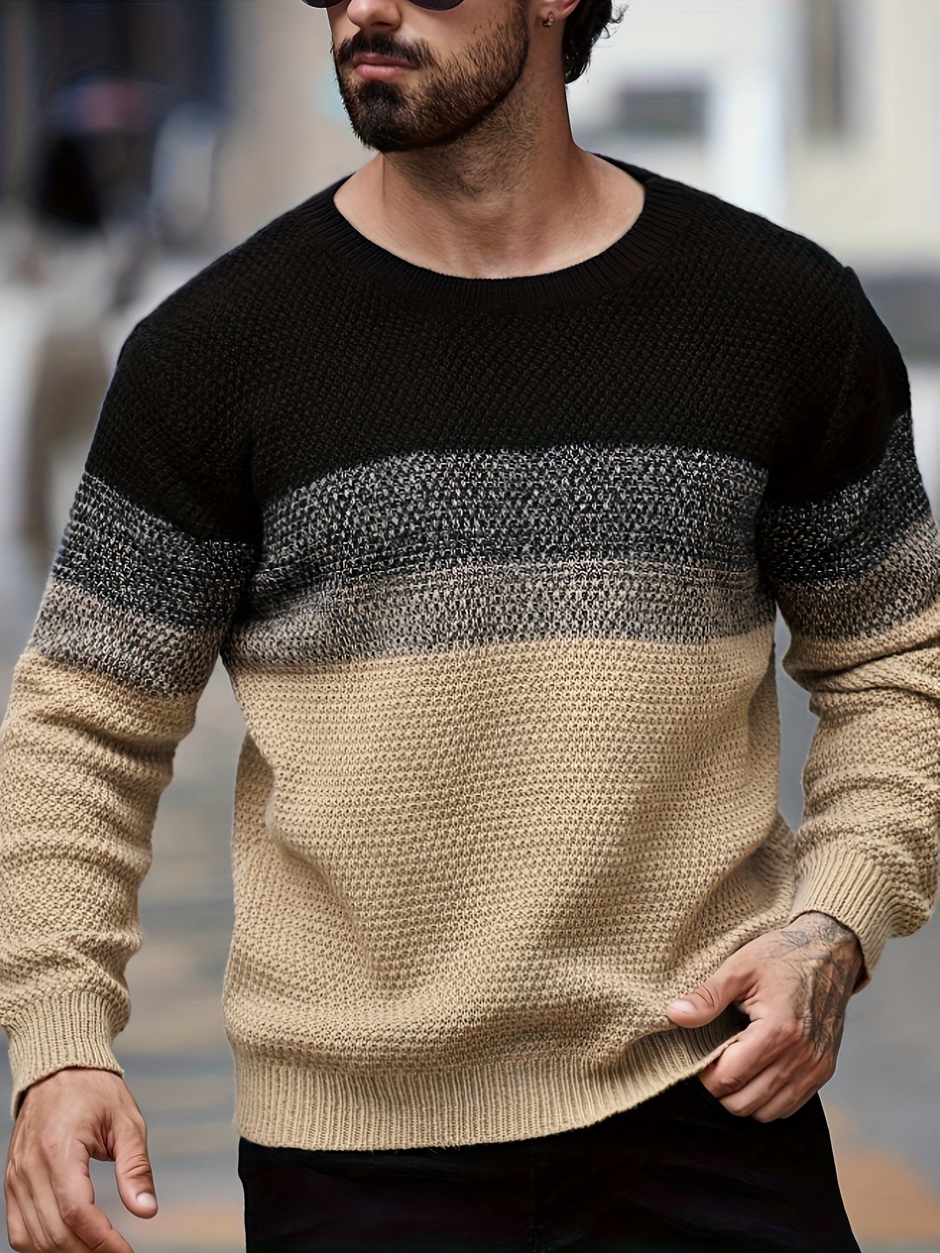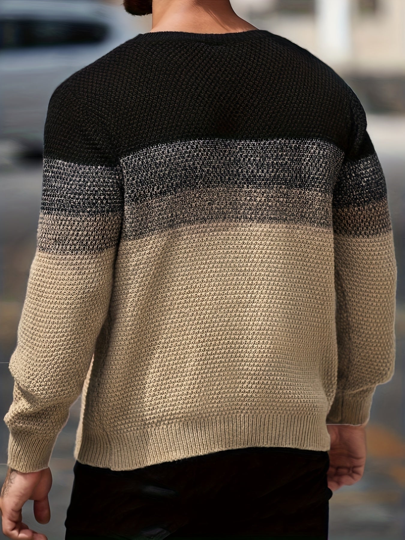 Տղամարդու ձմեռային գրադիենտային գունային բլոկներով տրիկոտաժե սվիտեր - ազատ չափի ոճի օմբրե խառնուրդ (տաք կլոր վզով սվիտեր)՝ ցուրտ եղանակի, առօրյա և էլեգանտ առօրյա հագուստների համար - անթափանցիկ ազատ չափի վերնաշապիկ
