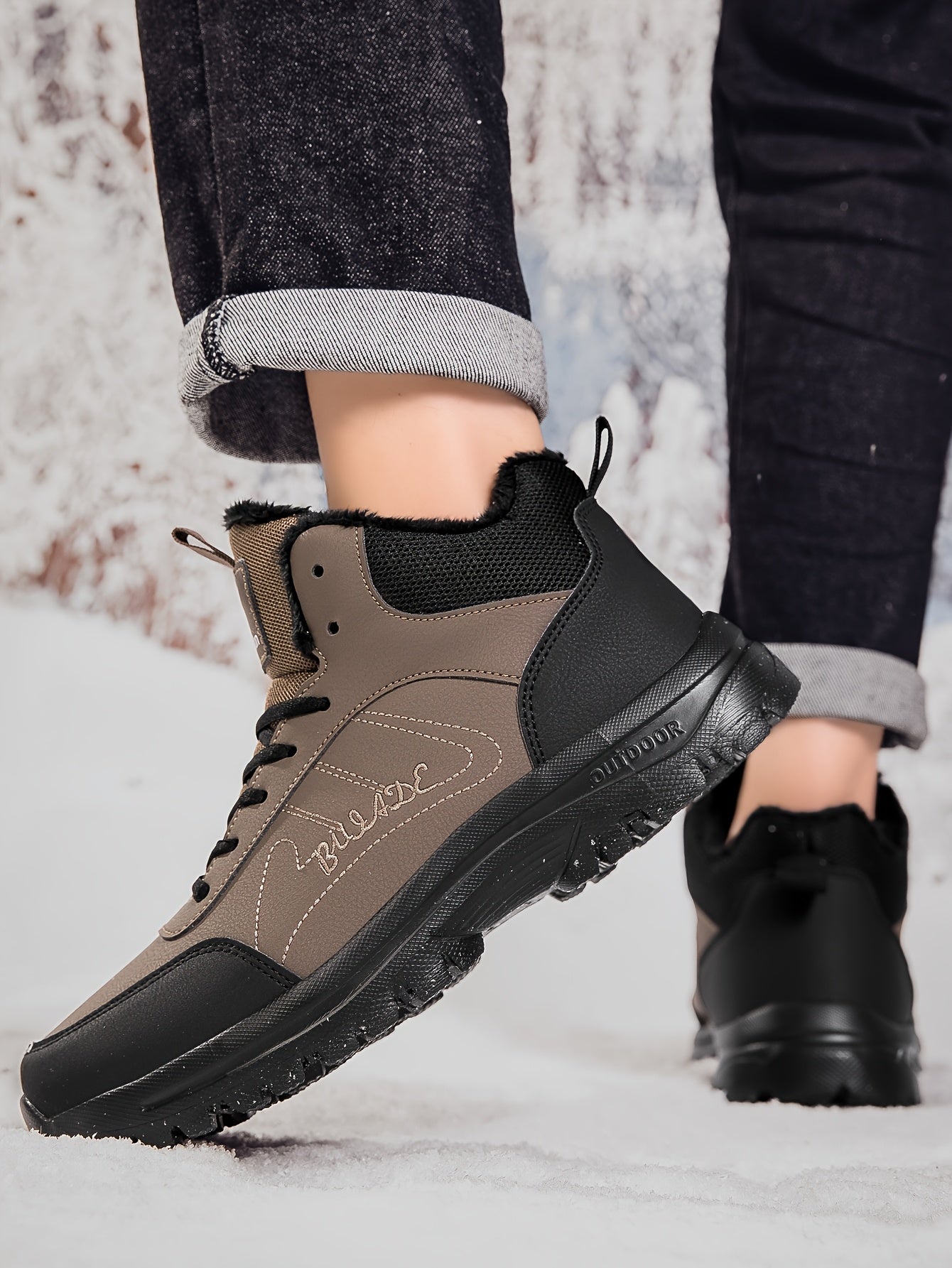Տղամարդկանց ձմեռային բարձրակրունկ կոշիկներ - վերևի մասը, փափուկ ծածկույթ և փափուկ ներբան, չսահող MD ներբան, շագանակագույն/սև արշավային կոշիկներ ձյան, սառույցի և ցուրտ եղանակի համար - թեթև և դիմացկուն ամենօրյա ձմեռային կոշիկներ արշավների համար