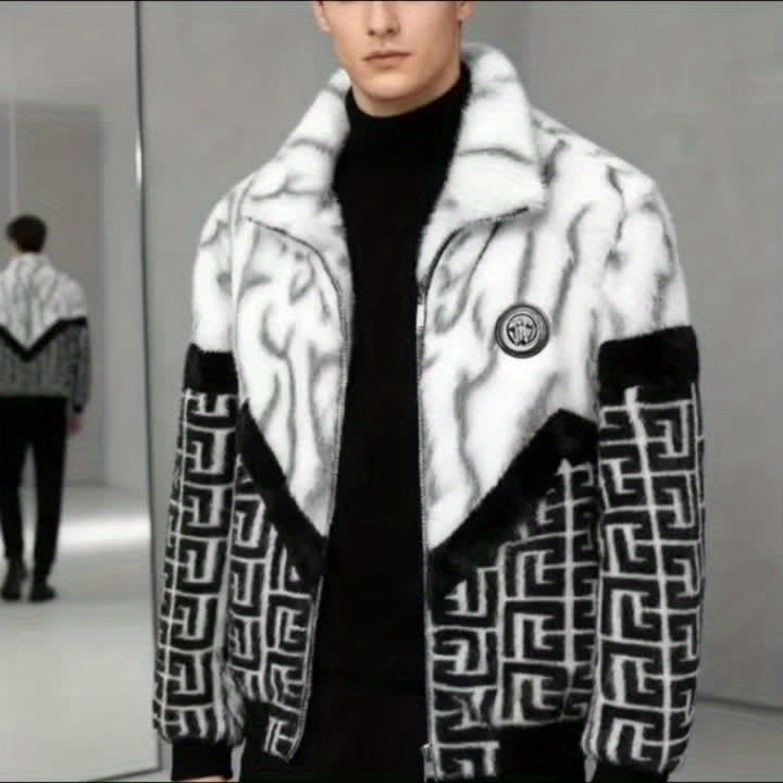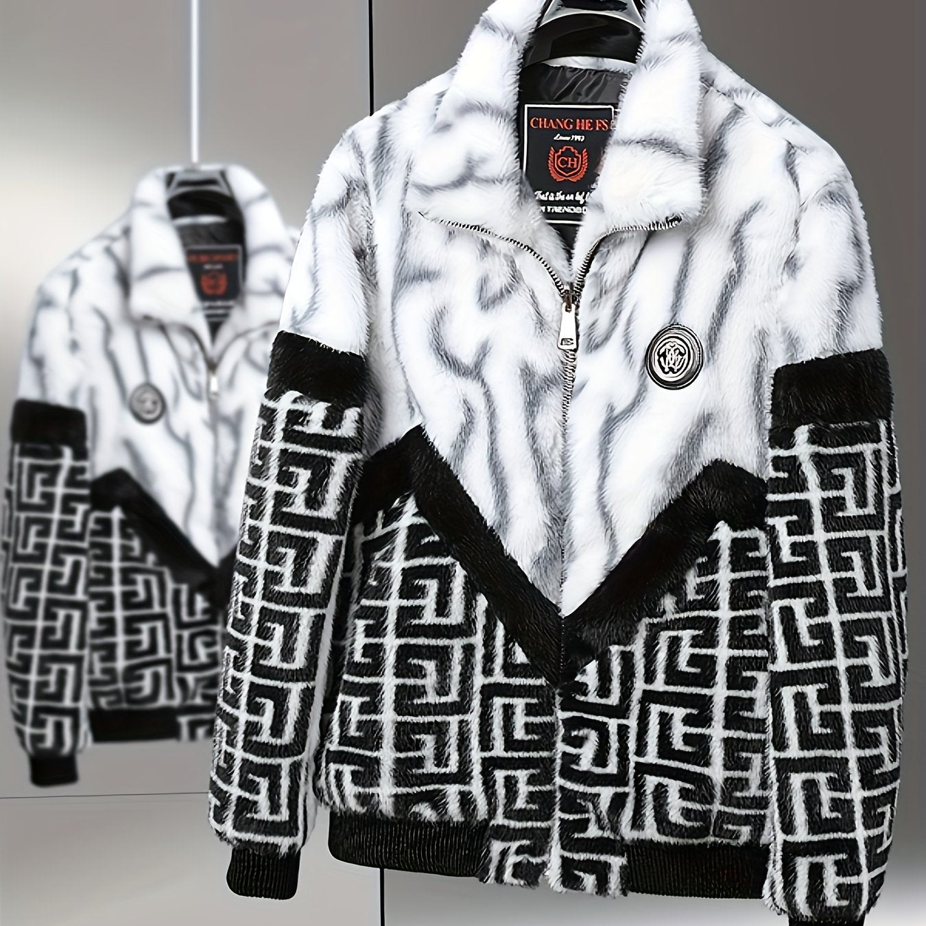 Men'S Winter Jacket - Brown & Black Color Block Coat with Stand-Up Collar, Zipper Closure, Non-Stretch Fabric for Formal & Everyday Cold Weather - Luxury Outerwear for Office, Parties, Casual Outfits, Party Attire, Sophistica