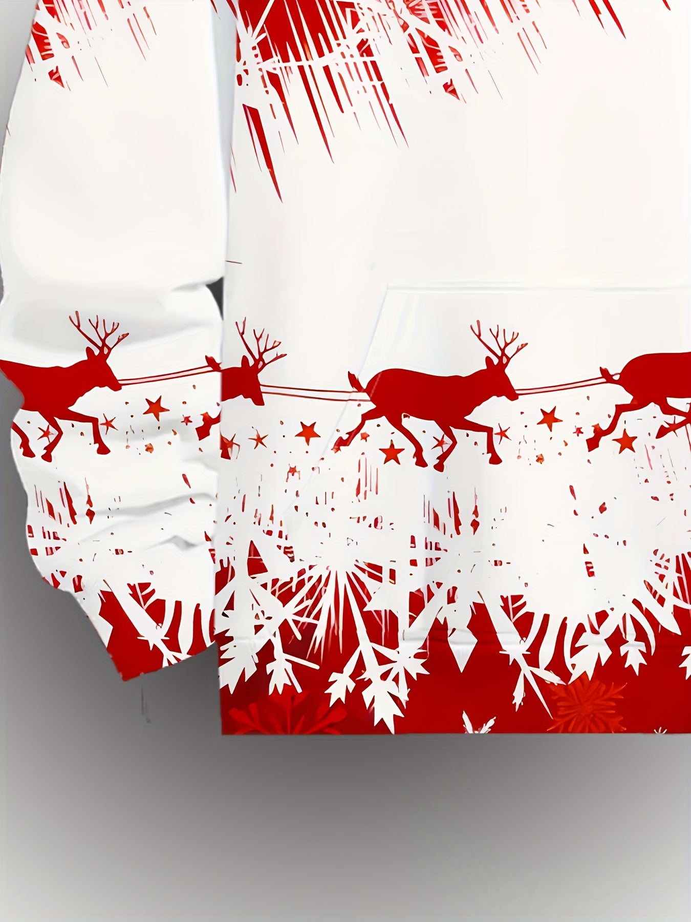 Men's Winter Red & Black Snowflake Print Hooded Sweatshirt - 100% Polyester Casual Pullover Sweater with White Piping, Relaxed Fit for Christmas & New Year's Eve Parties, Machine Washable Spring/Fall Layering Essential (Men's