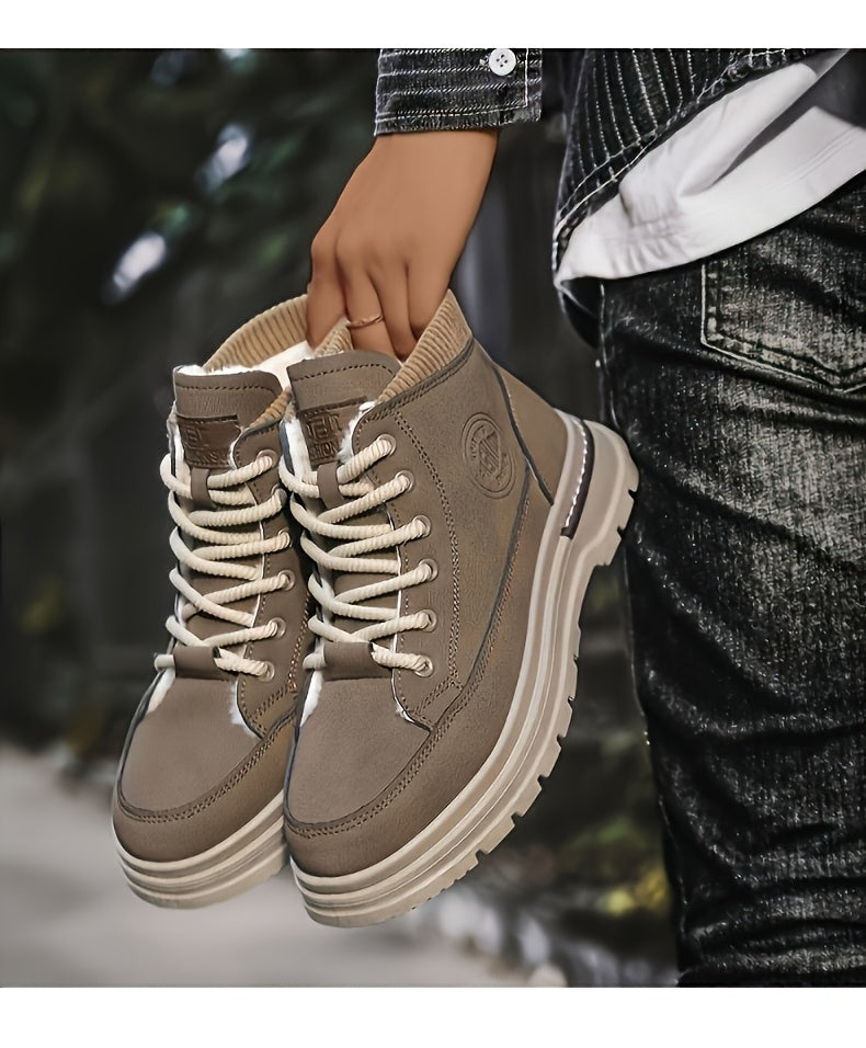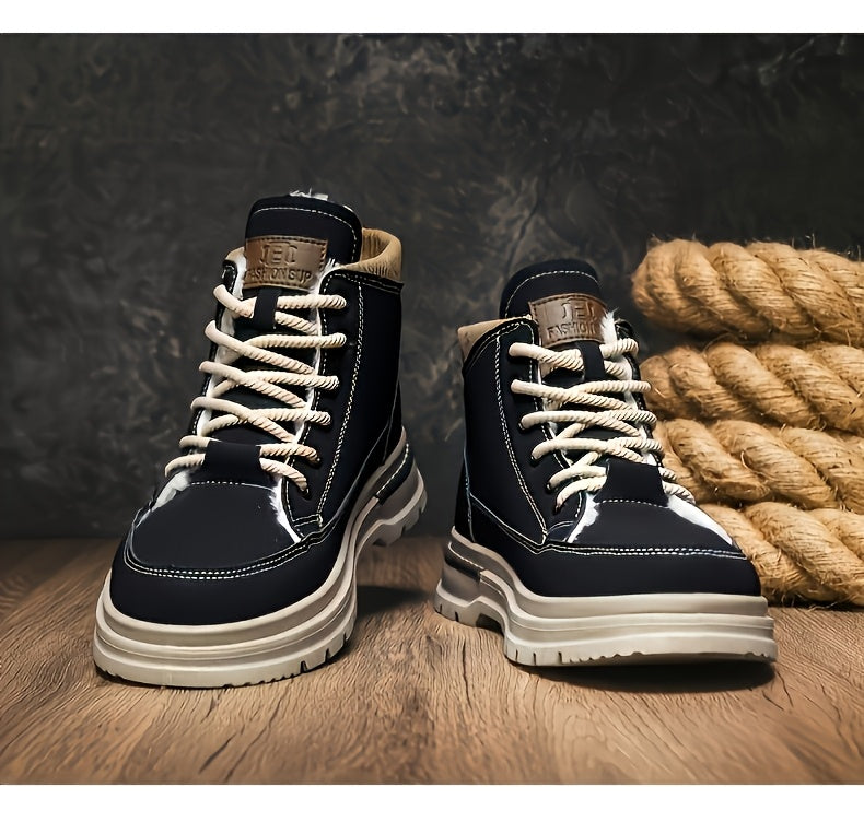 Տղամարդու ձմեռային ձմեռային կոշիկներ՝ նման օձիքով և հաստ կոճով - վերին մասով, PVC քարշակման ակոսով, կապիչներով կոճից մինչև կոճը բարձր արշավային կոշիկներ՝ սառույցի, ձյան, լեռնագնացության համար - տաք, բացօթյա և առօրյա