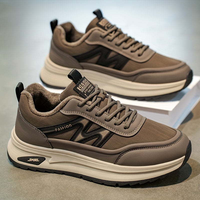 Տղամարդկանց ձմեռային ջերմային ցածրակրունկ սպորտային կոշիկներ՝ տաք, ամբողջությամբ սև, կլոր քթով, կապիչներով, հարմար են բացօթյա, ամենօրյա կրելու համար՝ ռետինե ներբանով և վերին մասով։