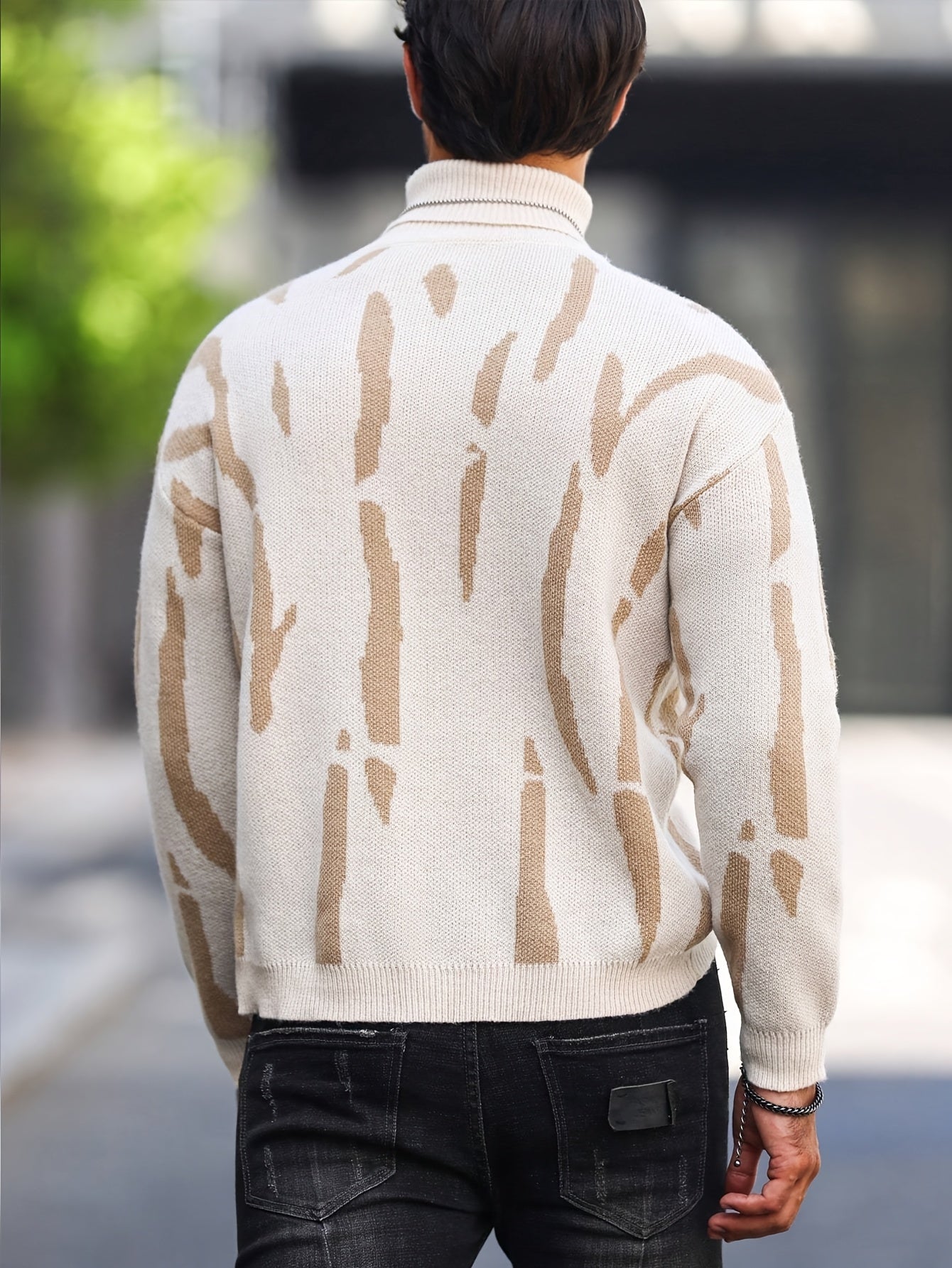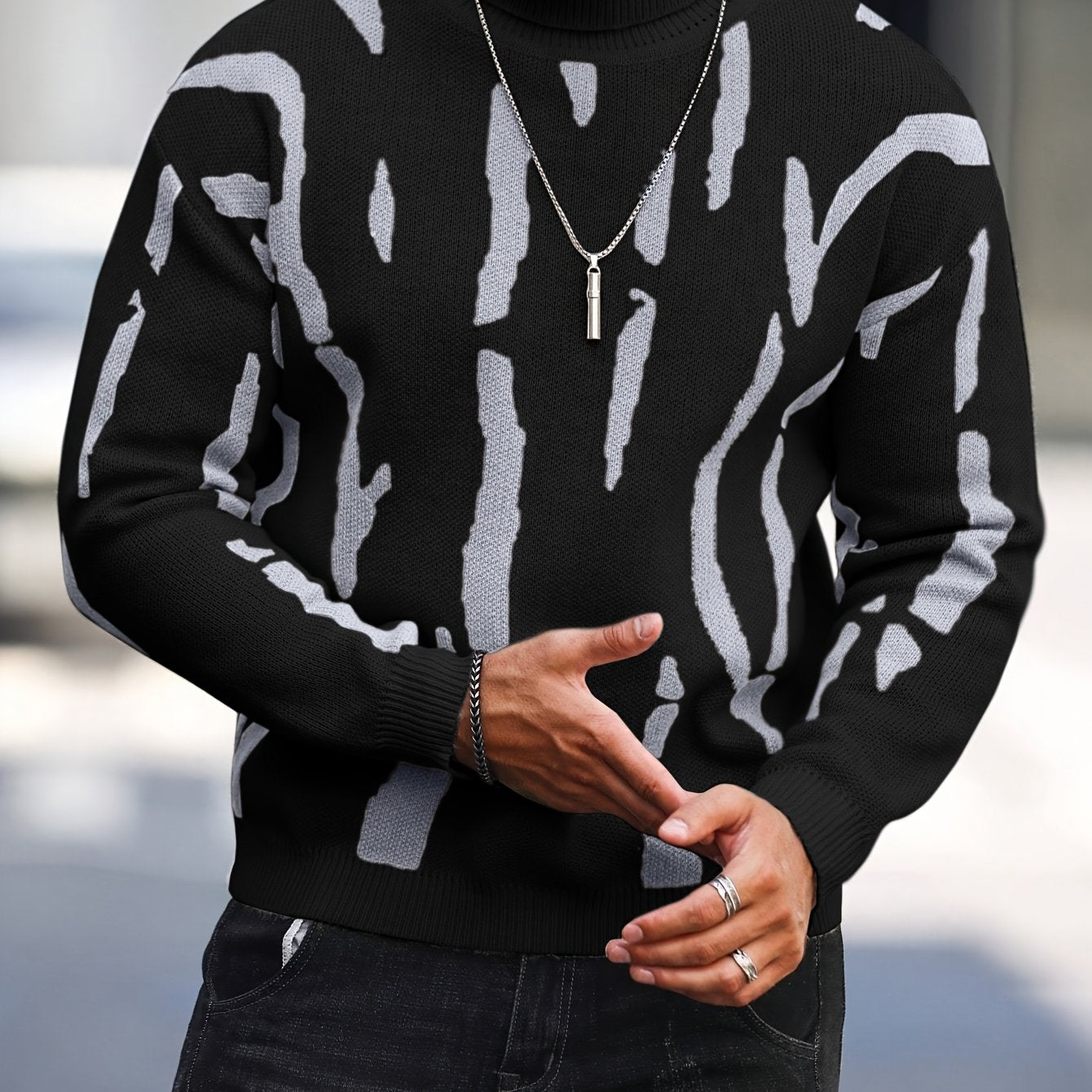 Տղամարդու զեբրա նախշով բարձր վզնոցով նորաձև սվիտեր աշուն-ձմեռ՝ առօրյա տրիկոտաժե պուլովեր
