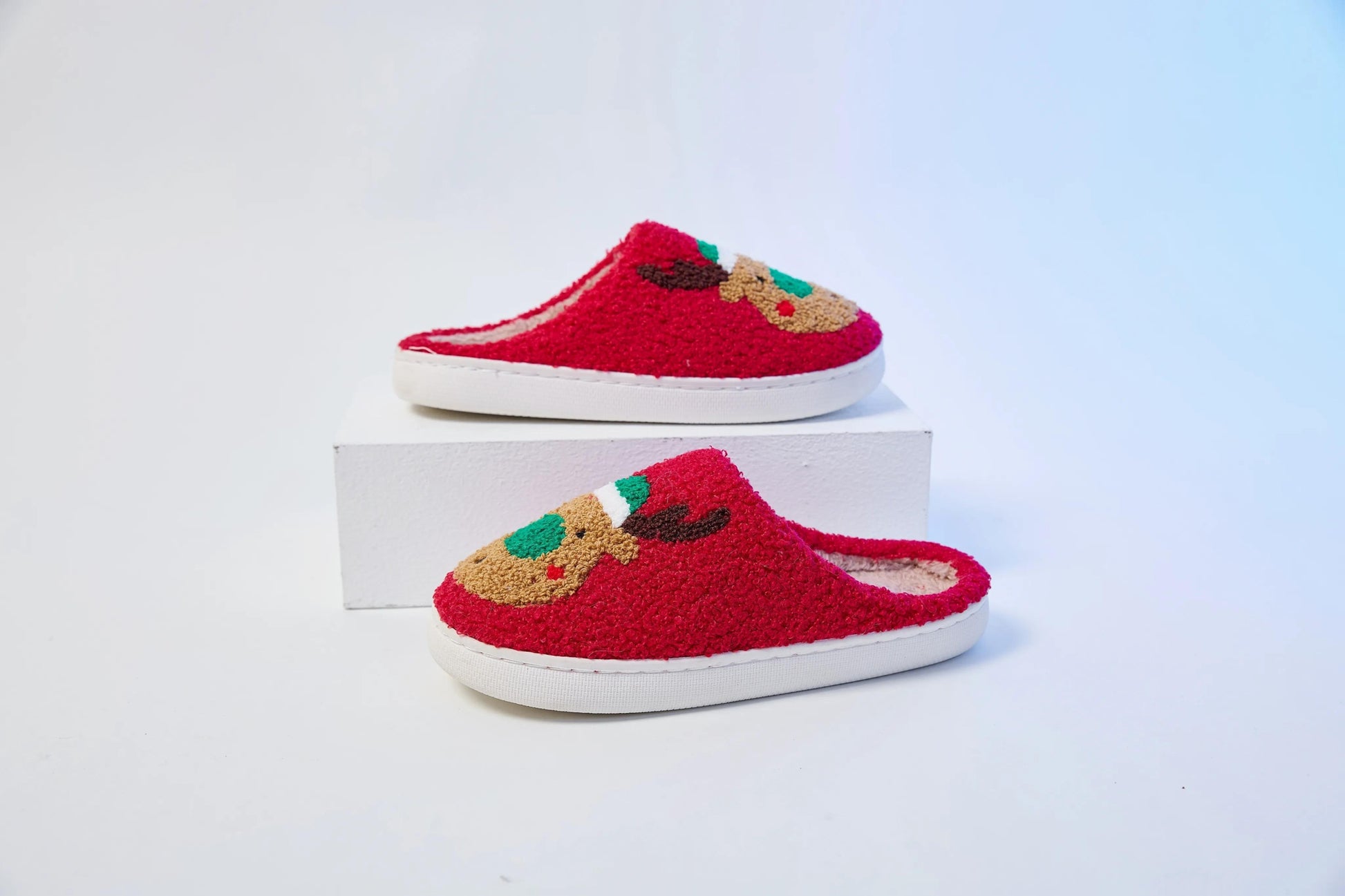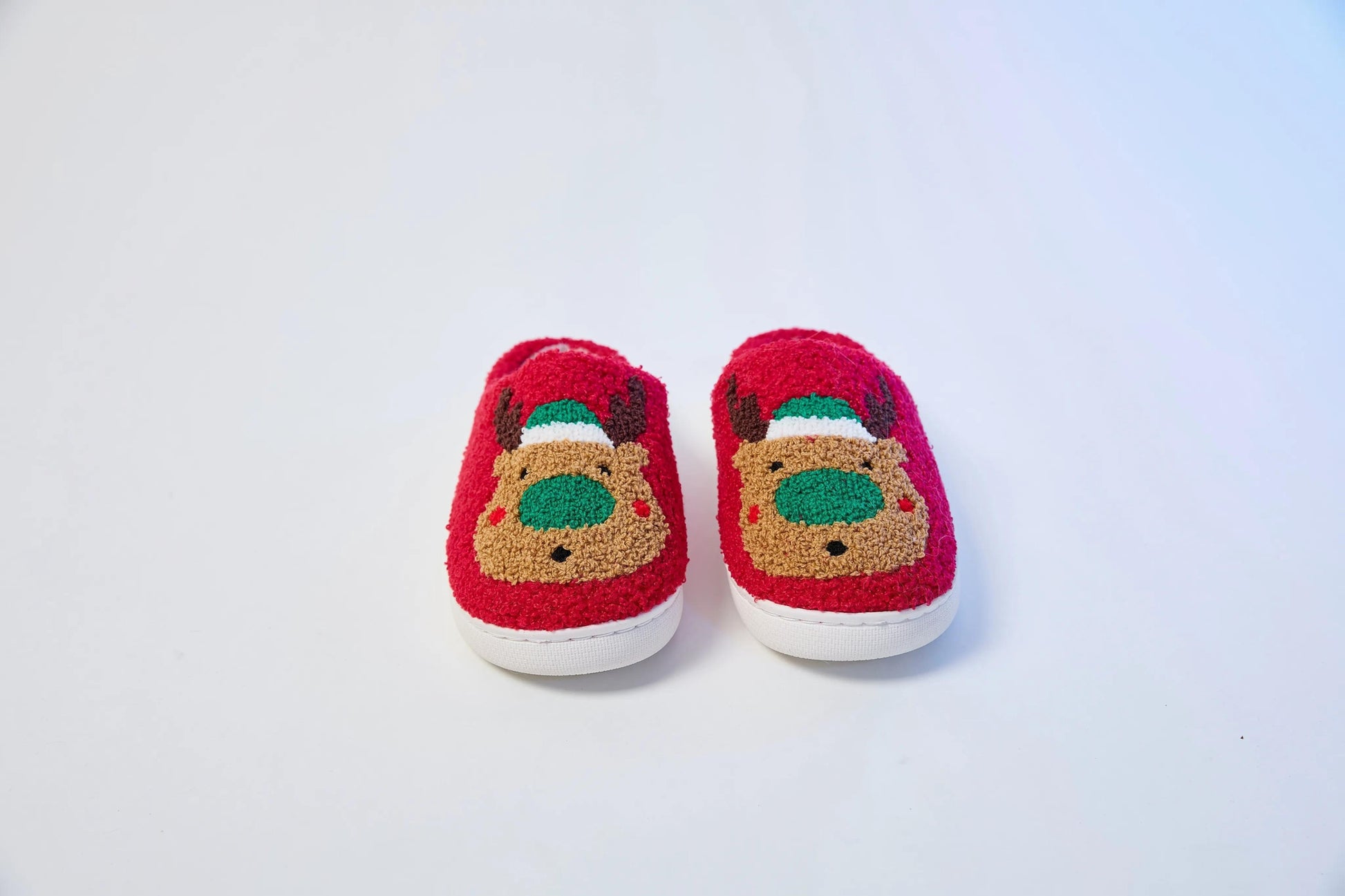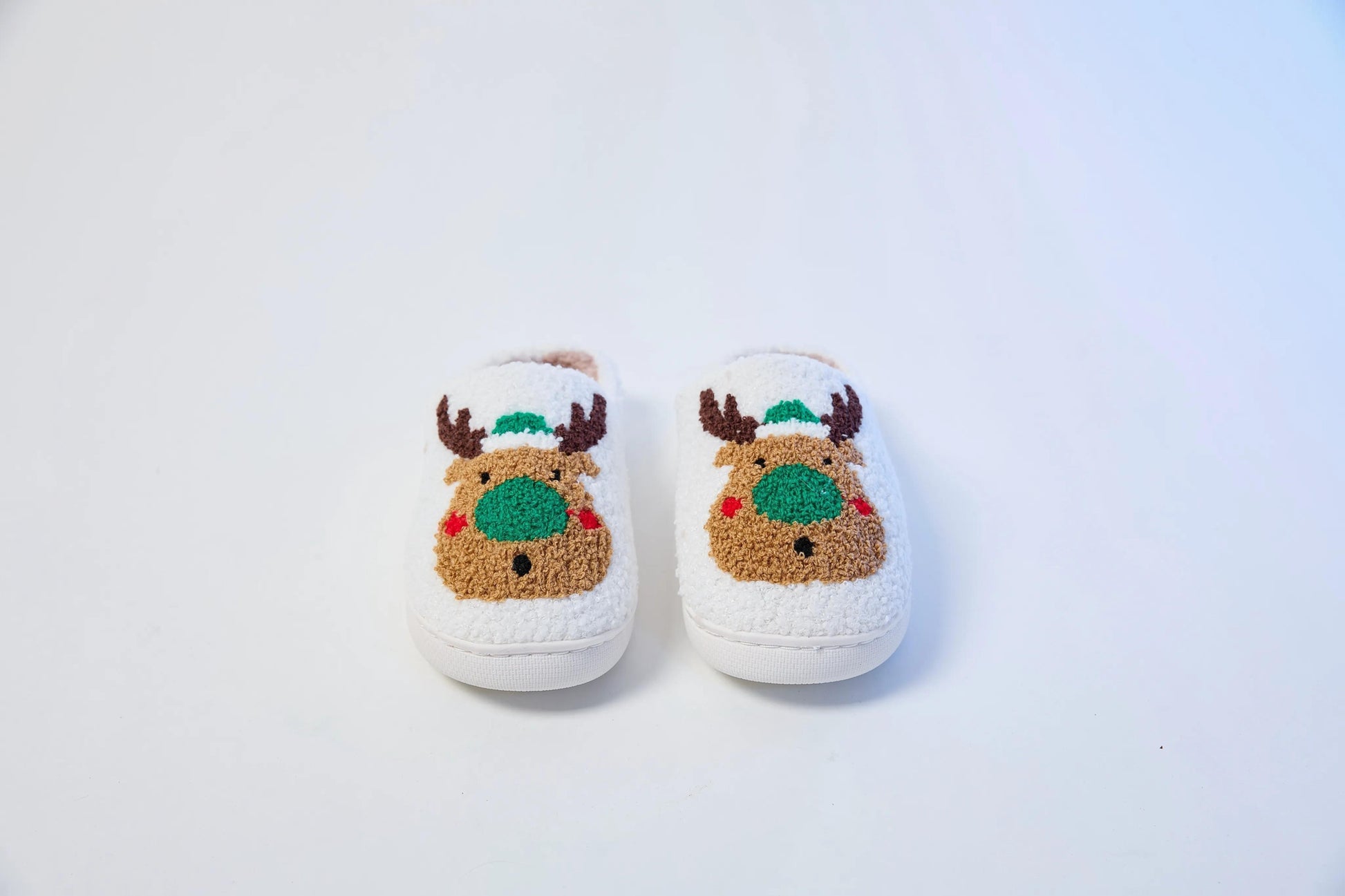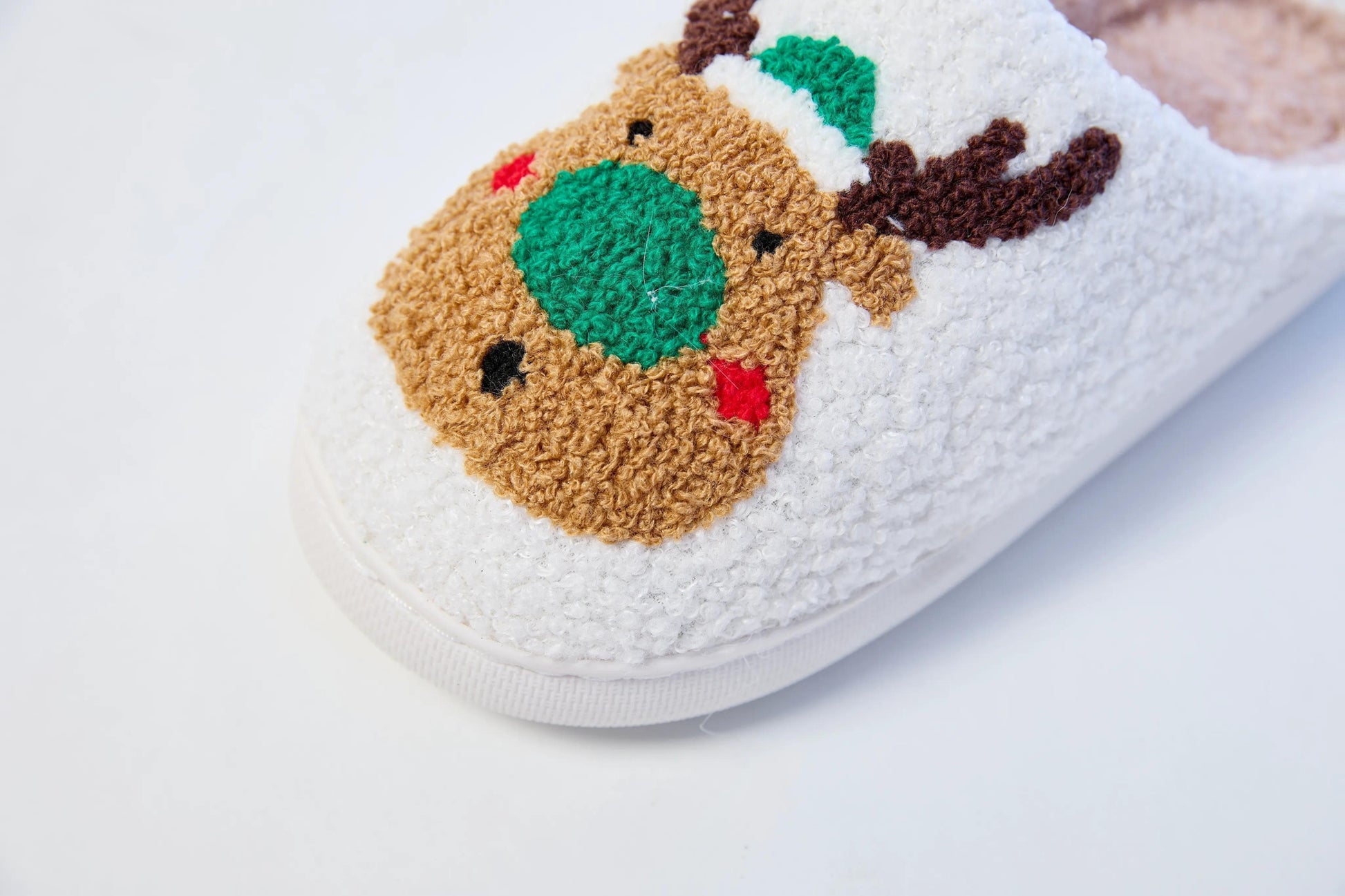 Mrs Hui Men's & Women's Plush Flocked Reindeer Slippers - Cozy Winter Indoor/Outdoor Christmas House with Antlers, Soft Warm & TPR Sole, Unisex -Like Footwear for Holiday Parties, Slippers For Women, House Slippers For Women,