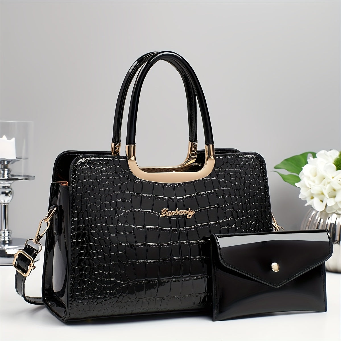 Նոր 2025 թվականի նորաձև կոկորդիլոսի նախշերով դաջված կանացի ձեռքի պայուսակ, ոճային փայլուն, թեթև, շքեղ մայրիկի պայուսակ