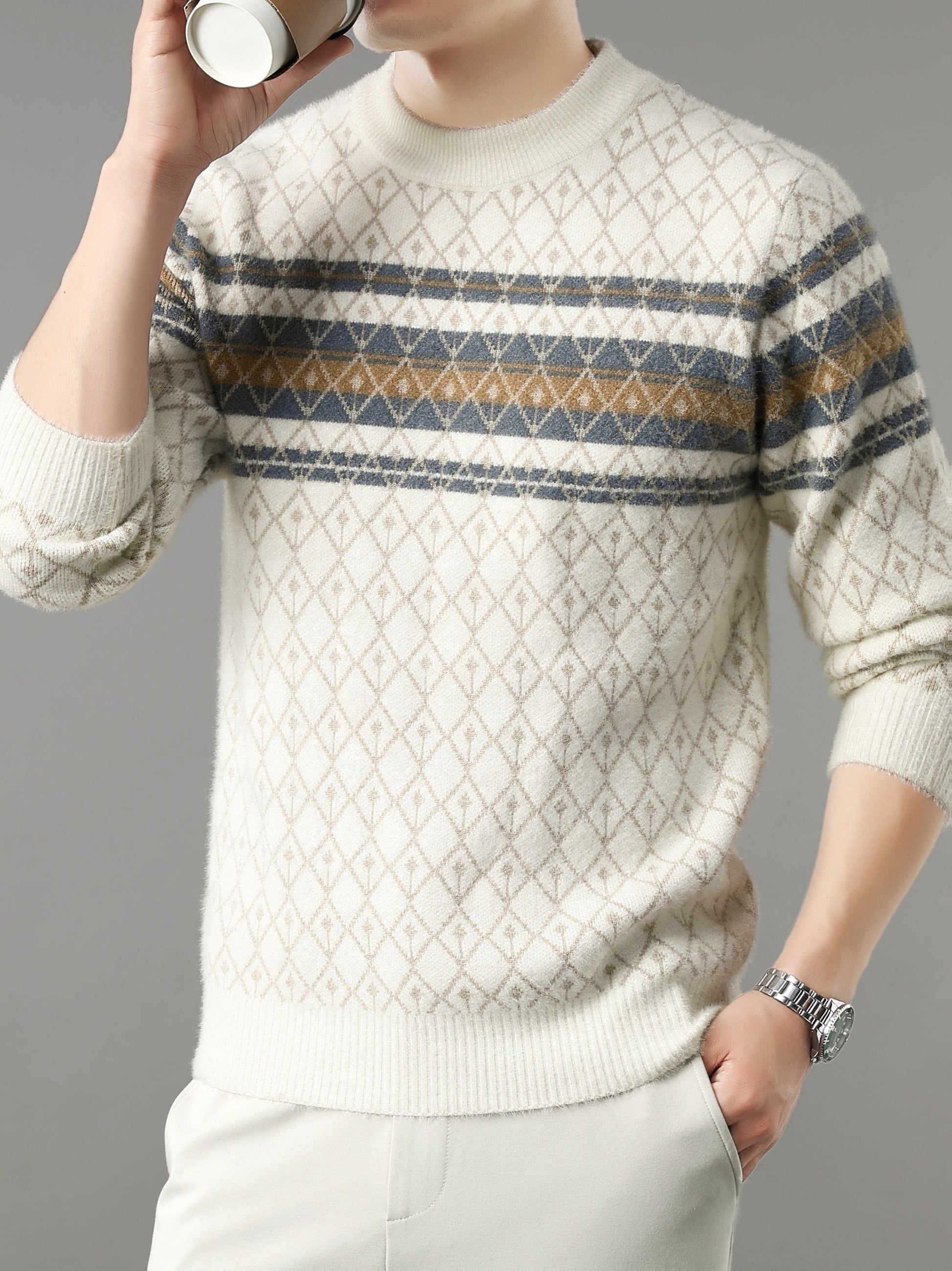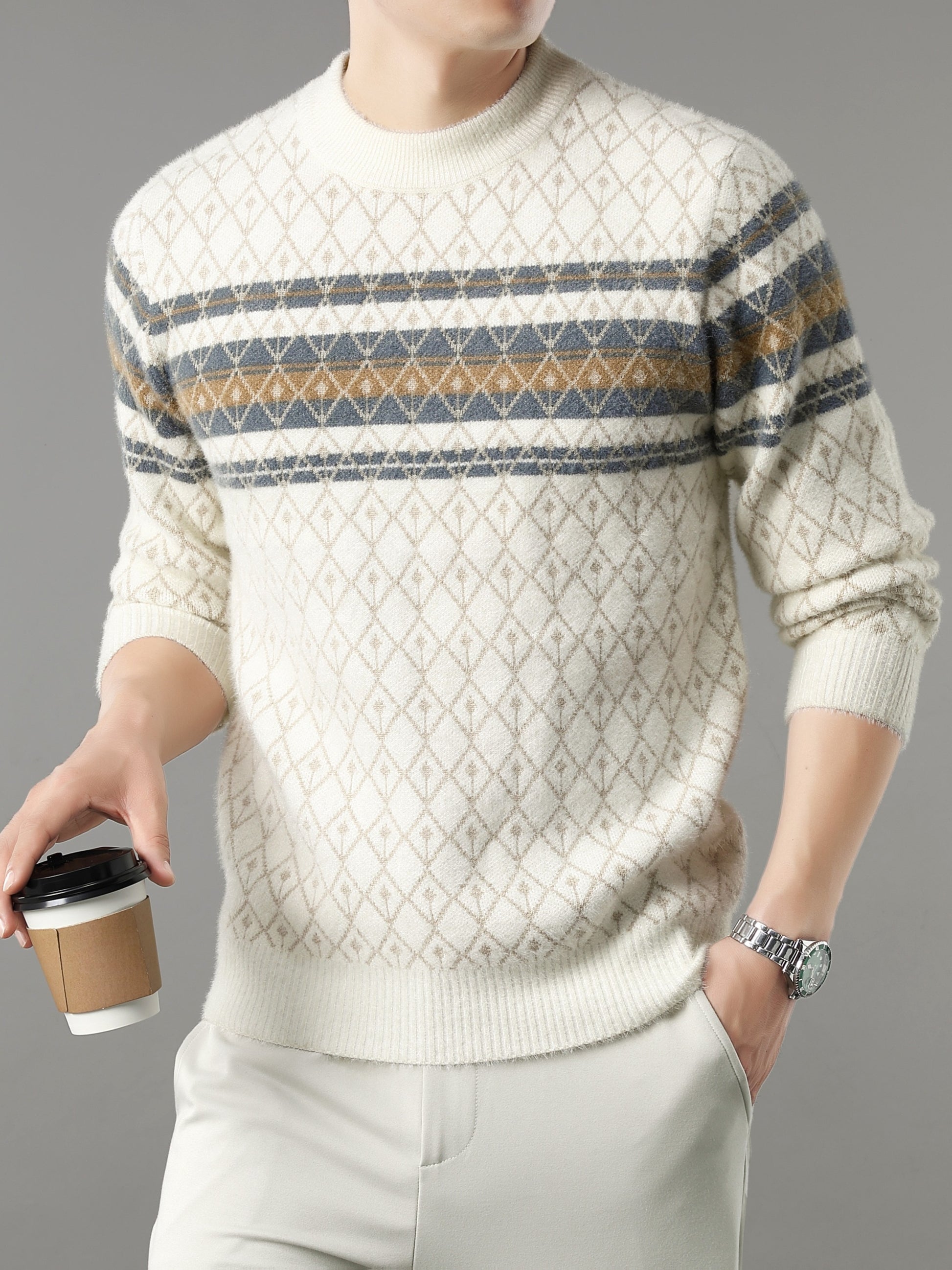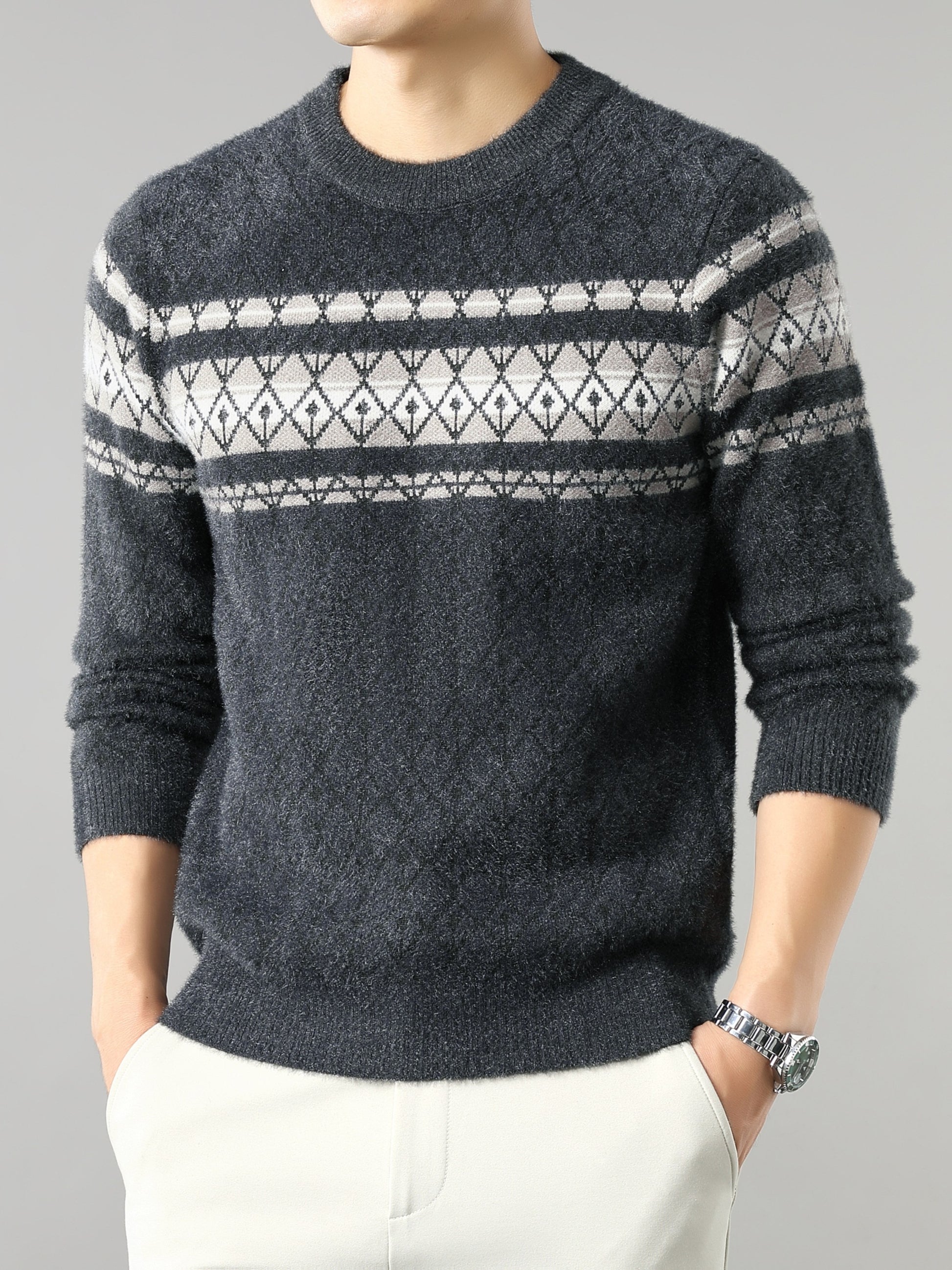 Նոր աշնանային և ձմեռային տղամարդկանց ոճային սվիտեր, բազմակողմանի վերնազգեստի կամ շերտավոր կրելու համար, պատրաստված բարձրորակ հաստ գործվածքից