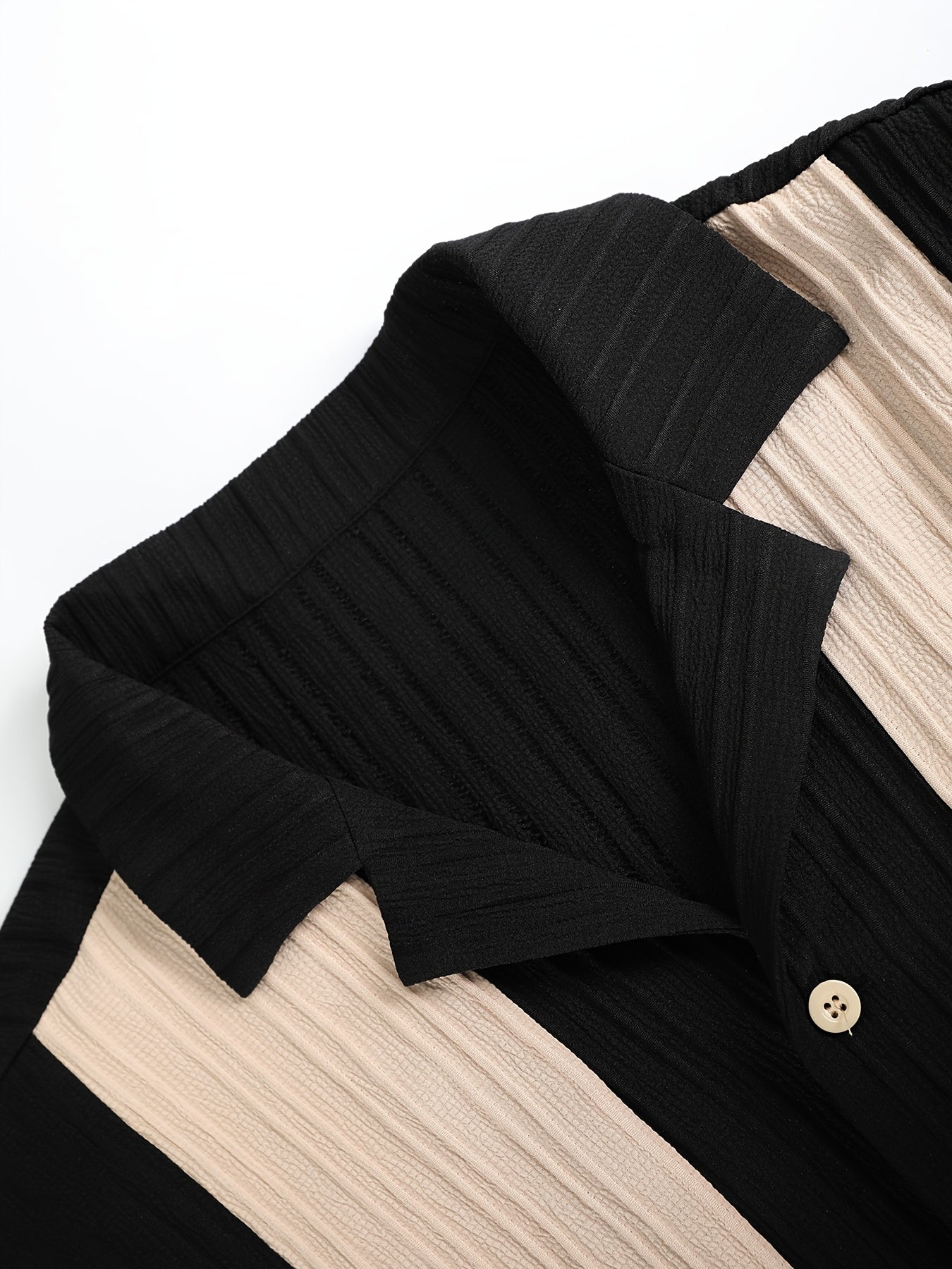 Տղամարդկանց նոր գունագեղ ֆրանսիական գծավոր կարճ թևքով վերնաշապիկի և տաբատի հավաքածու