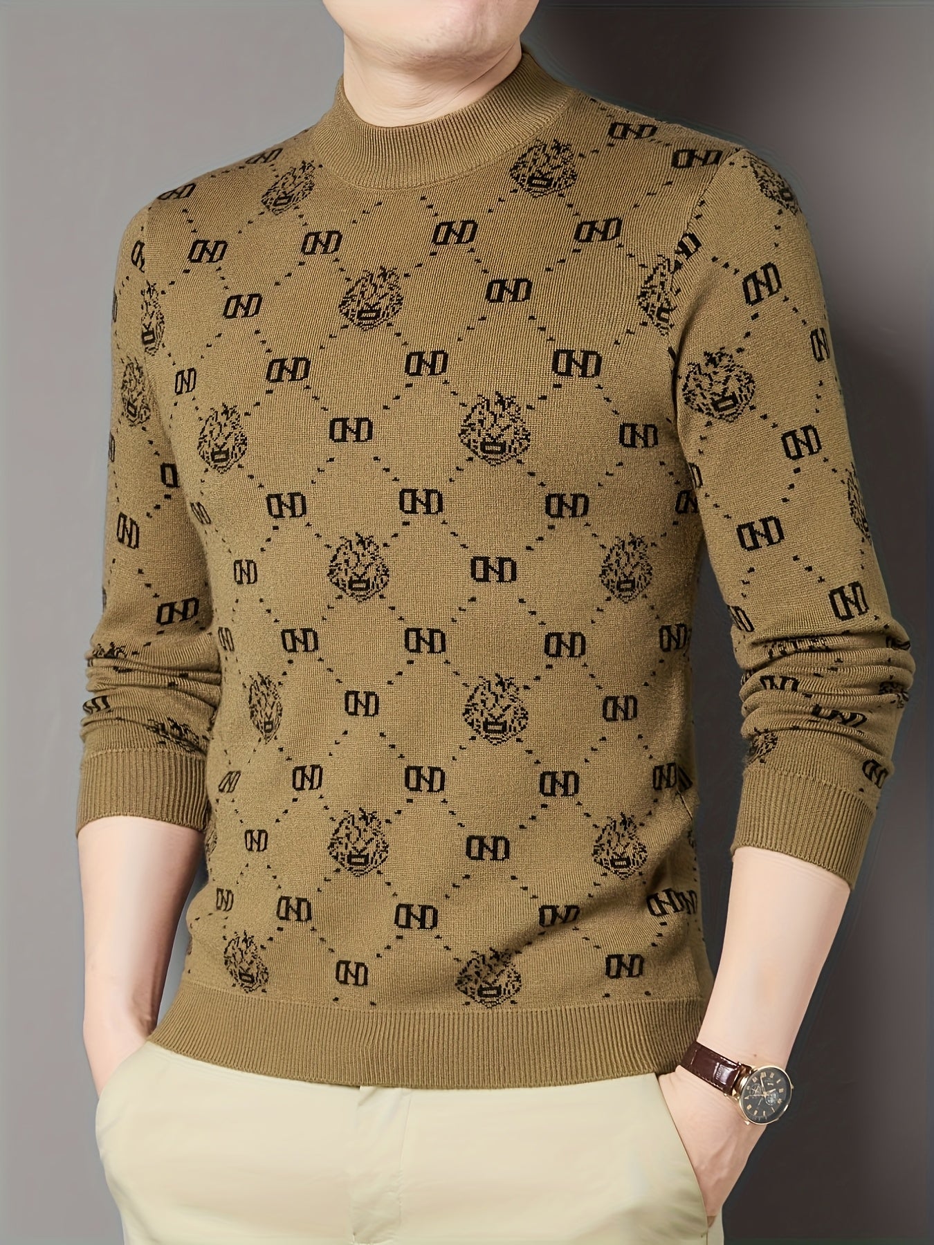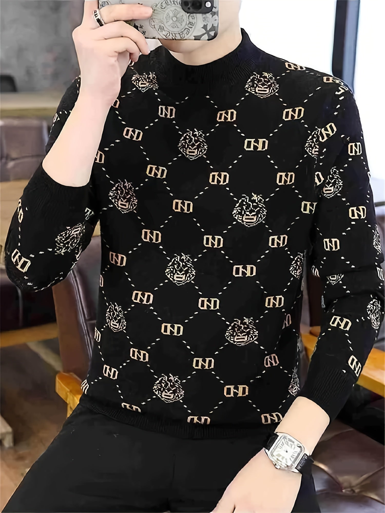 Աշնանային և ձմեռային նոր տղամարդու երկարաթև տրիկոտաժե վերնաշապիկ՝ կլոր օձիքով սվիտերի վրա դեկորատիվ նախշերով։ Այն առօրյա և ոճային հագուստ է, որը հիանալի համադրվում է տարբեր հագուստների հետ, կատարյալ է աշնանը ամենօրյա կրելու համար։