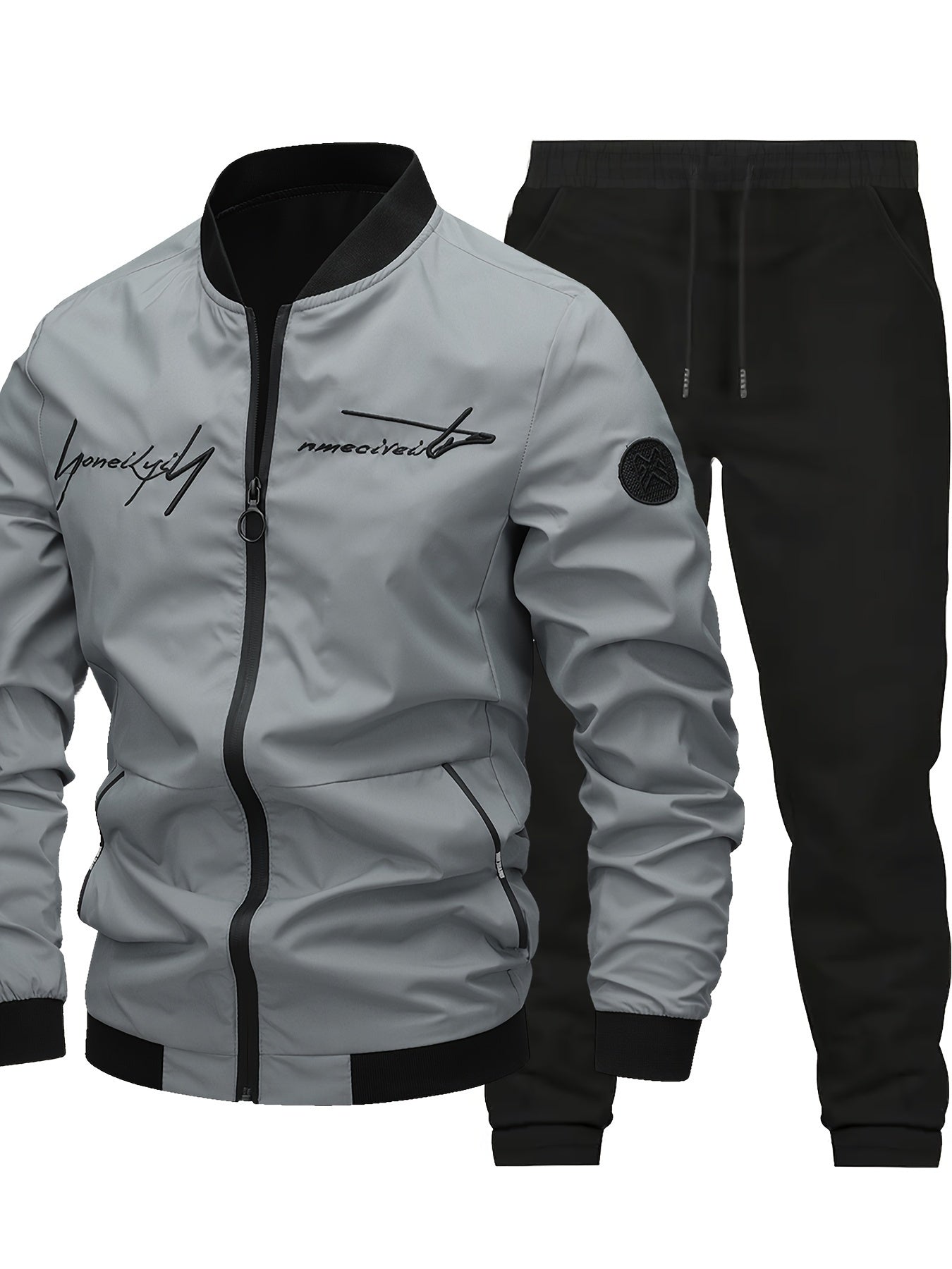 New Men's Two-piece Suit Classic Flyer Jacket and Jogging Pants Set
