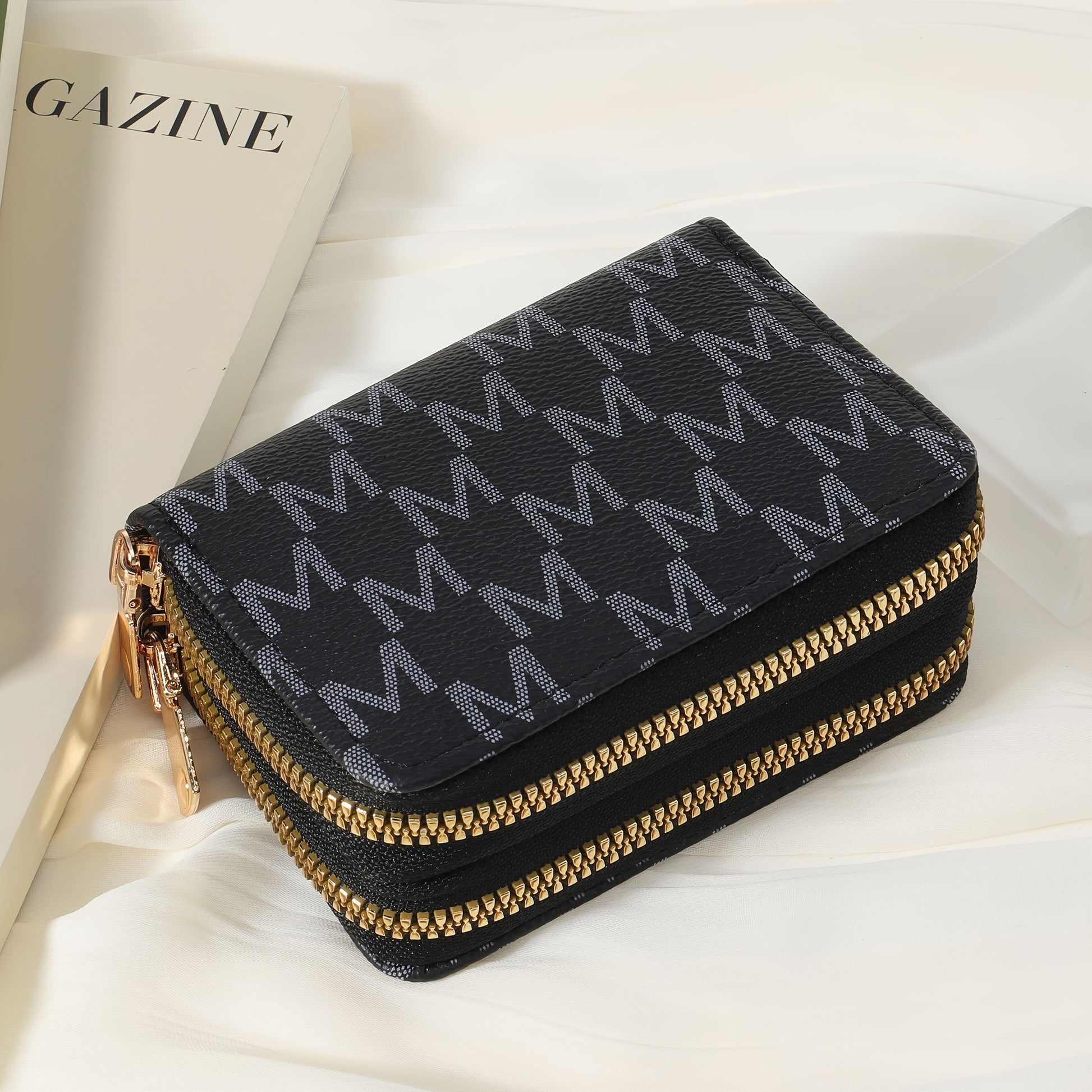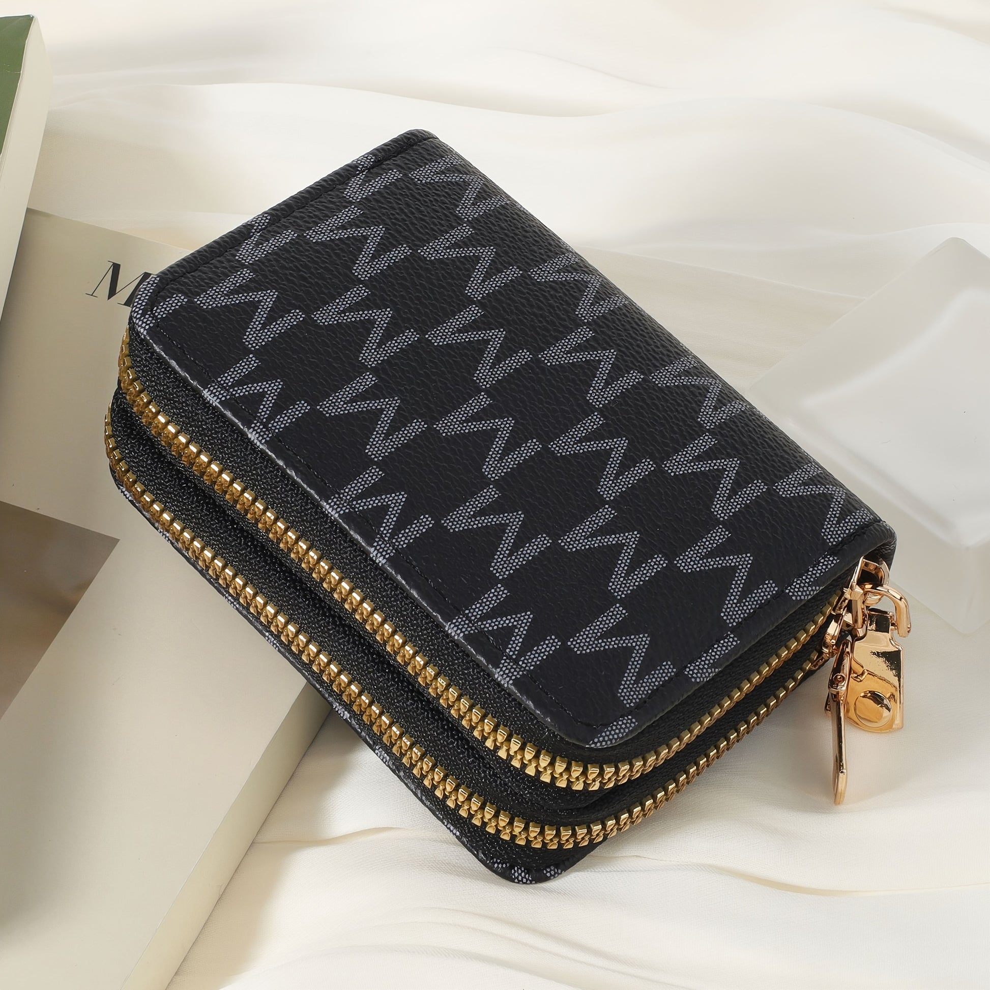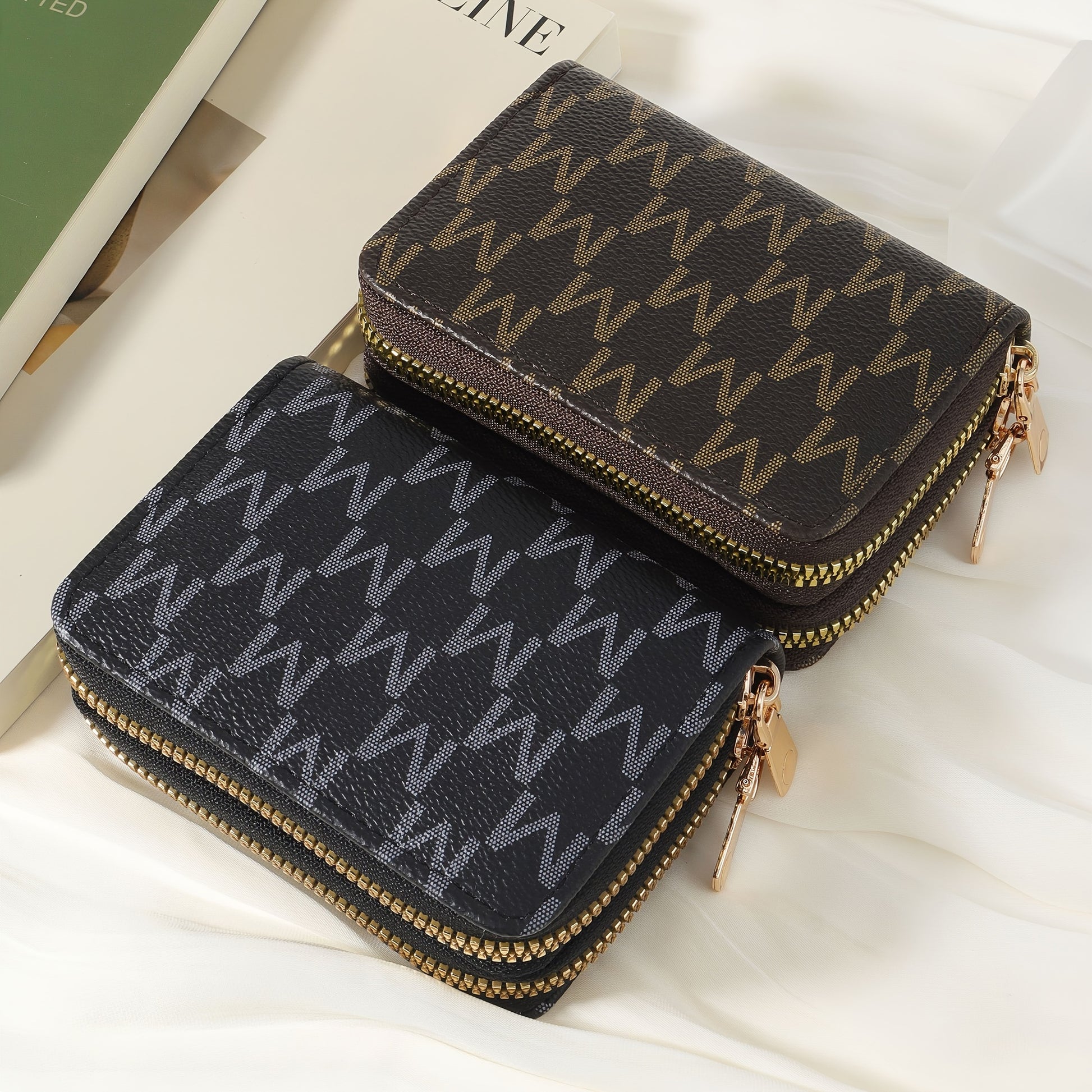 Նոր ռետրո տպագրությամբ կանացի մինիմալիստական կարճ դրամապանակ՝ շուրջը կրկնակի կայծակաճարմանդներով, նորաձև մետաղադրամների դրամապանակ, կրեդիտ քարտի պահեստավորման պայուսակ, պարզ և պատահական բազմաքարտ պահարան