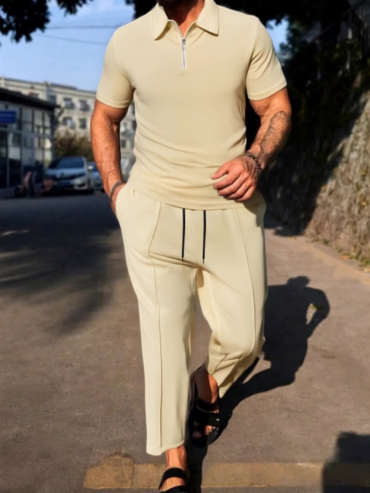 Գարնանային նորաձև, առօրյա, կայծակաճարմանդով, տղամարդու, առօրյա, սպորտային, երկար տաբատ, կարճ թևքերով, երկու կտորից բաղկացած հավաքածու