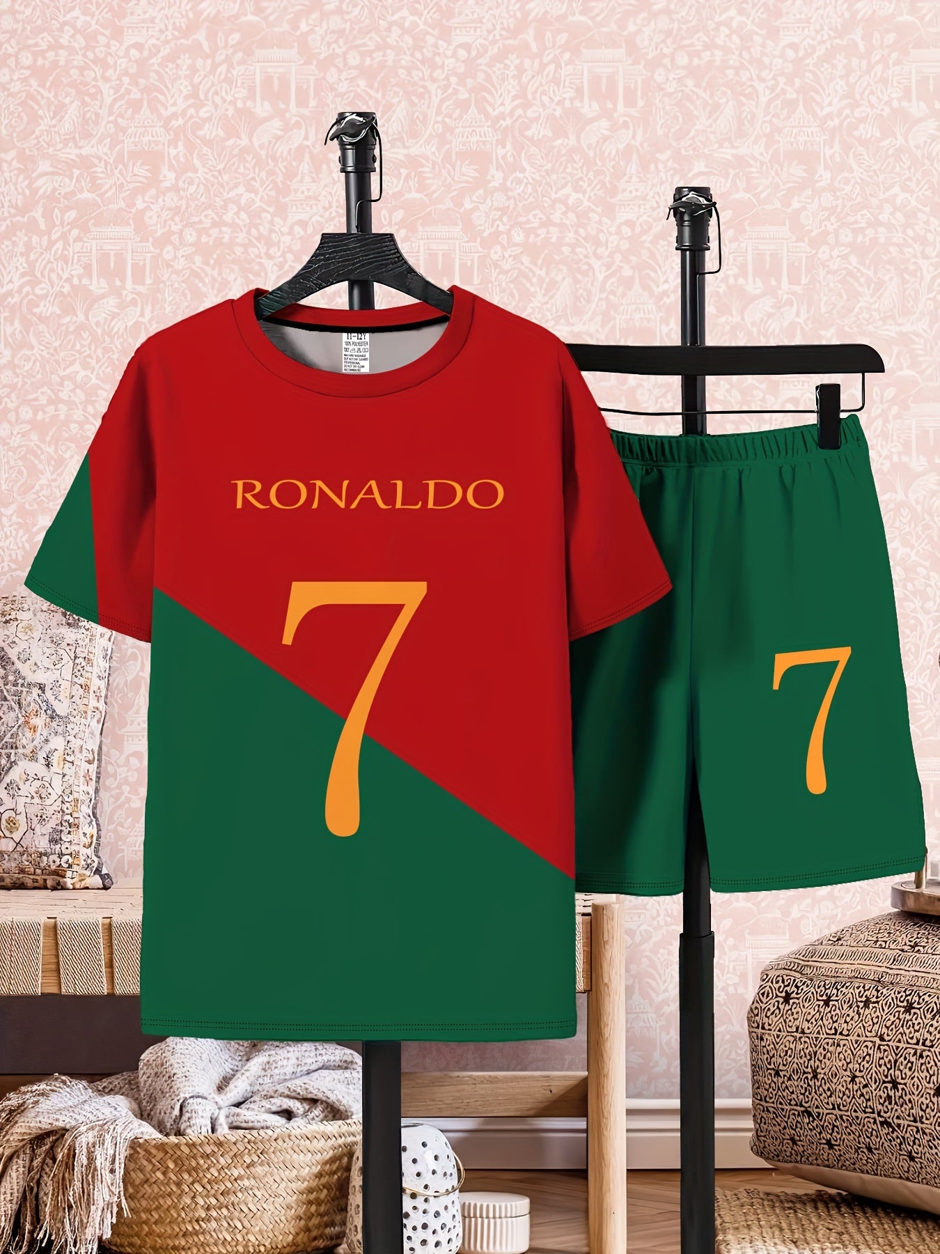 Նորաձև ֆուտբոլային 7 համարի կերպարի 3D տպագրությամբ տպագիր վերնաշապիկի և շորտերի հավաքածու աղջիկների և տղաների համար, մանկական կարճ թևքերով հանդերձանք, իդեալական է բացօթյա օգտագործման համար