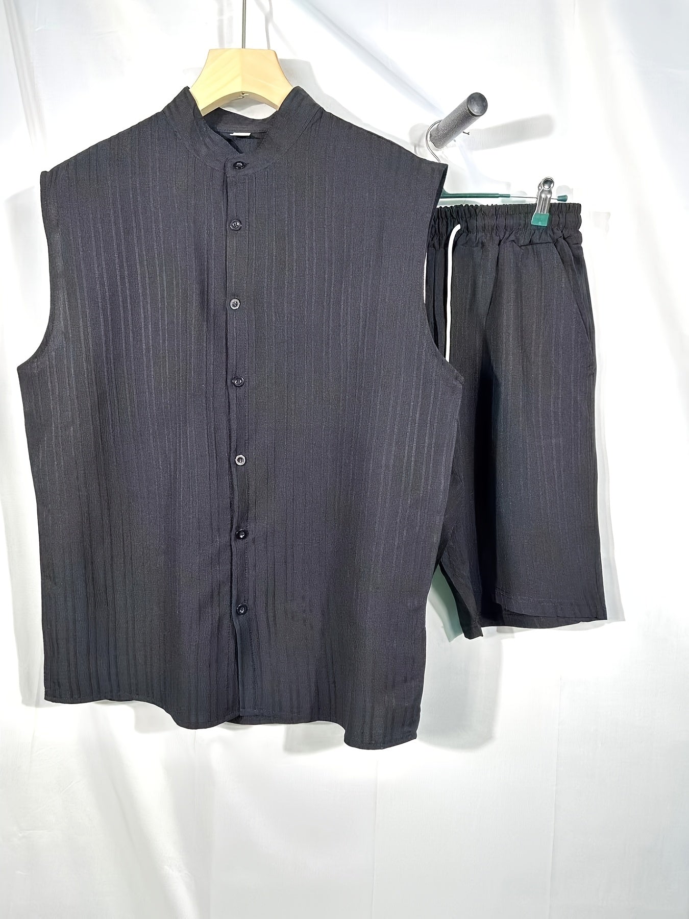 Նոր ամառային տղամարդու վերնաշապիկ՝ առօրյա, անթև, Henley օձիքով, լողափնյա շորտերով