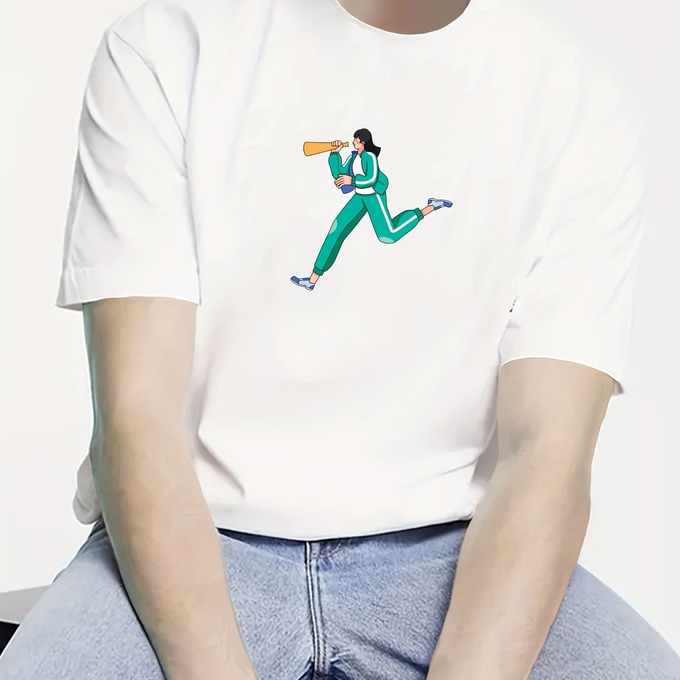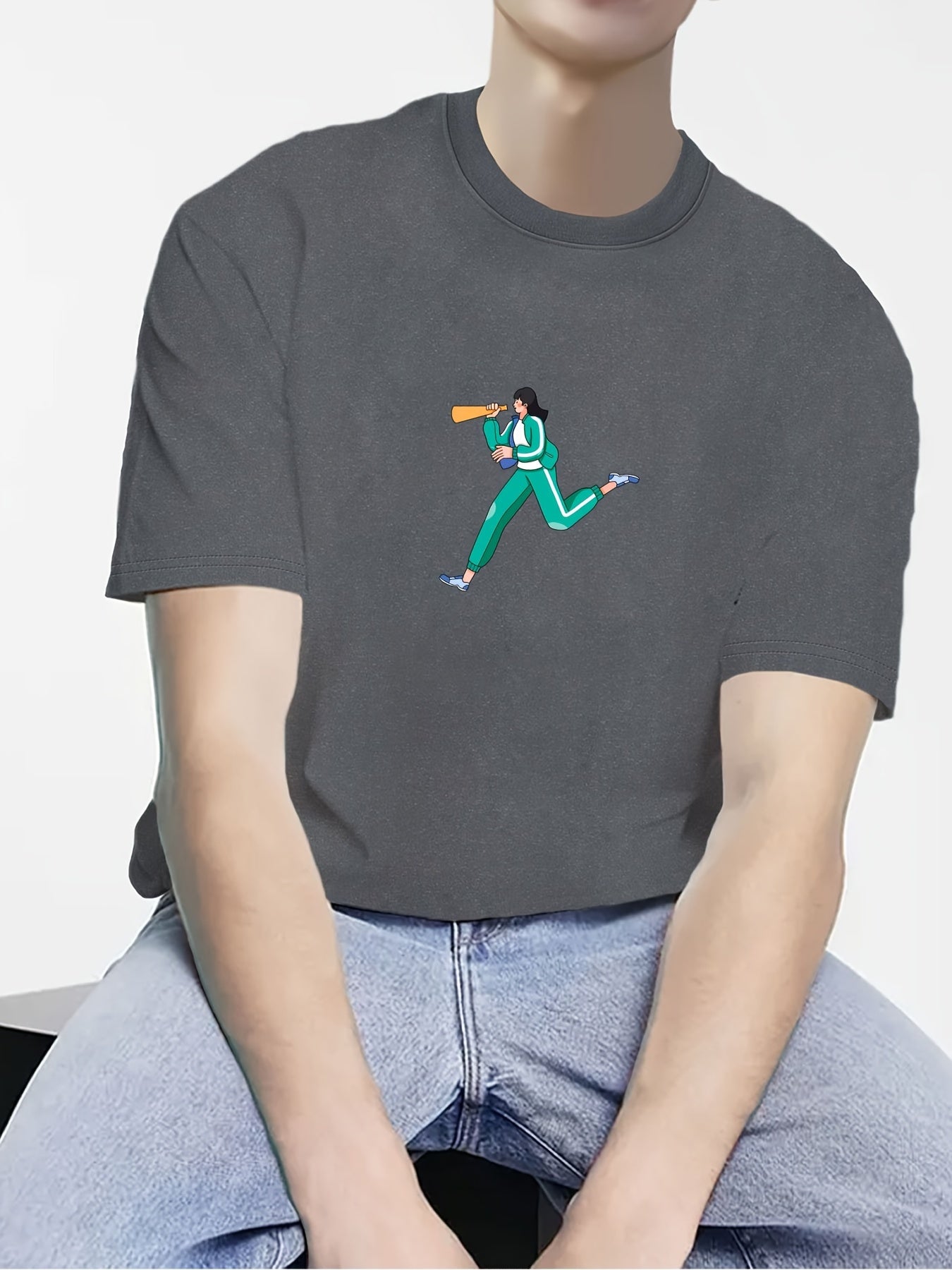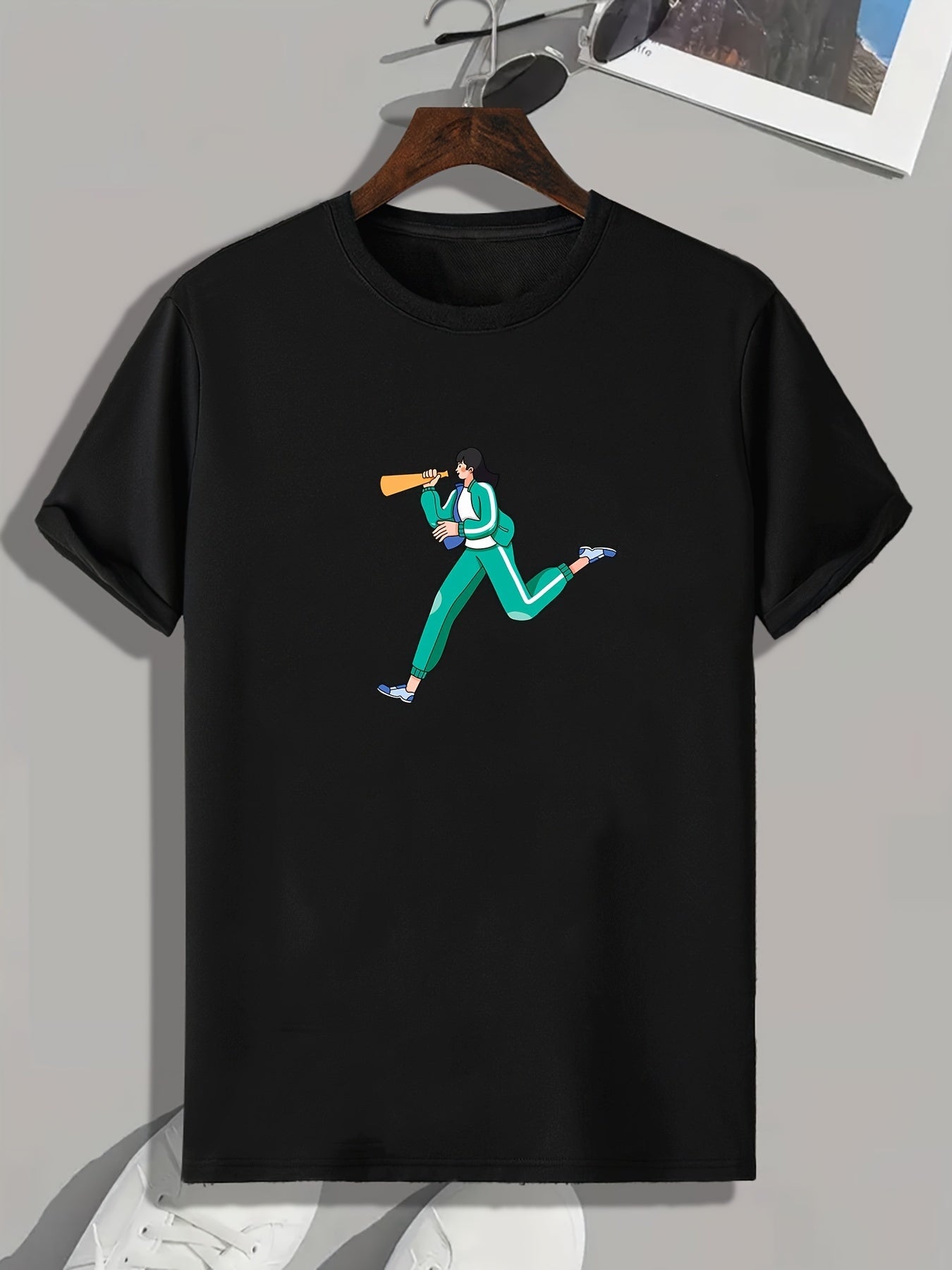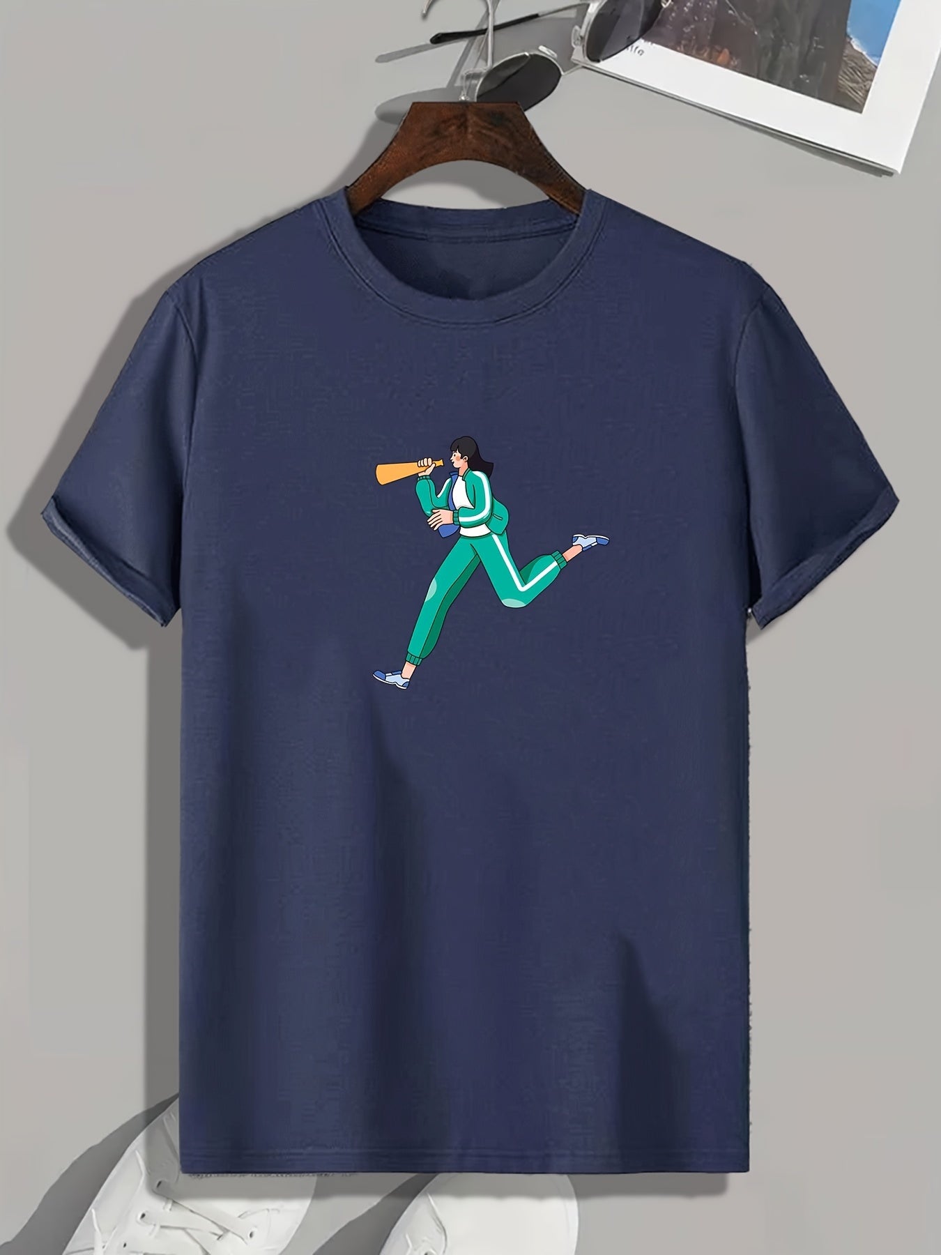 Նոր ամառային կլոր օձիքով կարճ մանժետով զգեստ տղամարդկանց հագուստի համար՝ անվճար տպագրությամբ