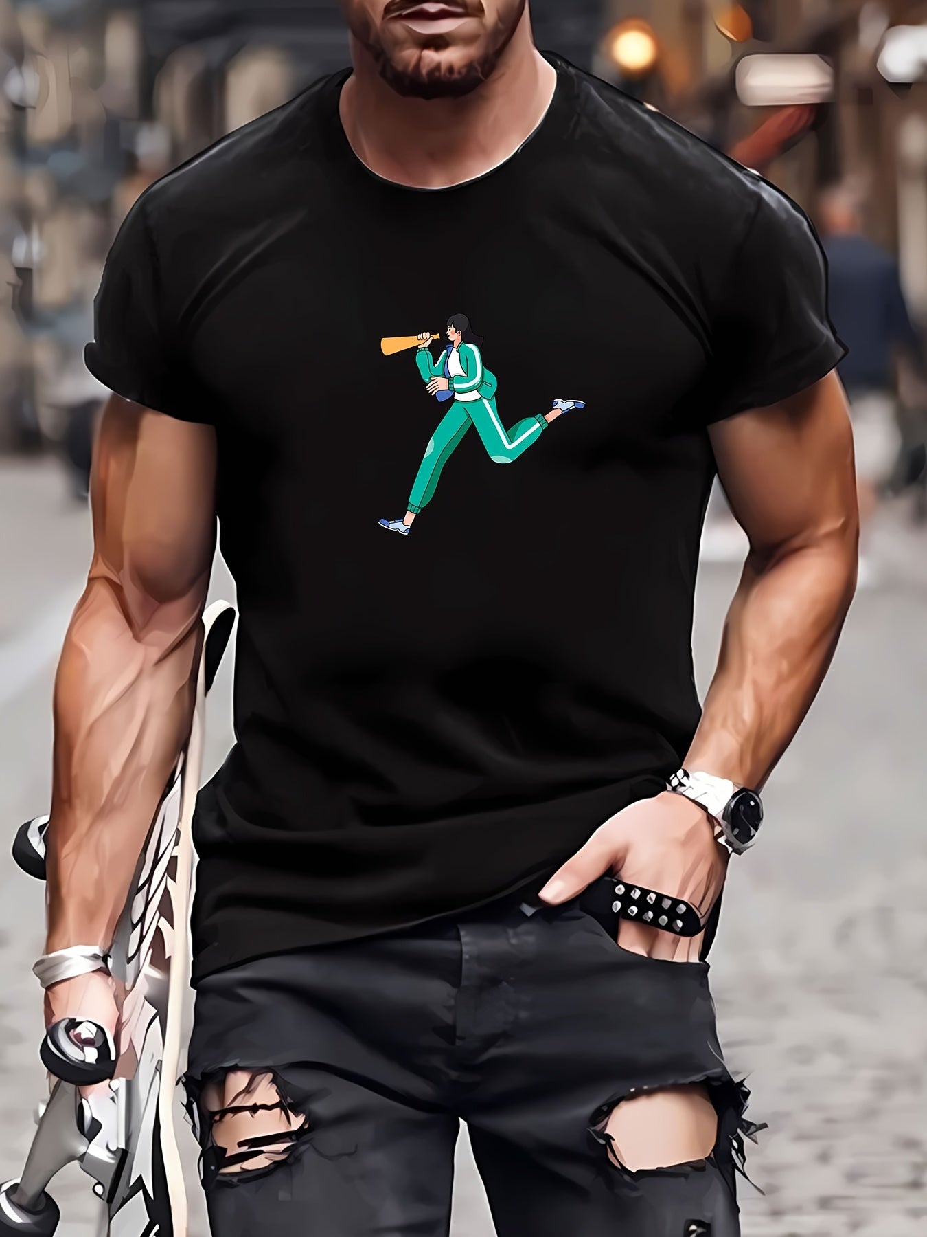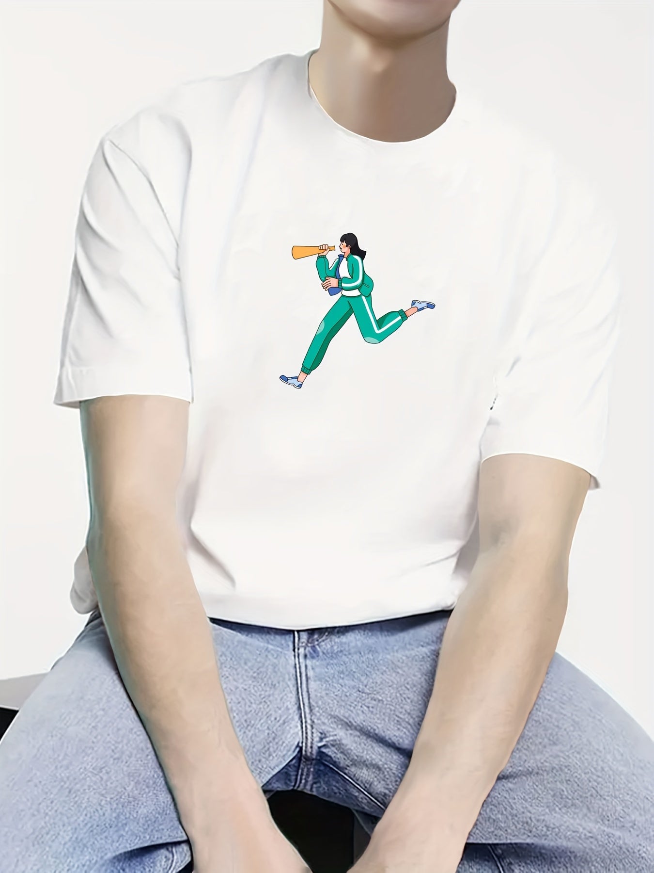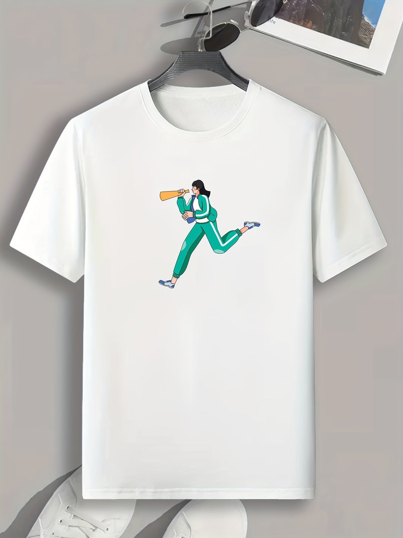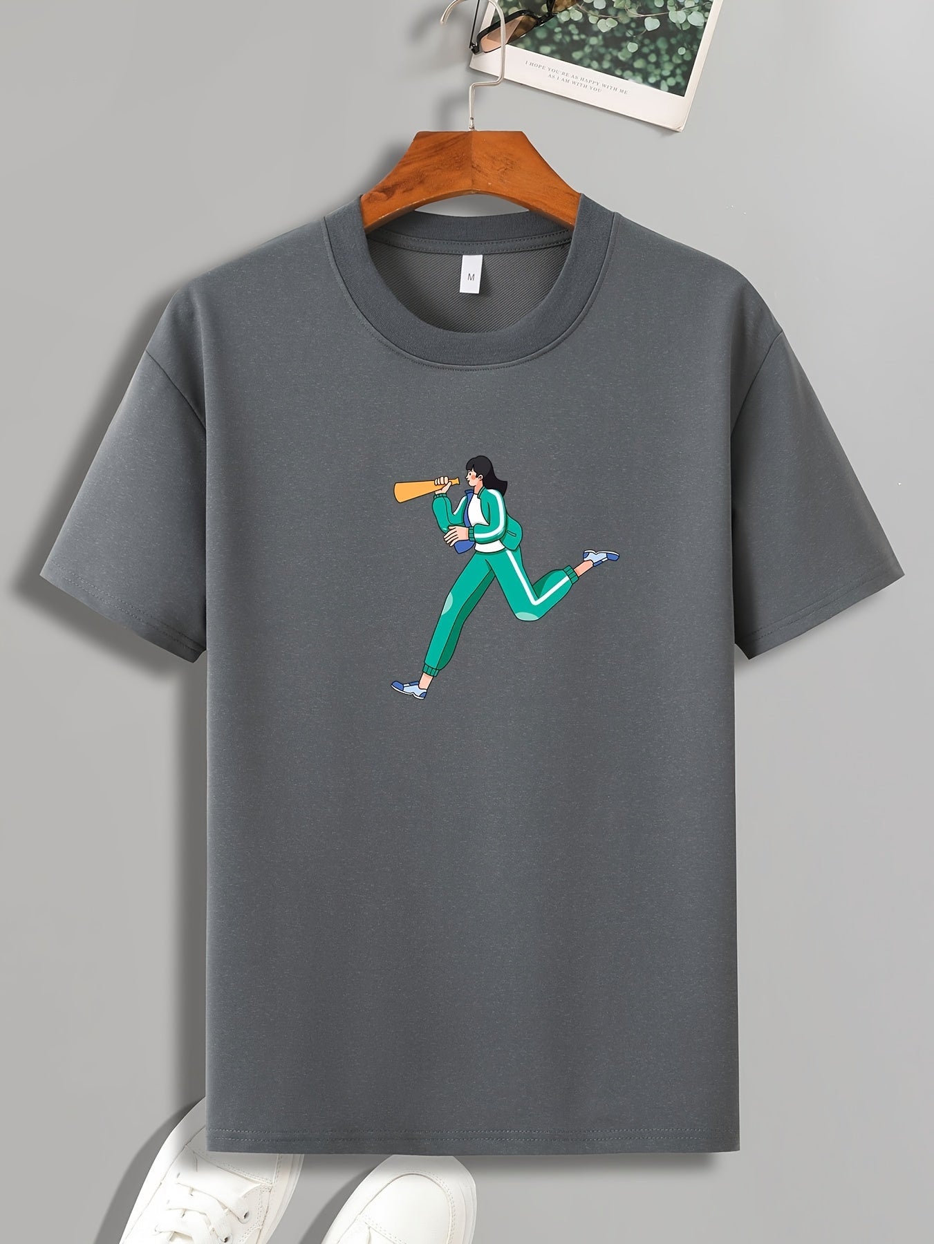 Նոր ամառային կլոր օձիքով կարճ մանժետով զգեստ տղամարդկանց հագուստի համար՝ անվճար տպագրությամբ