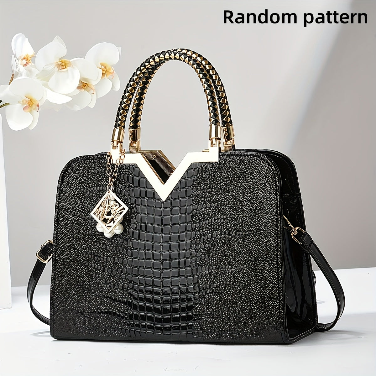 Նոր կանացի կրոսբոդի պայուսակ, բարձրակարգ լաքապատ կաշվից քարերով նախշերով կրոսբոդի պայուսակ
