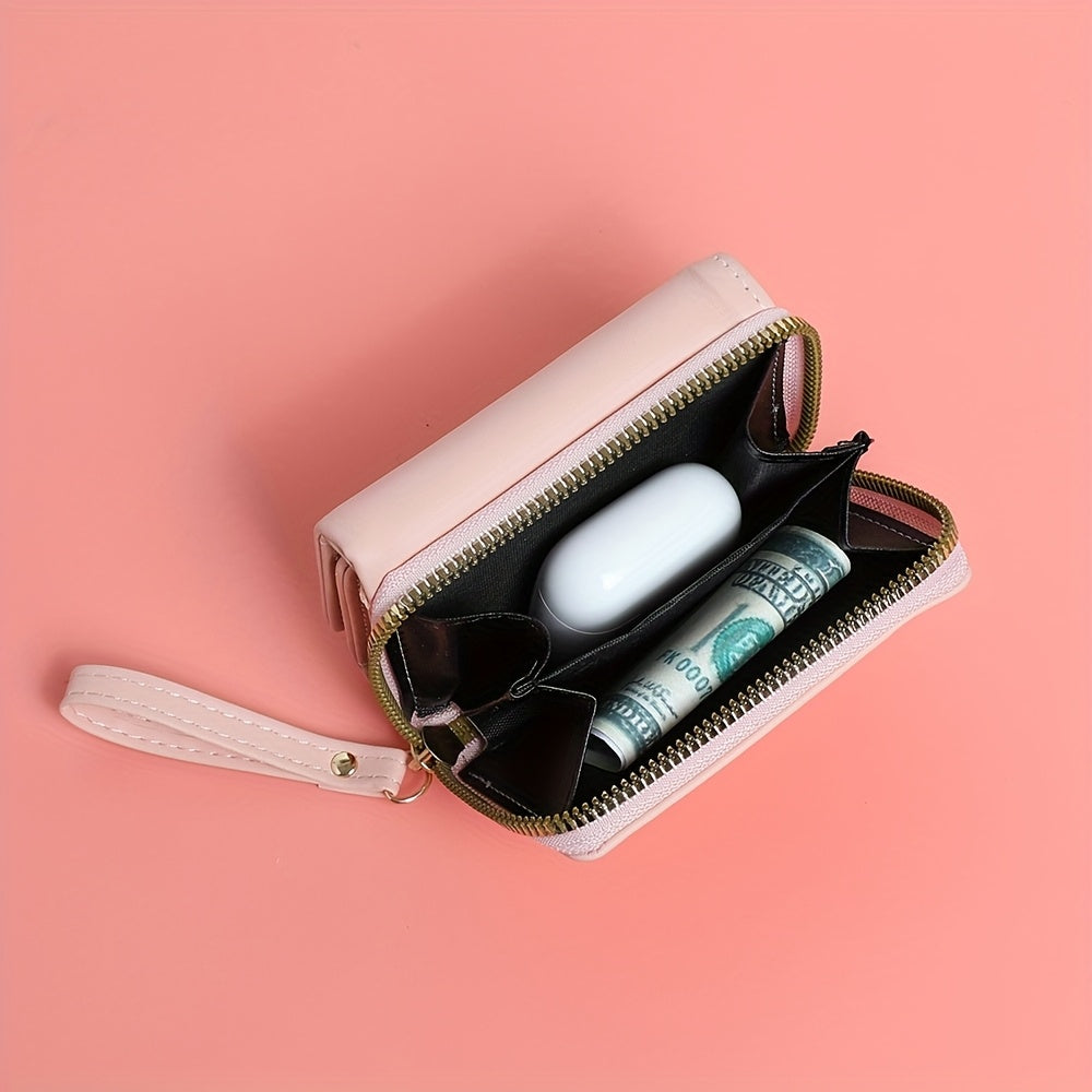New Women'S Short Wallet, Cute Korean-Style Heart-Shaped, Large Capacity with Multiple Card Slots, Trendy Tri-Fold Design.