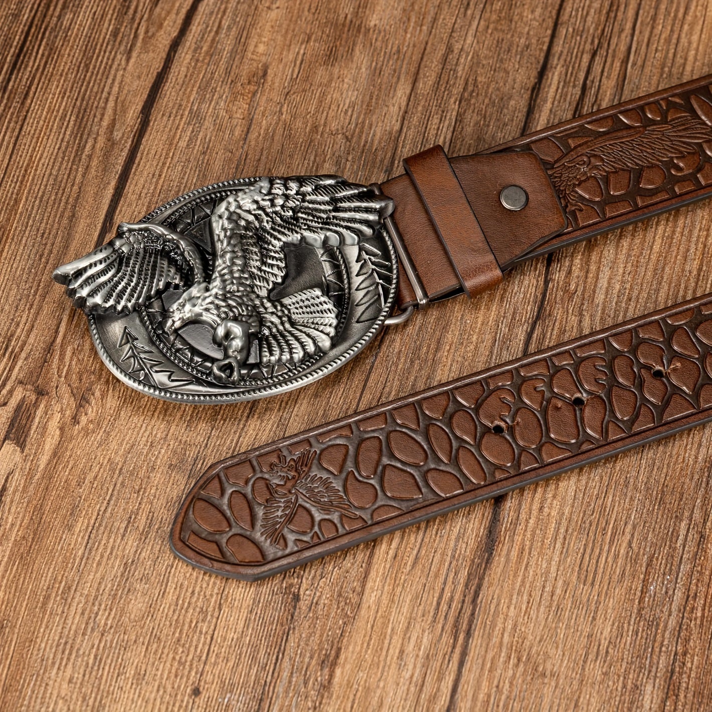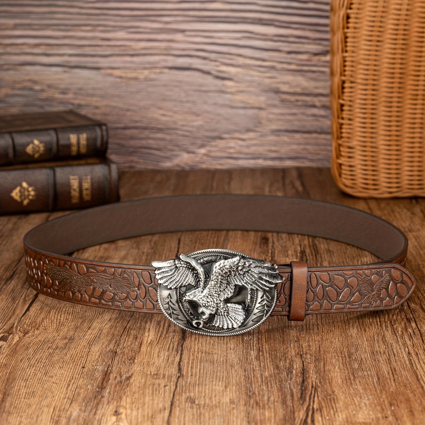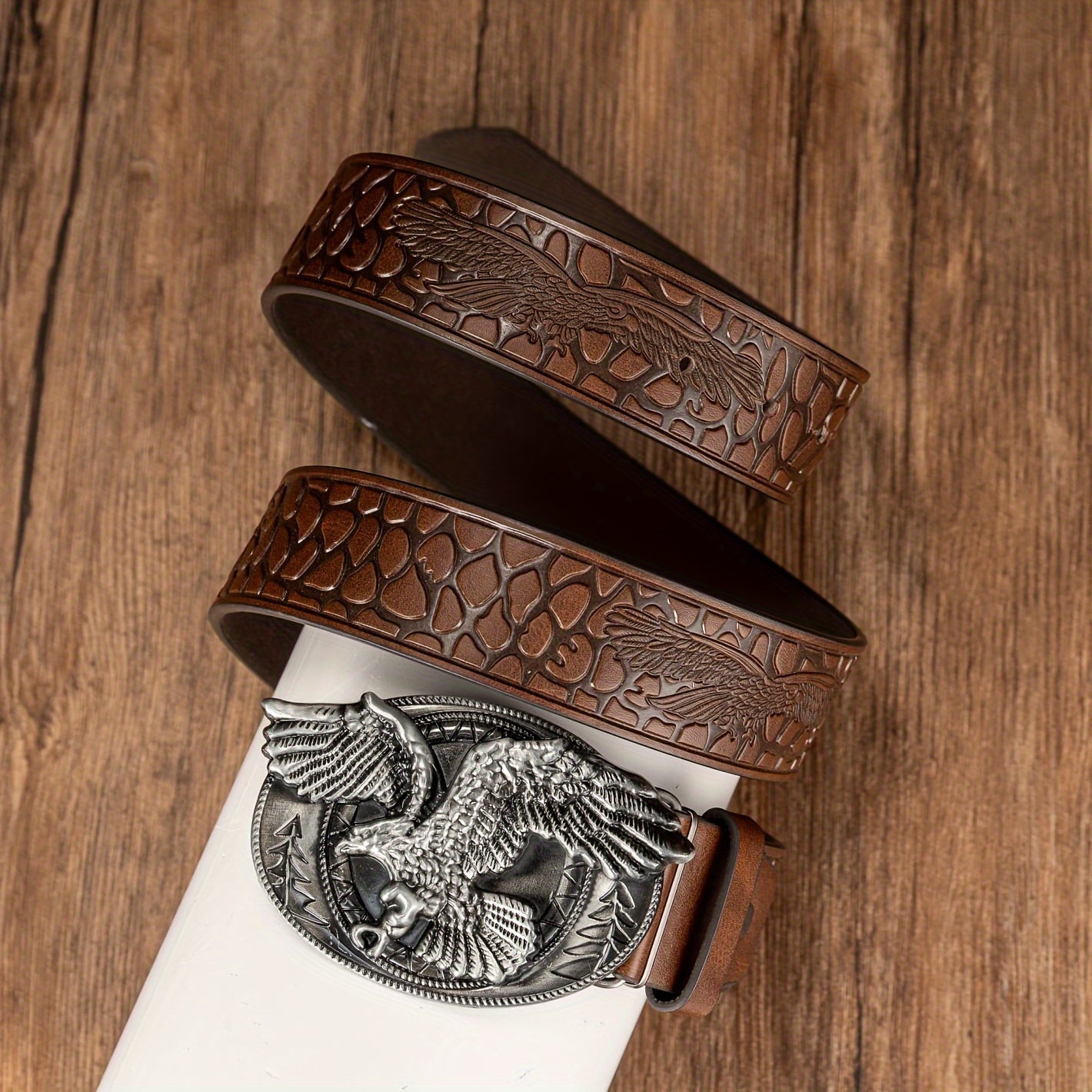 Oval Eagle Large Buckle Belt, Embossed PU Leather Belt, Men's Belt, Ideal choice for Gifts