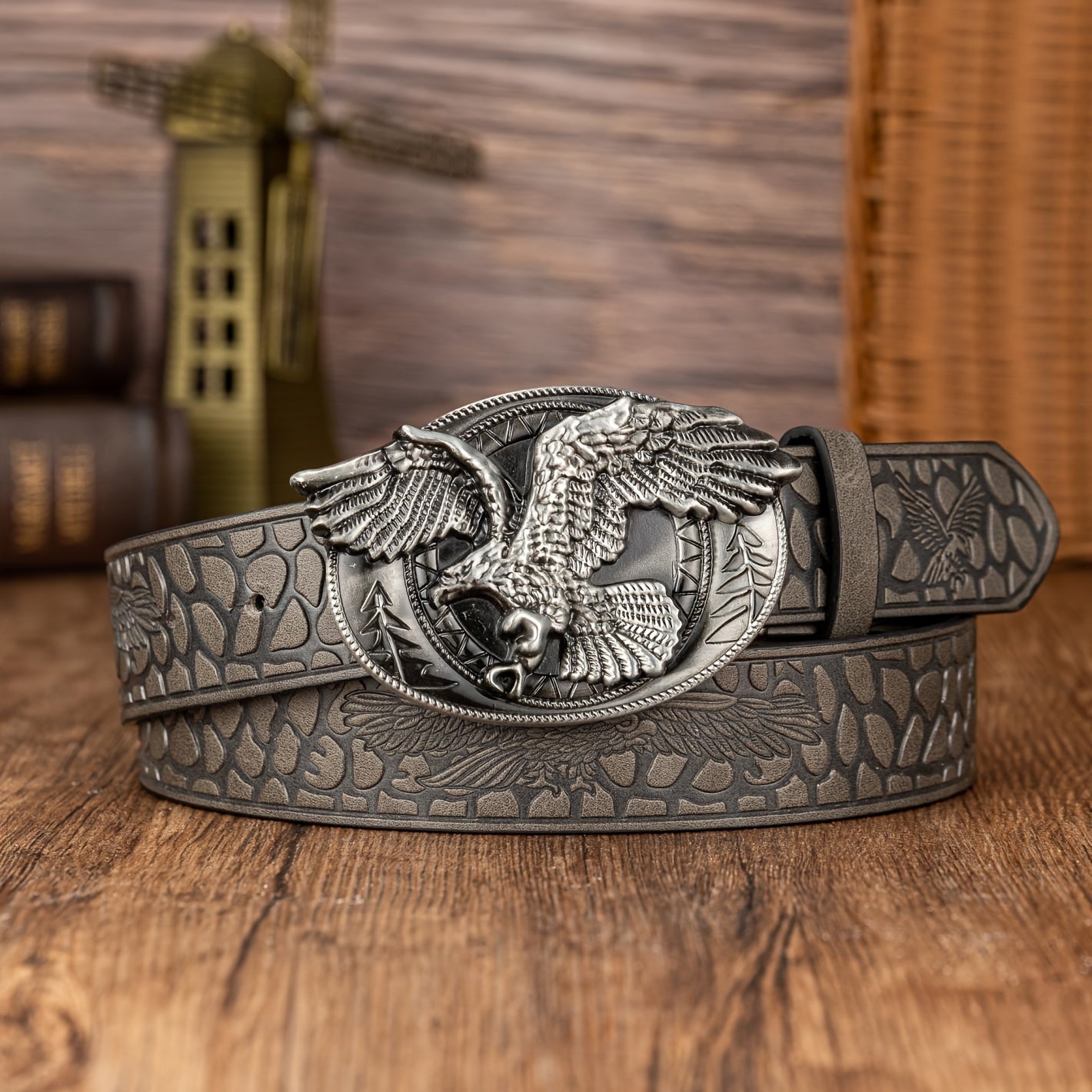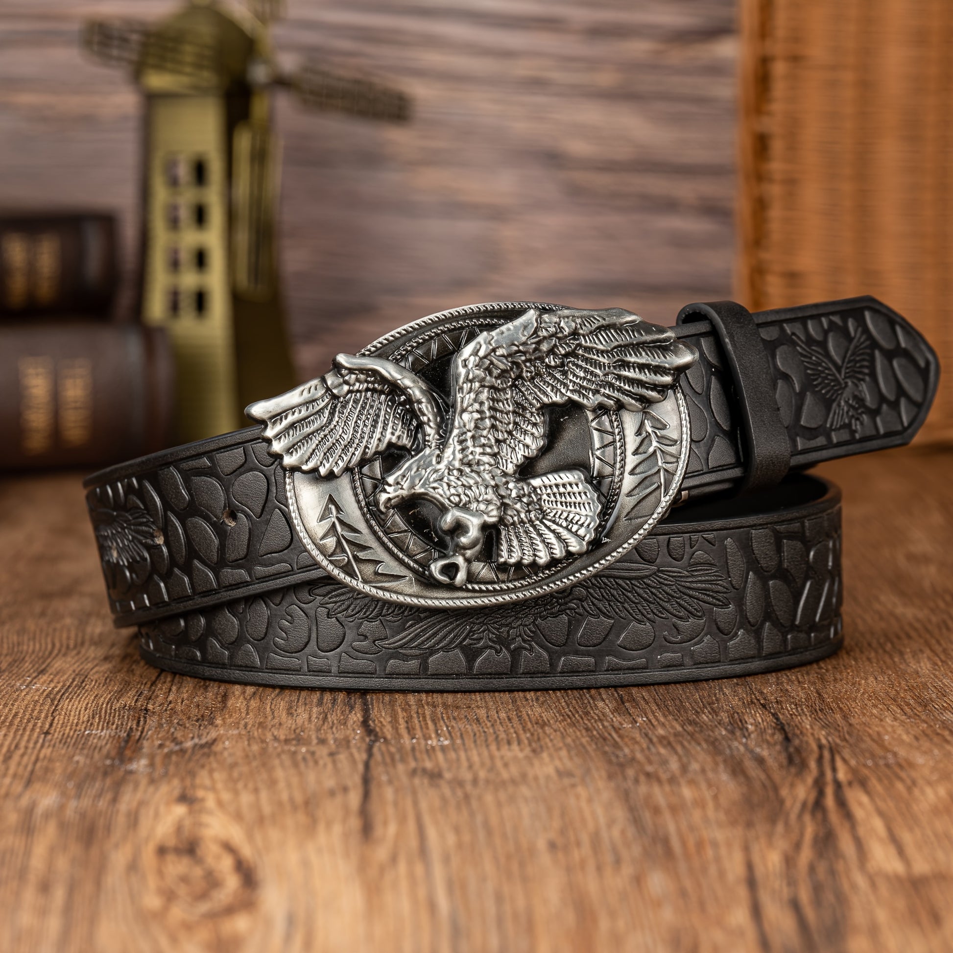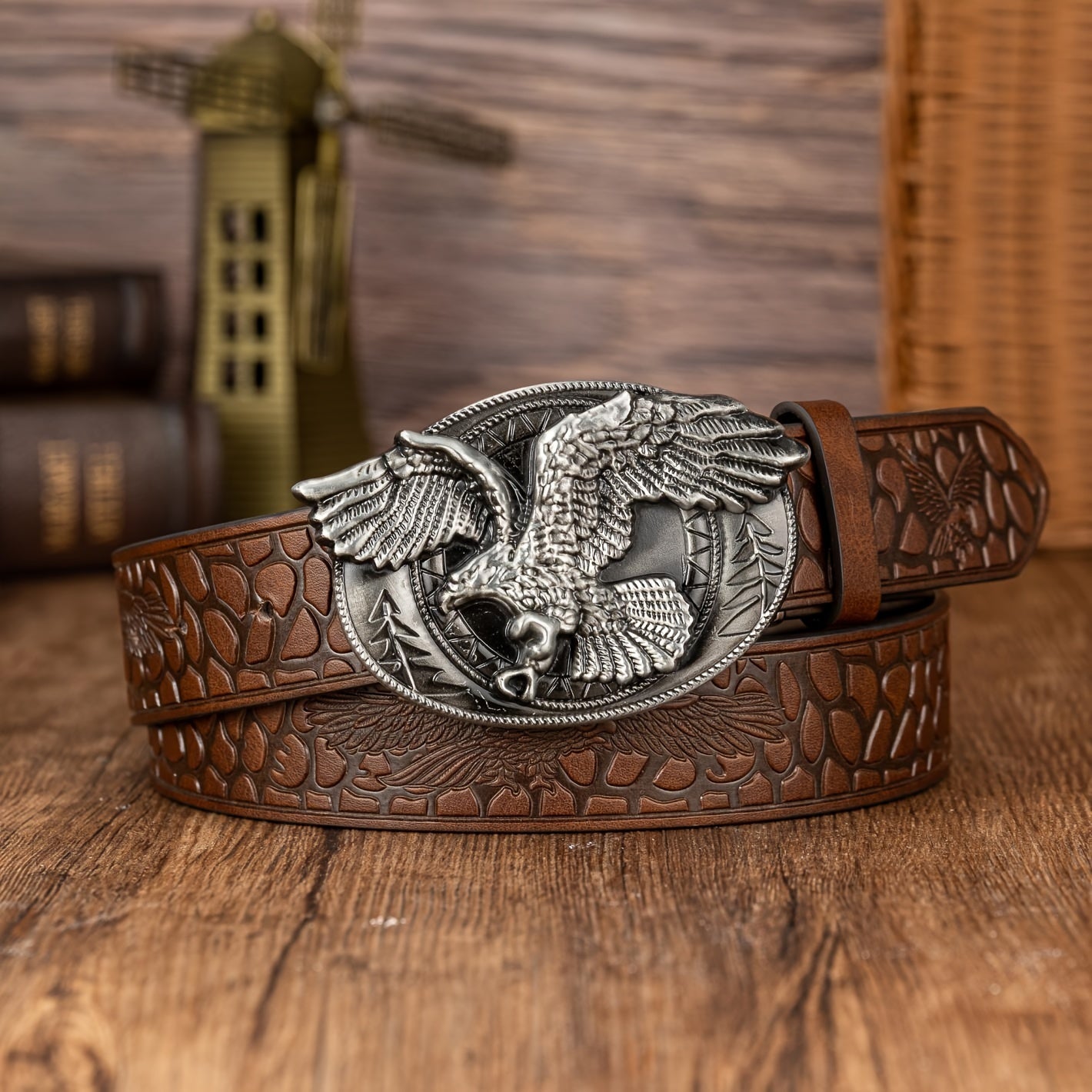 Oval Eagle Large Buckle Belt, Embossed PU Leather Belt, Men's Belt, Ideal choice for Gifts