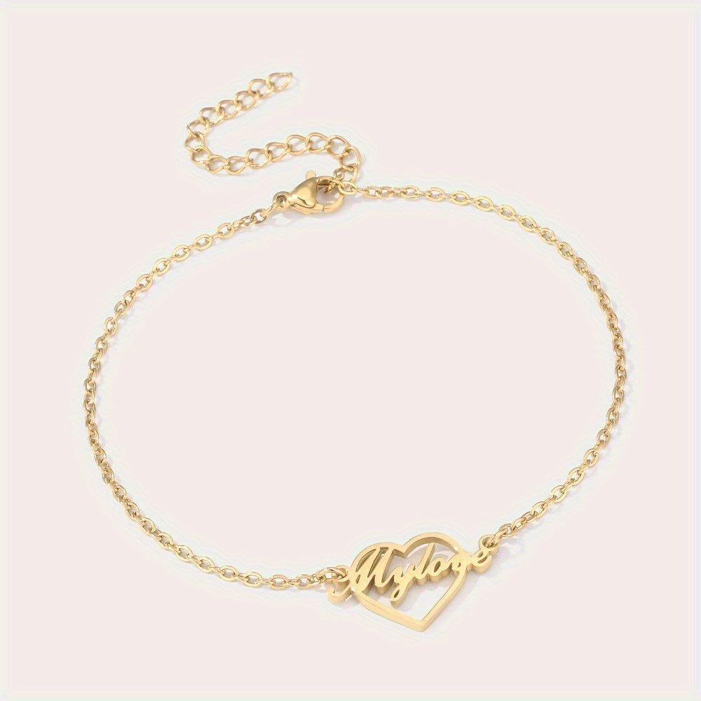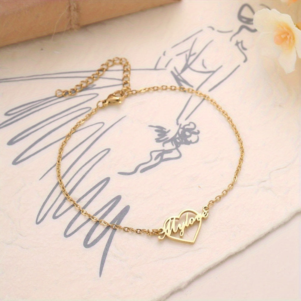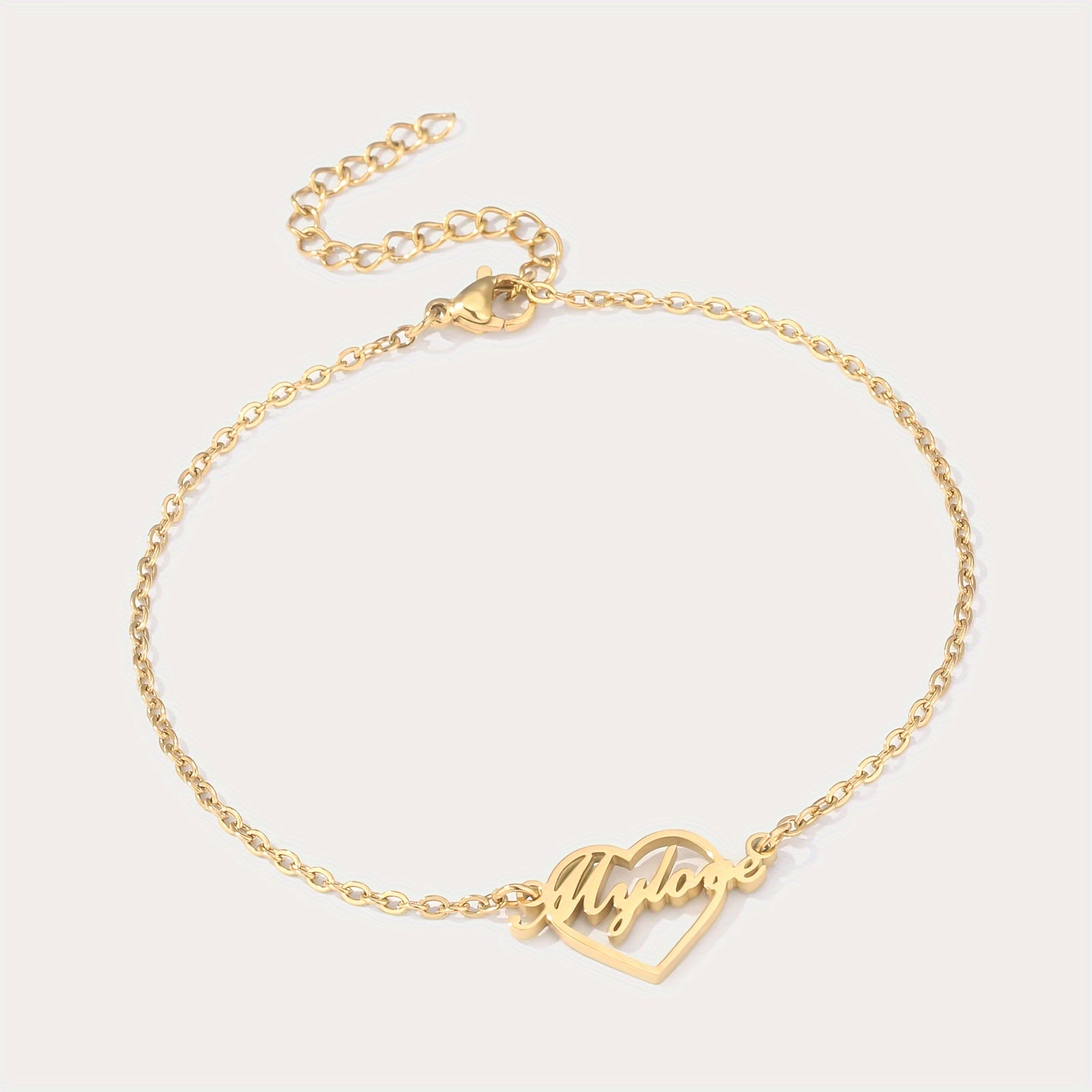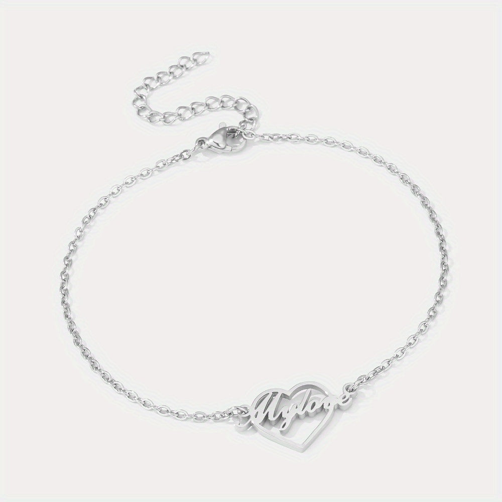 Անհատականացված չժանգոտվող պողպատից սրտաձև անվանական ապարանջան | Պատվերով փորագրված հմայքը | Նրբագեղ բոհեմյան ոճ | Իդեալական է ամենօրյա հագուստի և նվերների համար | Հարմար է Ուսուցչի օրվա, Վերադարձ դեպի դպրոց և ավարտական, Սրտի հմայքը թեւնոցների համար