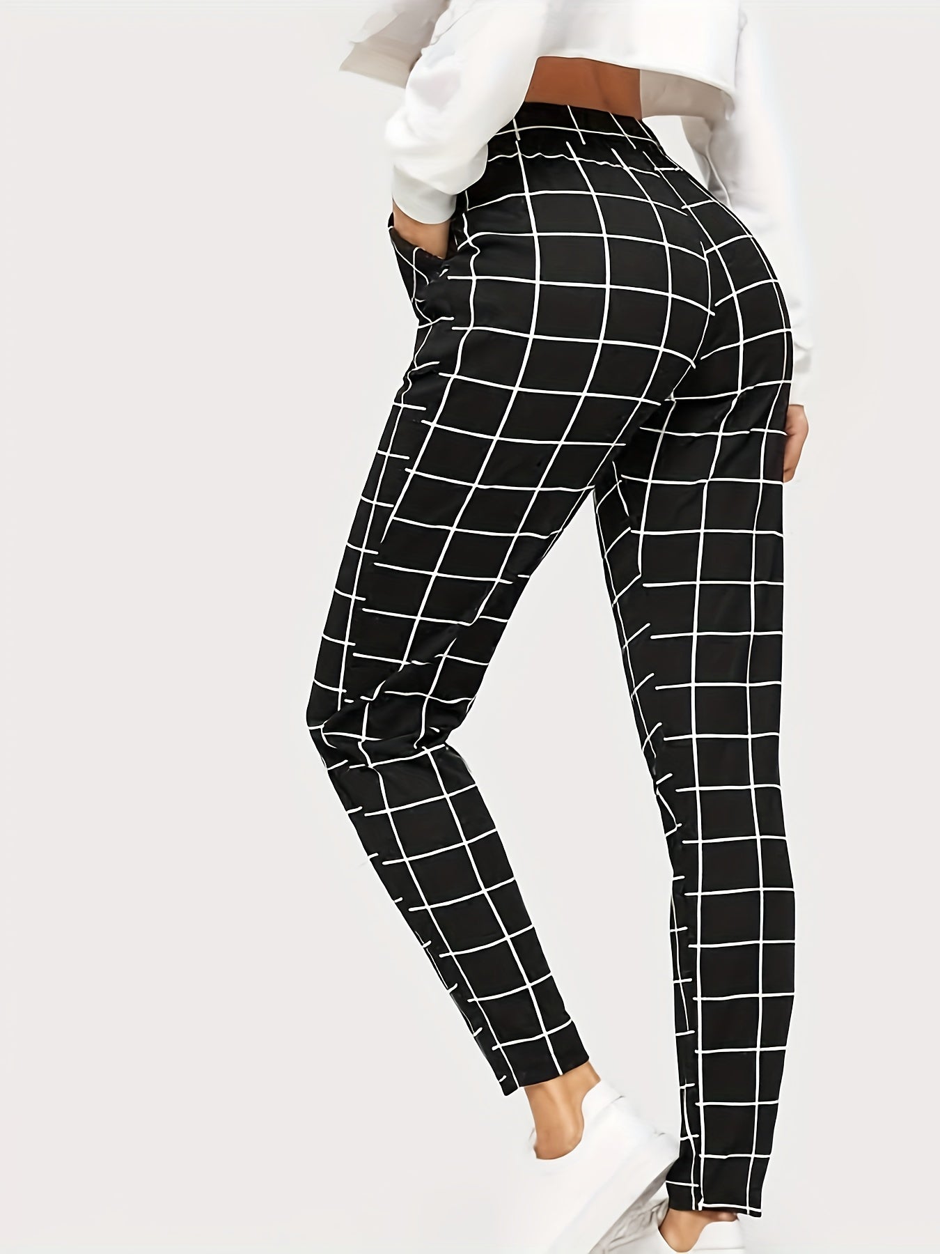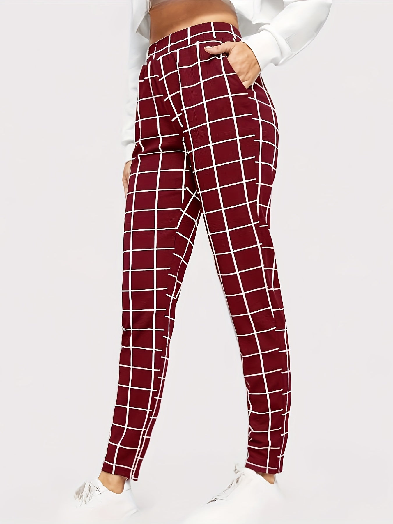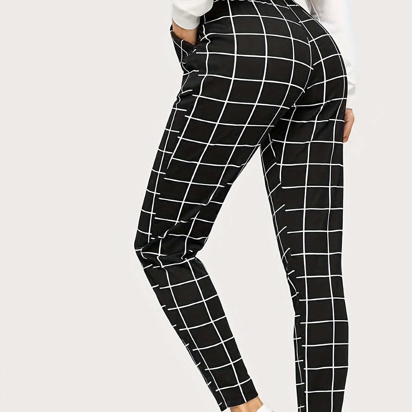 Վանդակավոր տպագրություն Բարձր գոտկատեղի շալվար Նրբագեղ ուղիղ ոտքի թեք գրպաններ Տաբատ, կանացի հագուստ