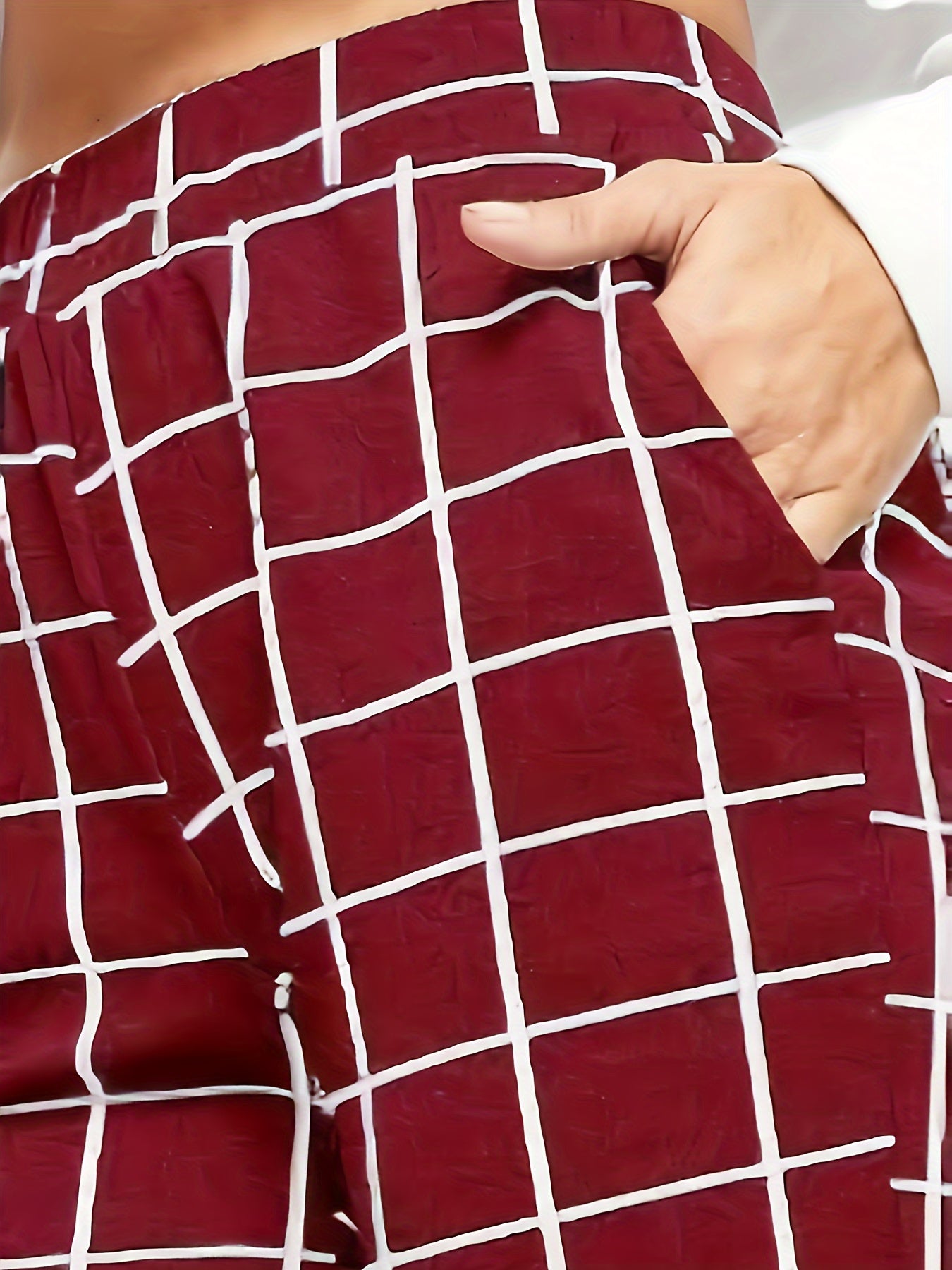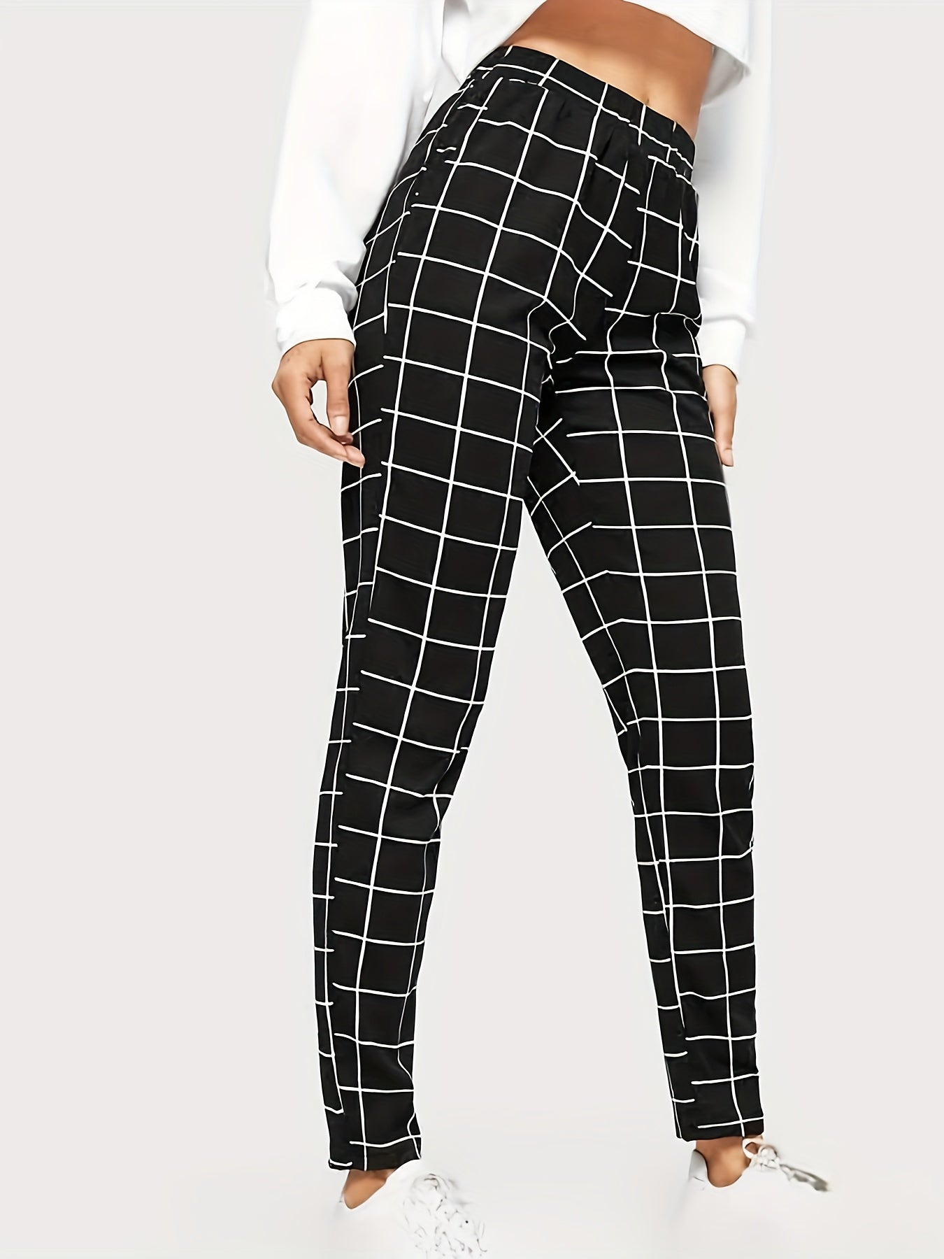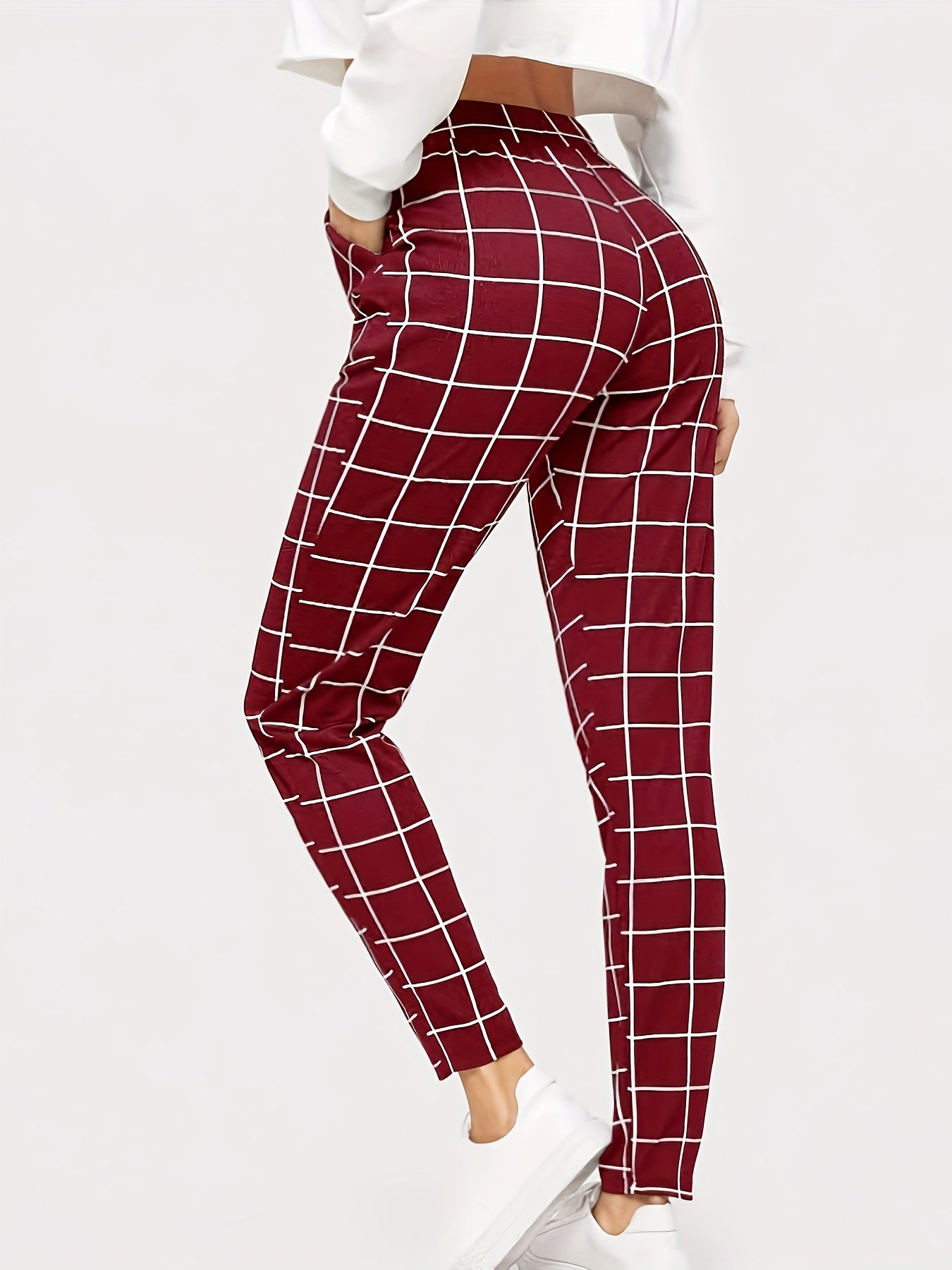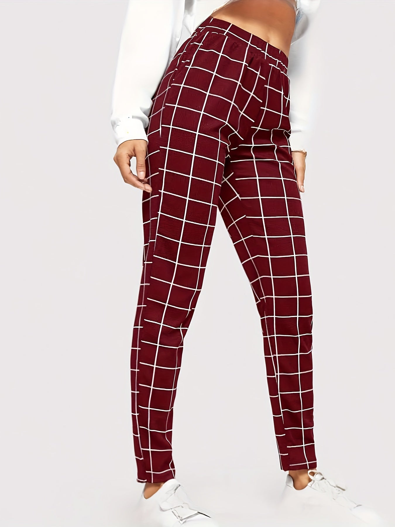 Վանդակավոր տպագրություն Բարձր գոտկատեղի շալվար Նրբագեղ ուղիղ ոտքի թեք գրպաններ Տաբատ, կանացի հագուստ