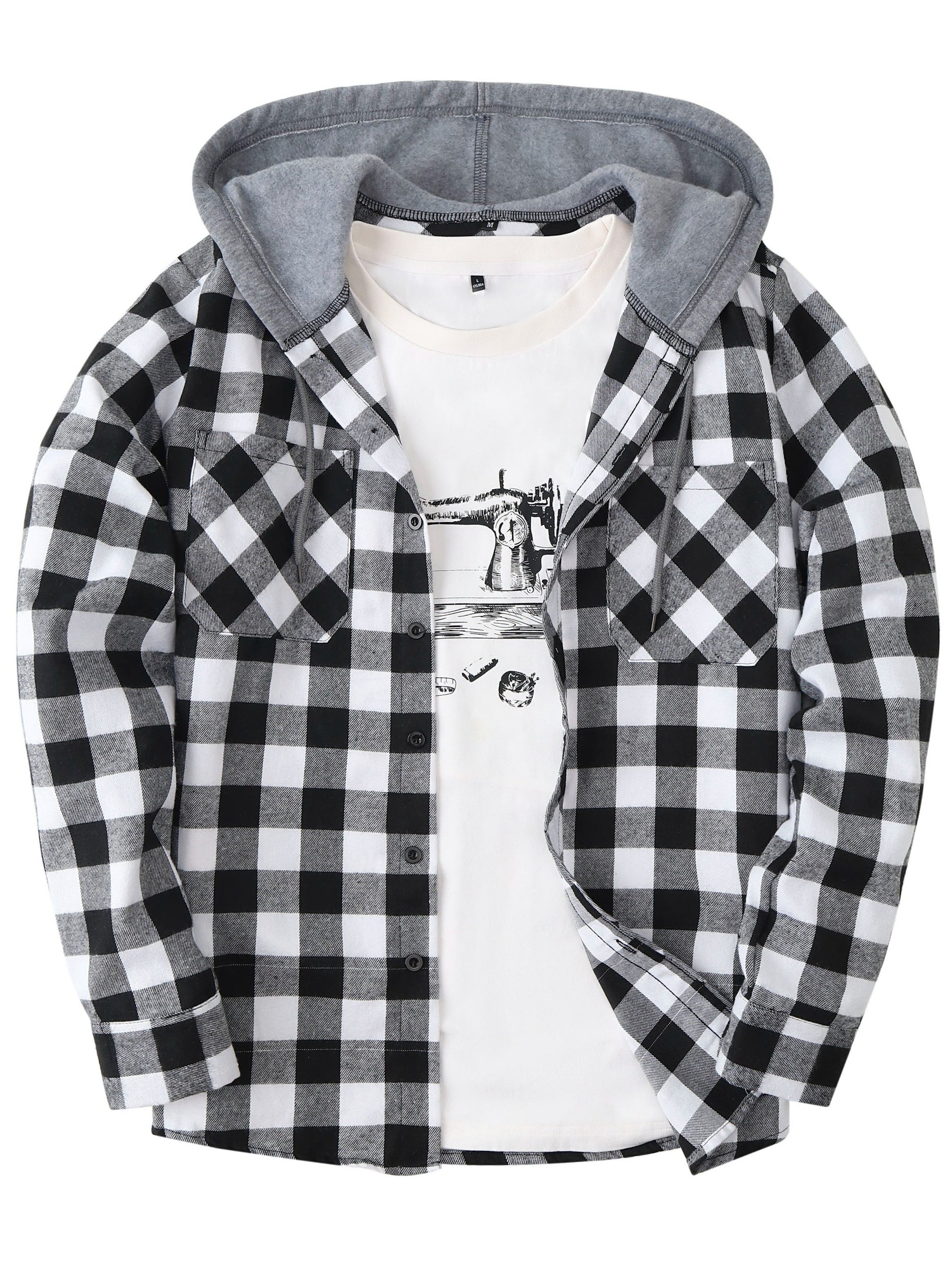 Տղամարդկանց համար նախատեսված շոտլանդական վերարկու, երկար թևքերով, պատահական, կոճակներով, գլխարկով վերնաշապիկ, բաճկոն