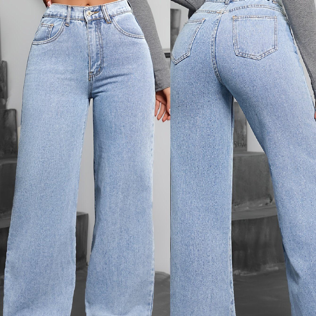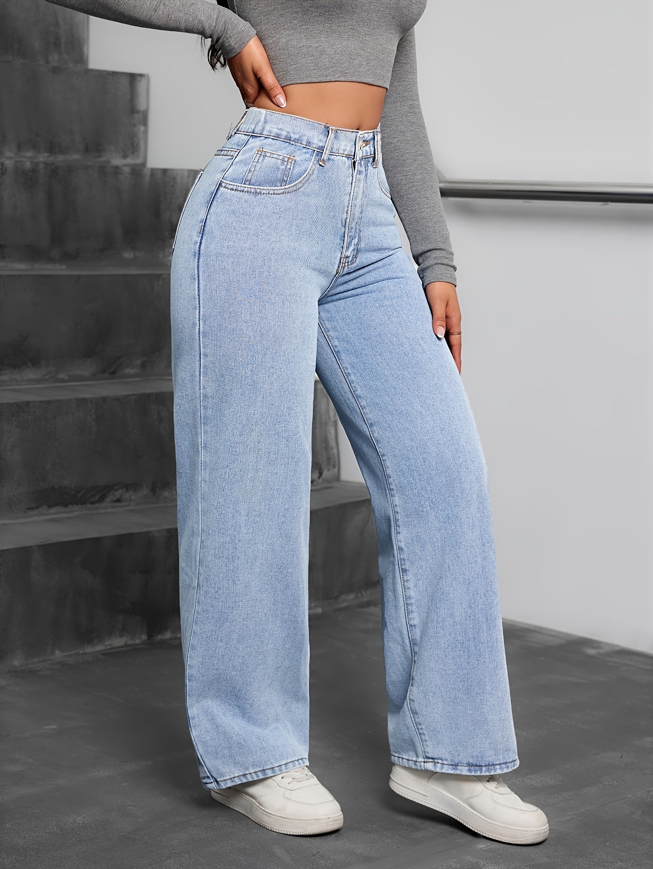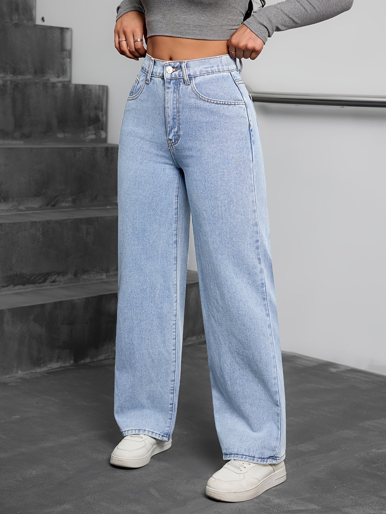 Պարզ, չամրացված լվացված կապույտ պատահական, հիմնական ոճի ջինսե տաբատ, կանացի ջինսե ջինսեր և հագուստ