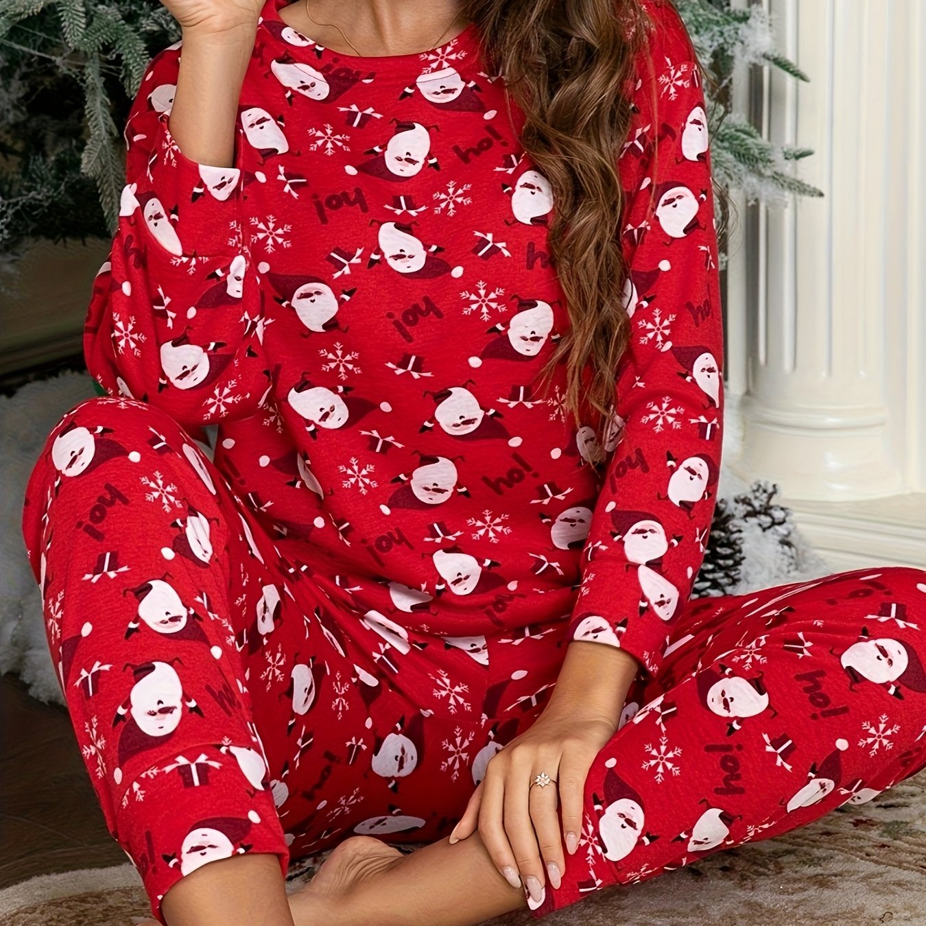 Մեծ չափսի աշուն-ձմեռ Ձմեռ պապի նախշերով պիժամայի հավաքածու, կանացի թվիդ ոճի տոնական երեկույթի համար նախատեսված հանգստի հագուստ