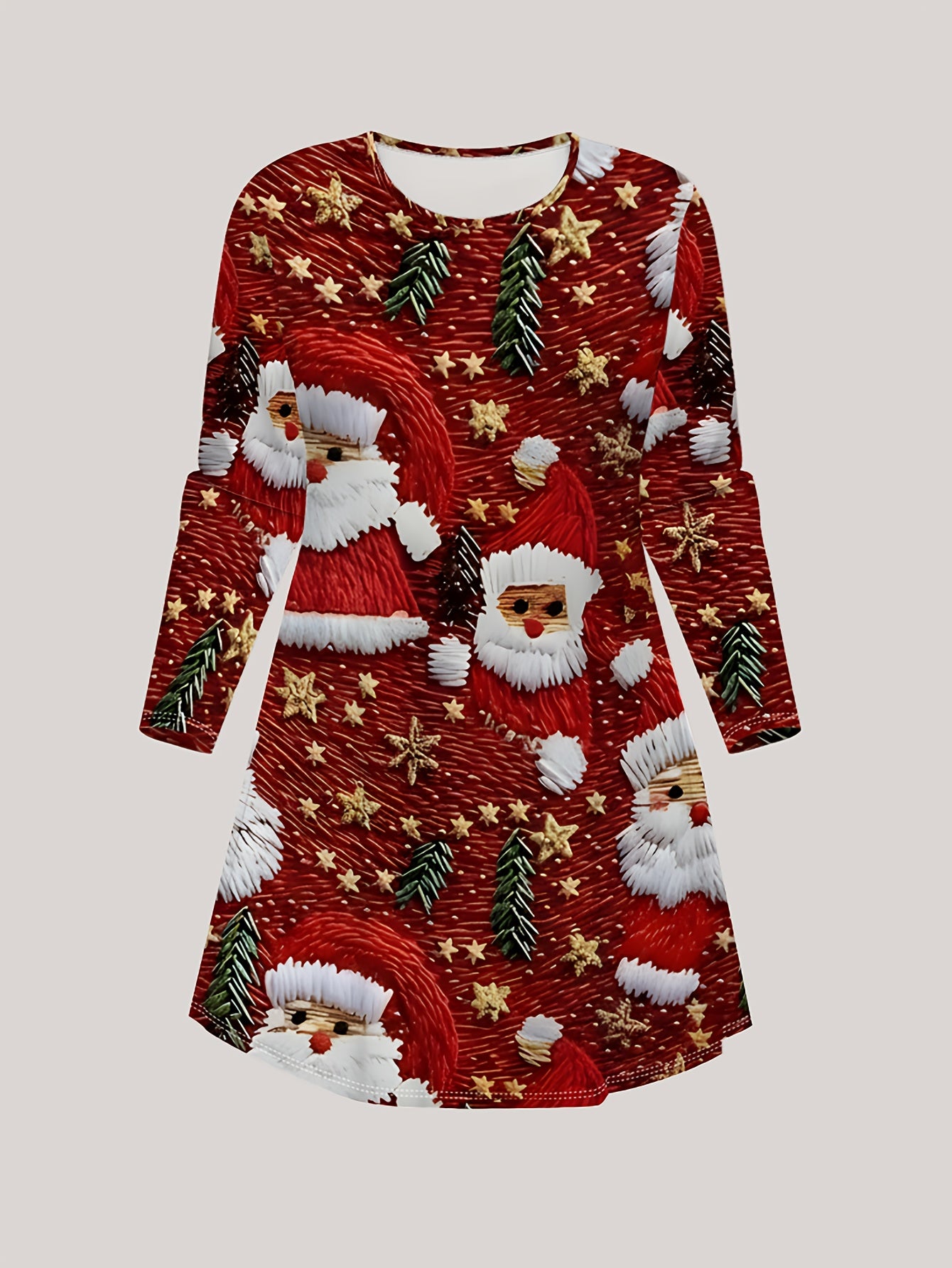 Մեծ չափս - Մեծ չափս - Մեծ չափս - Մեծ չափս, կանացի մեծ չափսի Սուրբ Ծննդյան նախշերով երկար թևքերով զգեստ - Ձմեռային հարմարավետ տոնական հանդերձանք՝ Ձմեռ պապի և եղջերուի դիզայնով