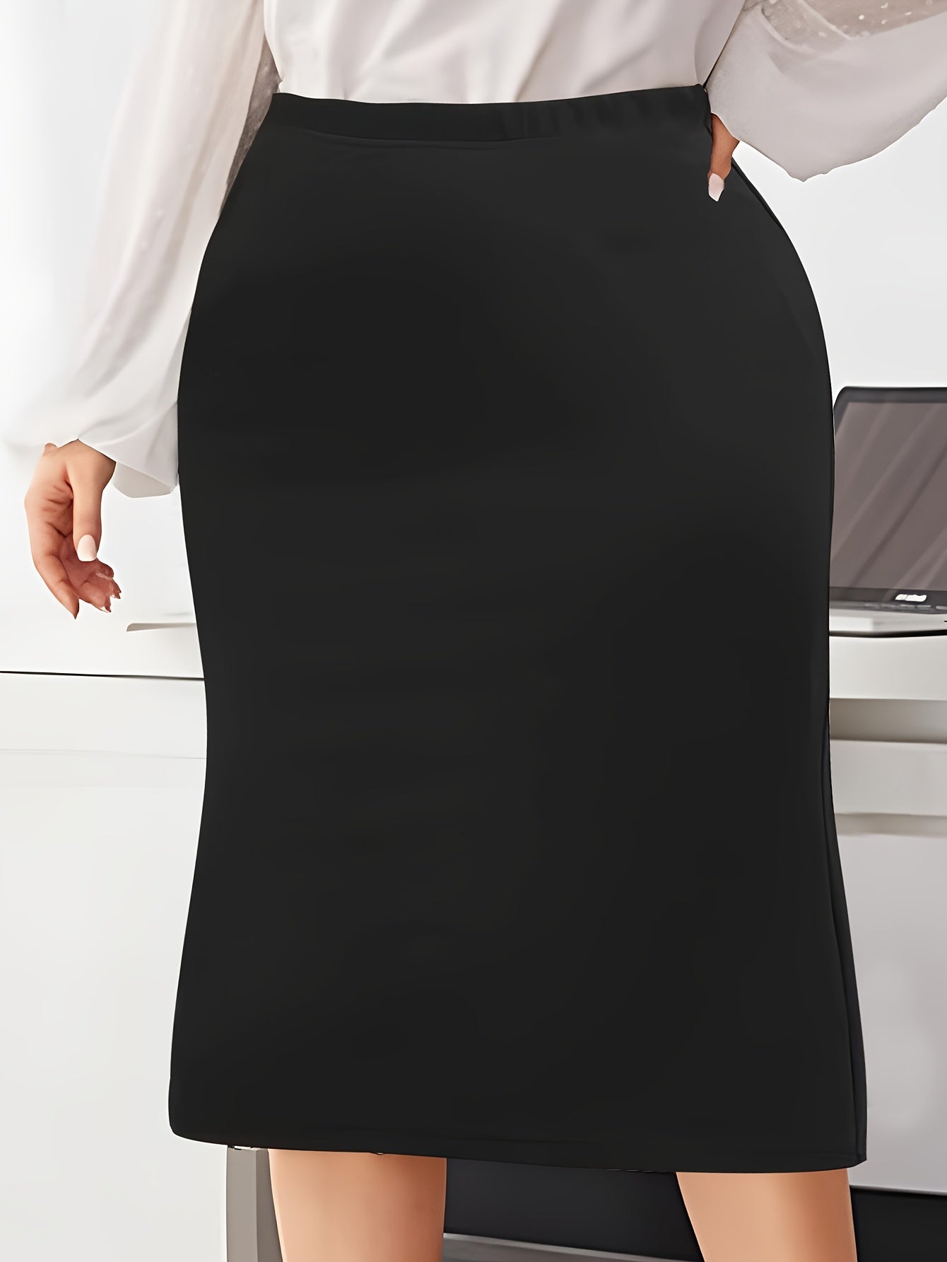 Պլյուս չափի պինդ գույնի բոդիկոն կիսաշրջազգեստ, էլեգանտ բարձր գոտկատեղով կիսաշրջազգեստ գարնան և ամառի համար, կանացի պլյուս չափի հագուստ