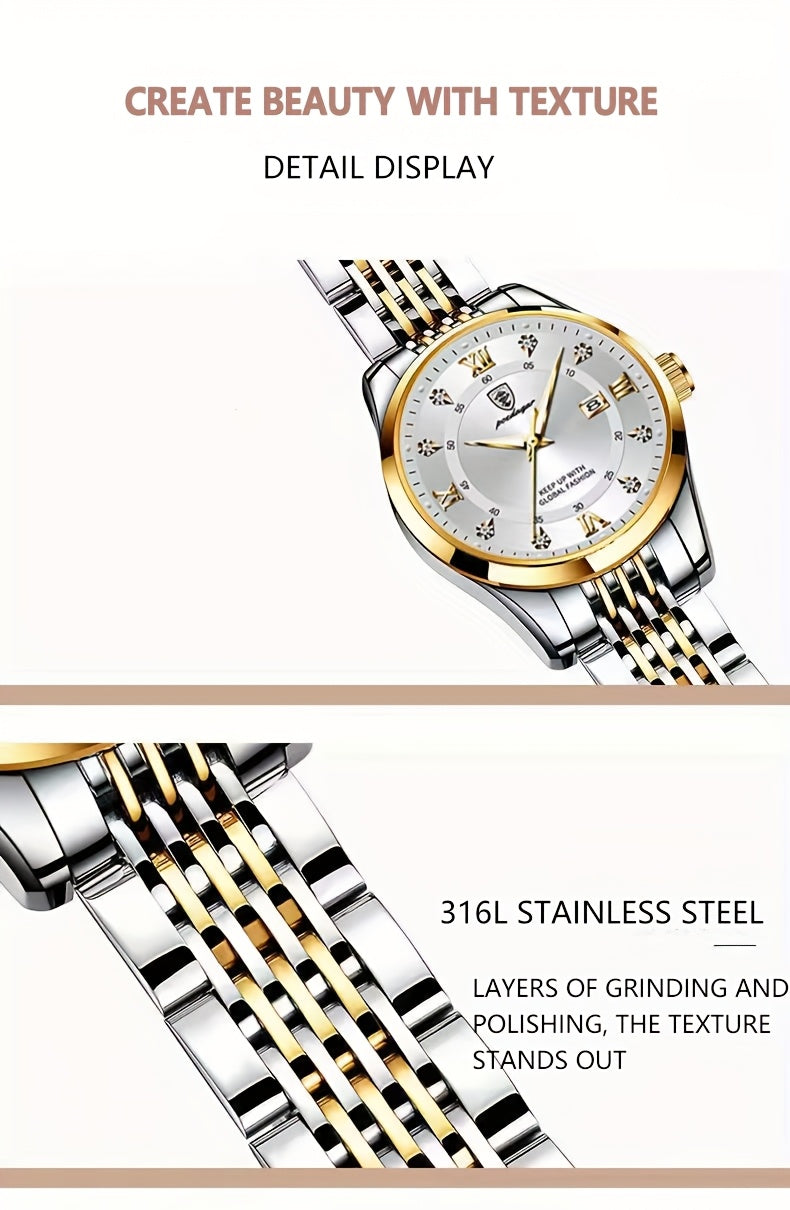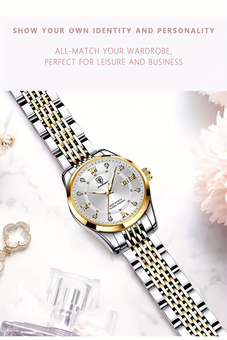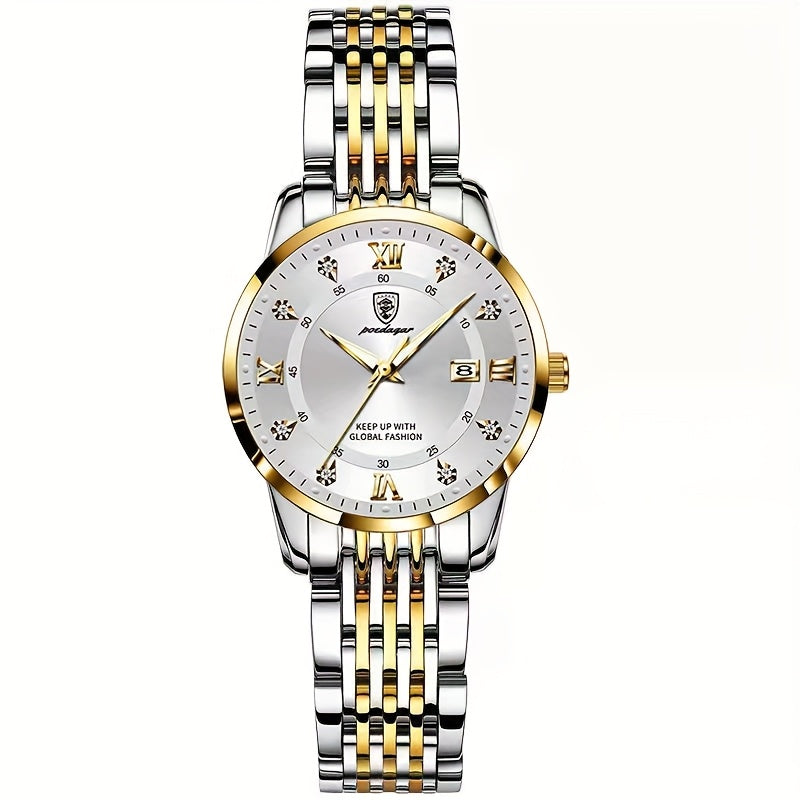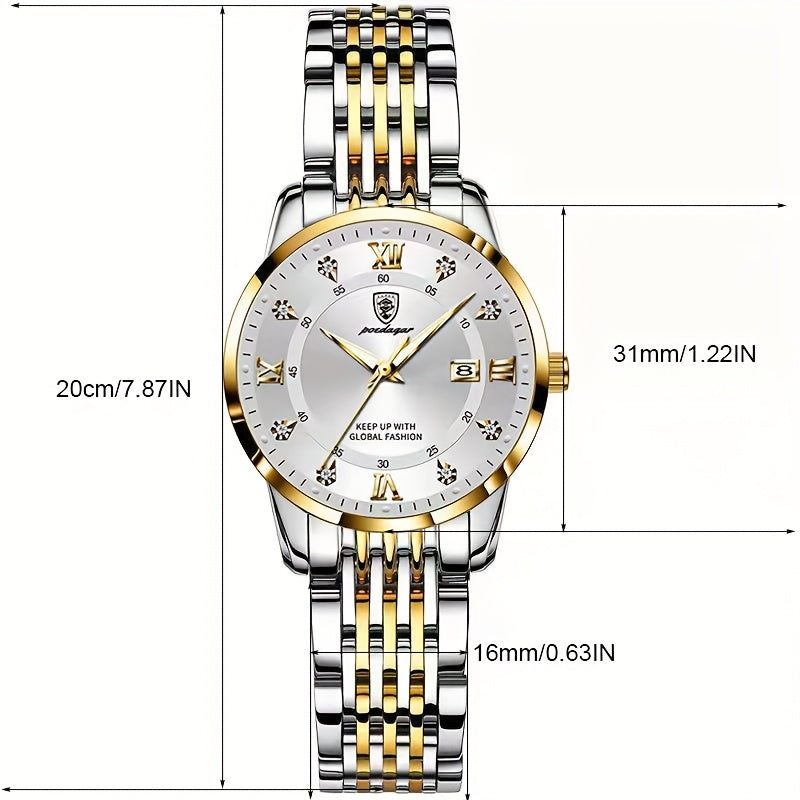 POEDAGAR էլեգանտ շքեղ քվարցային ժամացույց կանանց համար - ջրակայուն, լուսավոր օրացույց, գերբարակ մեխանիզմ, չժանգոտվող պողպատե ժապավեն, կլոր համաձուլվածքից պատյան, իդեալական է երեկույթների և տոների համար