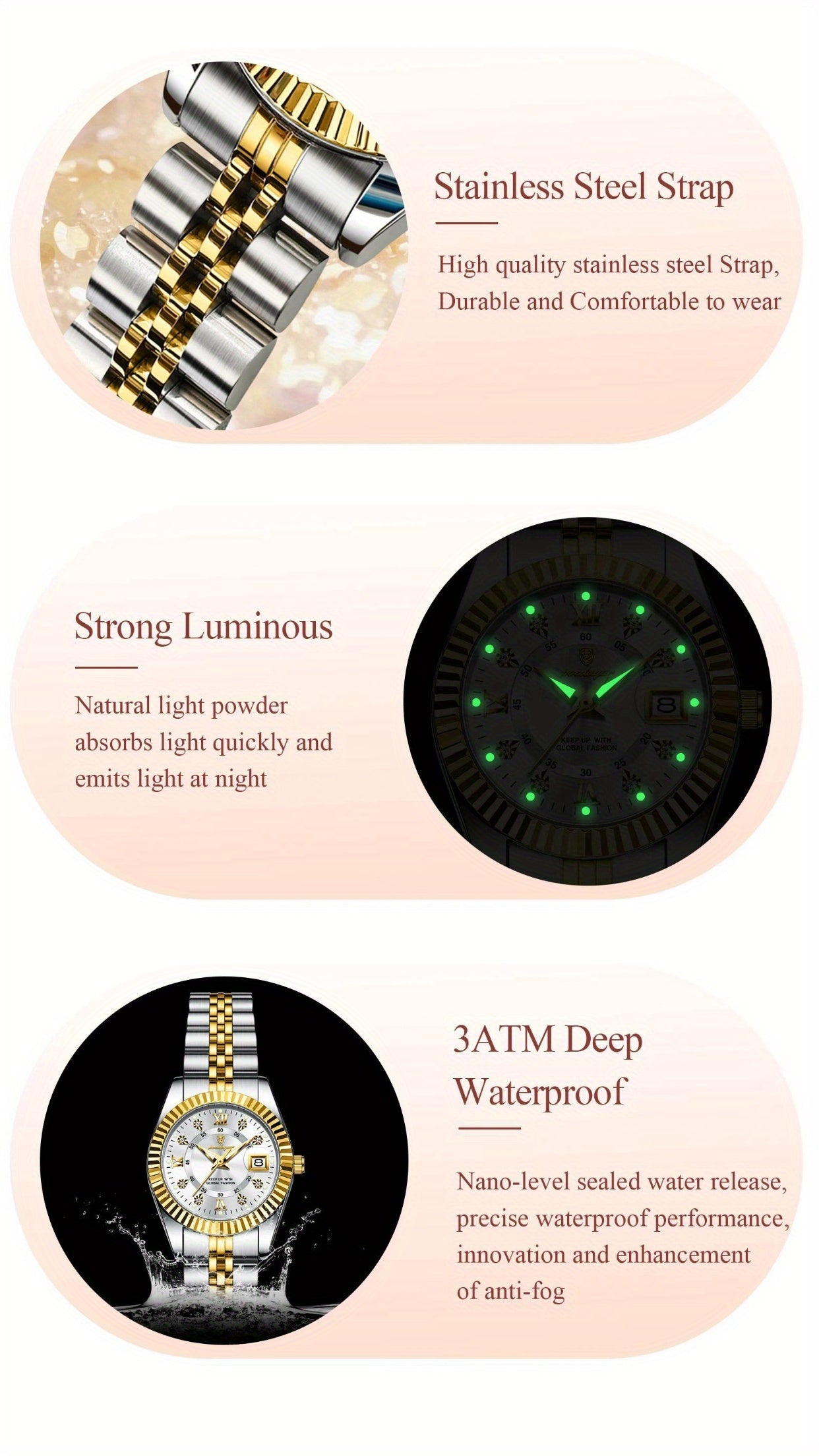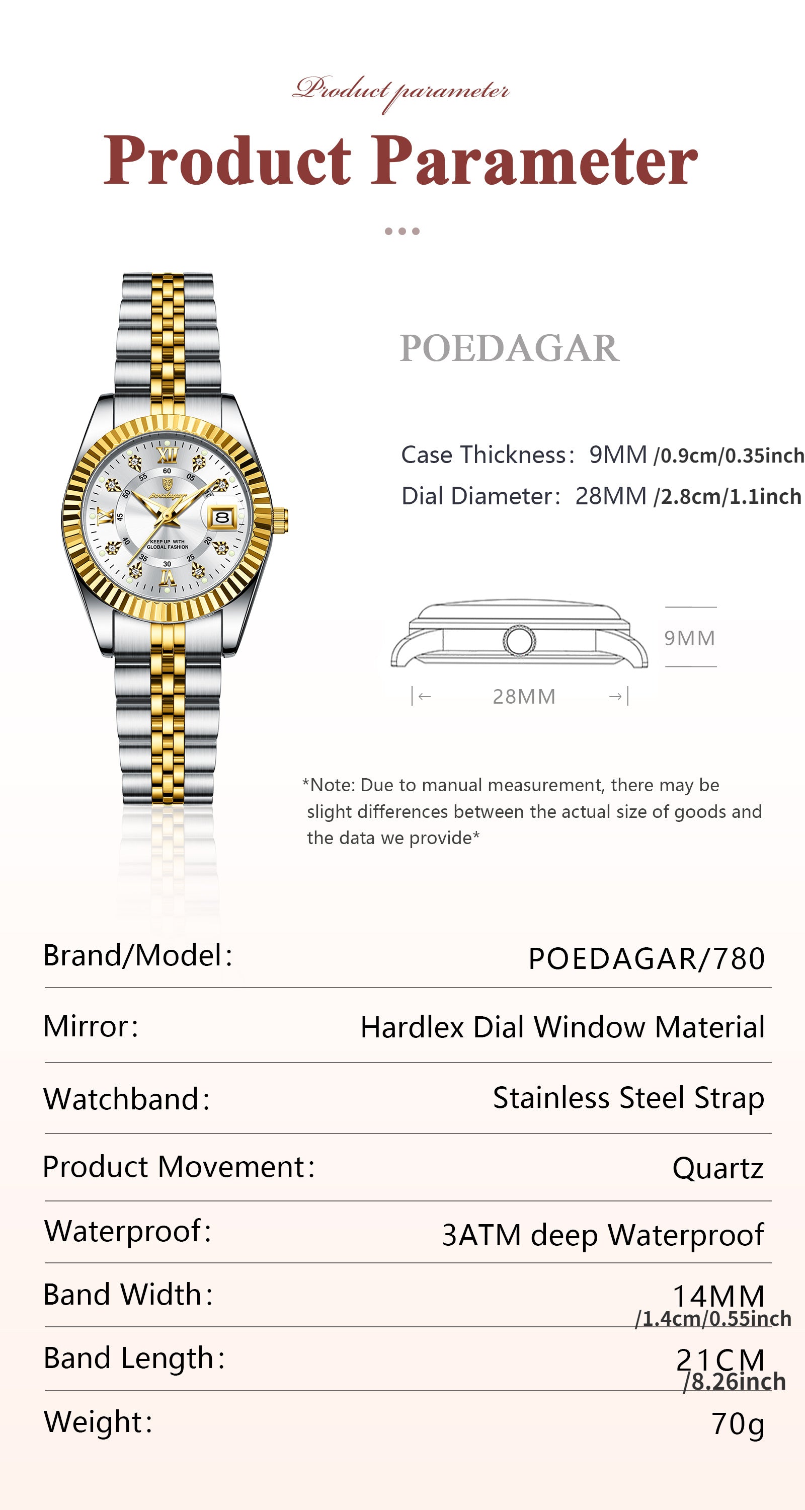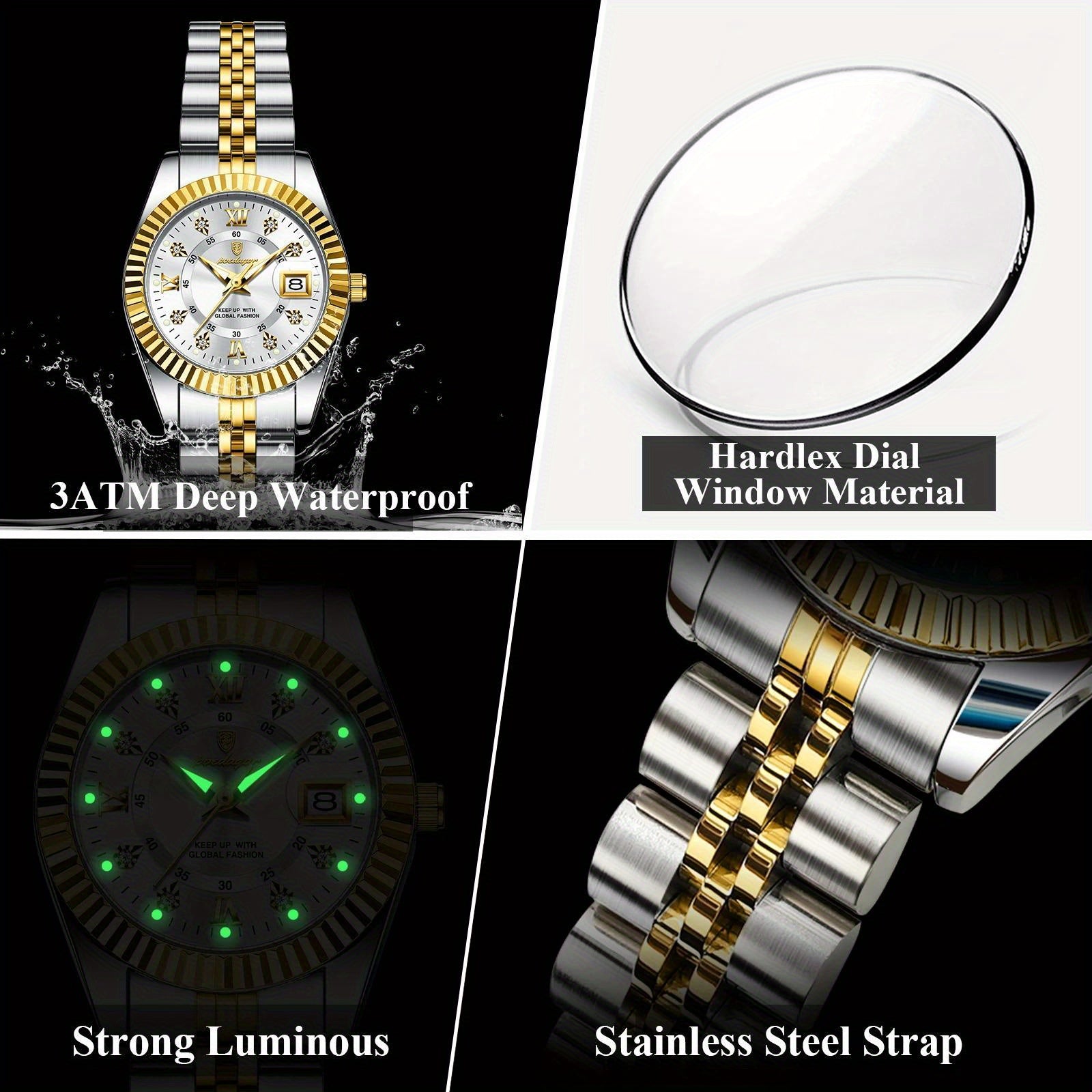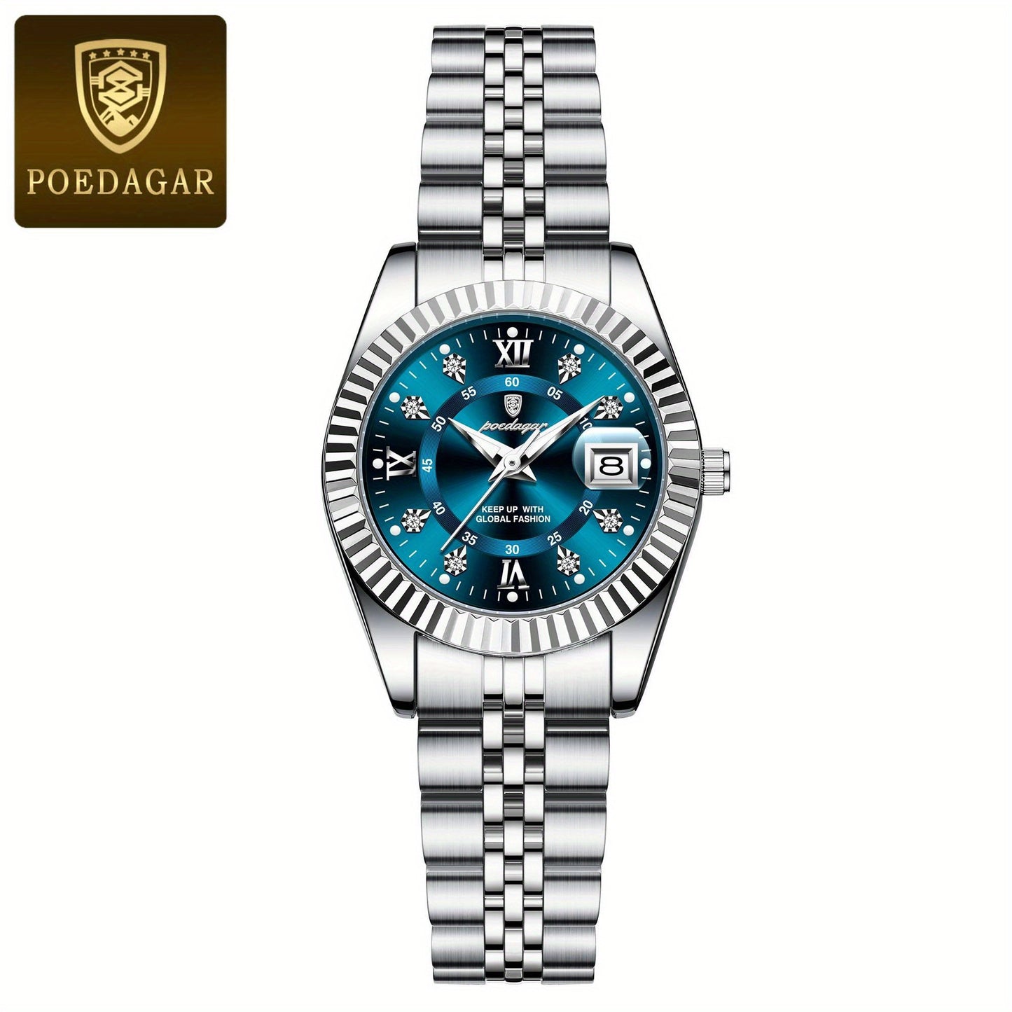 POEDAGAR շքեղ, էլեգանտ կանացի ժամացույց, լուսարձակող, ամսաթվի ժամացույց, չժանգոտվող պողպատից, քվարցային կանացի ժամացույցներ, Reloj