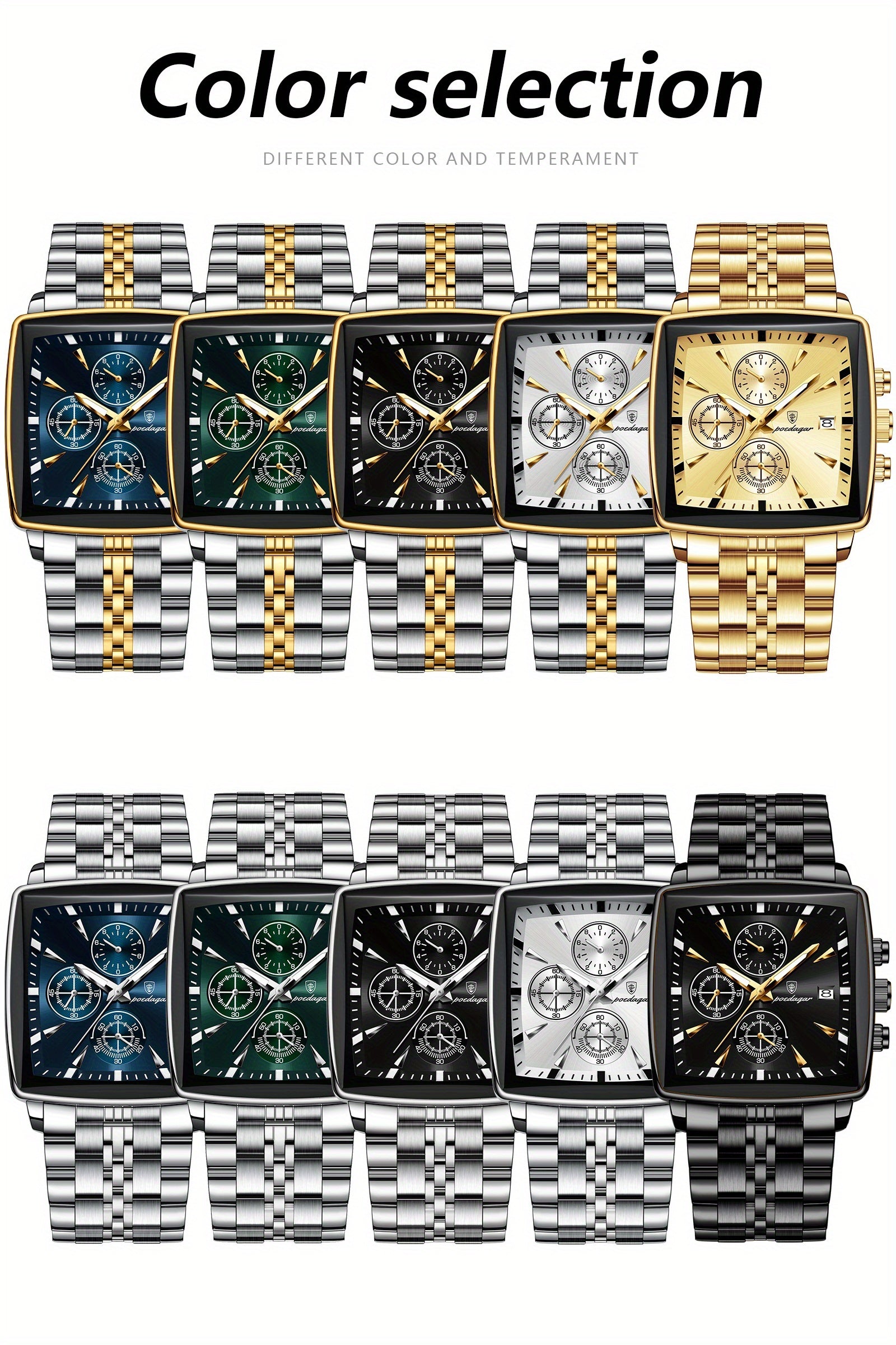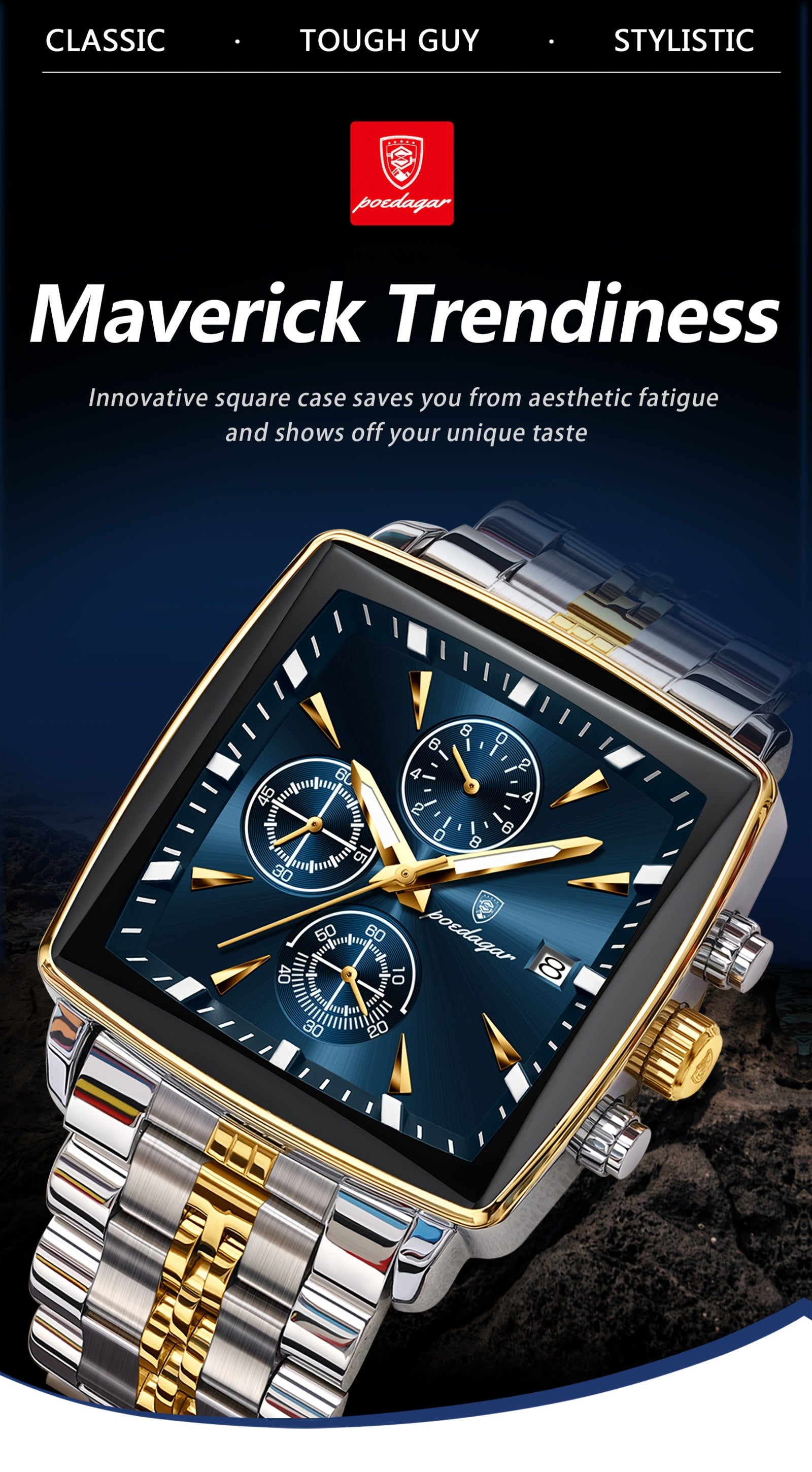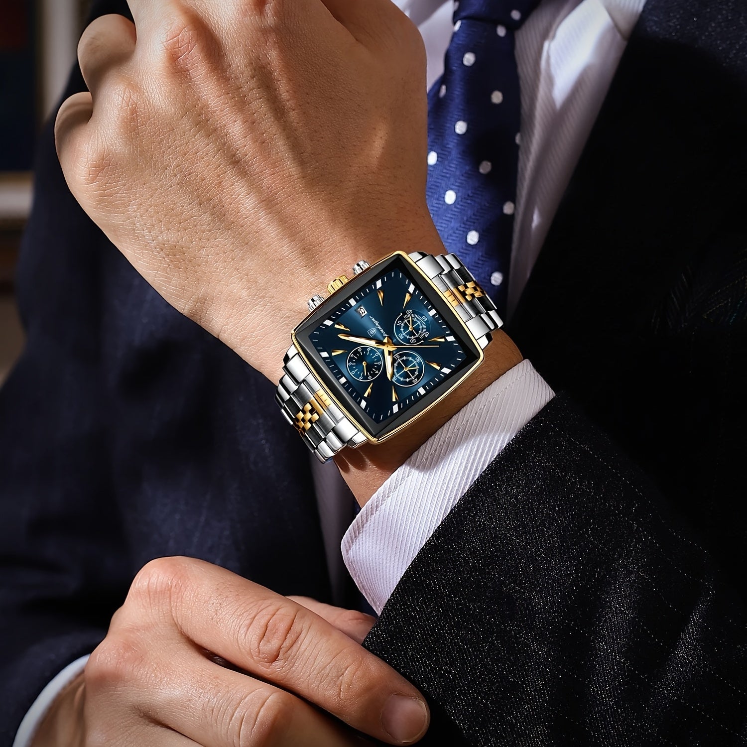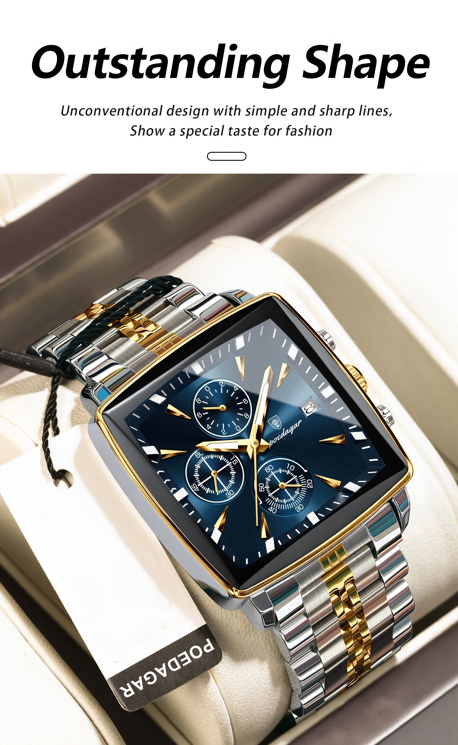 POEDAGAR Men's Stainless Steel Luminous Watch - Blue Dial Chronograph, High Quality Quartz Movement with Date Calendar, Golden-Tone Accents for Business Casual & Casual Attire, Formal Accessory, Stylish Accessory, Refined Cra