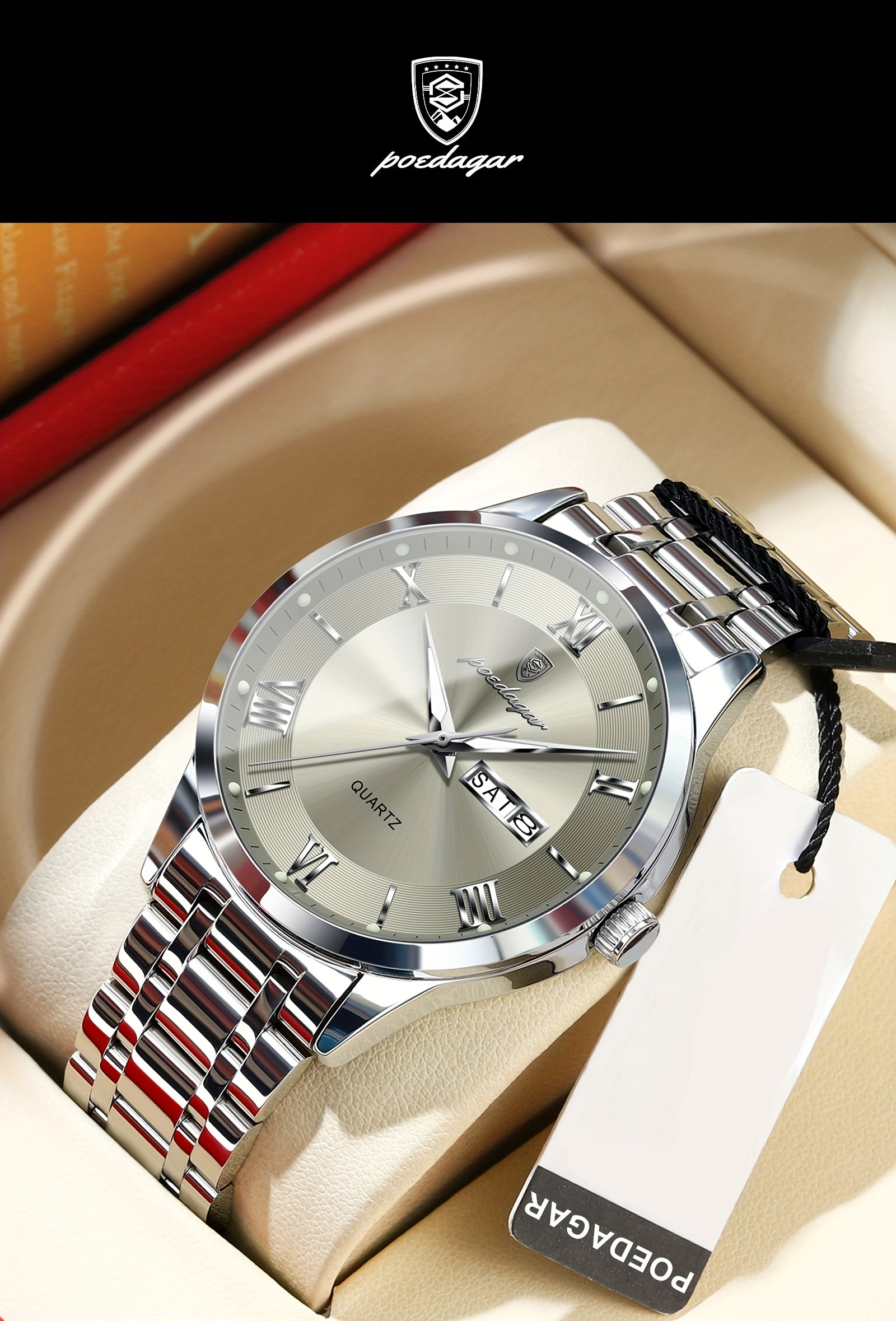 POEDAGAR նոր թրենդային, հանգստի և ժամանցի, էլեգանտ, պարզ կանացի ժամացույց, նոր դիզայնի, լուսավոր օրացույց, չժանգոտվող պողպատից, քվարցե կանացի ձեռքի ժամացույց։