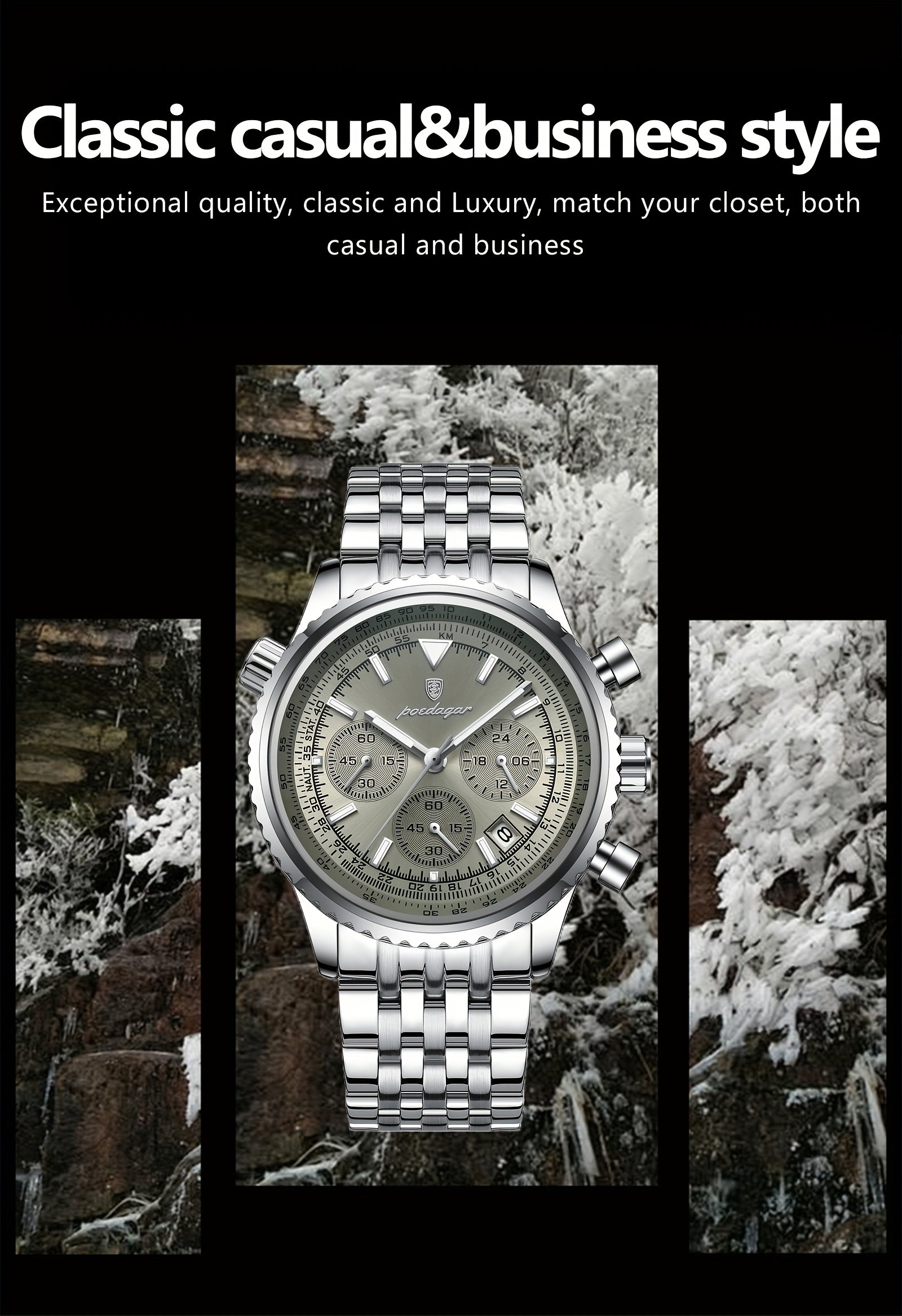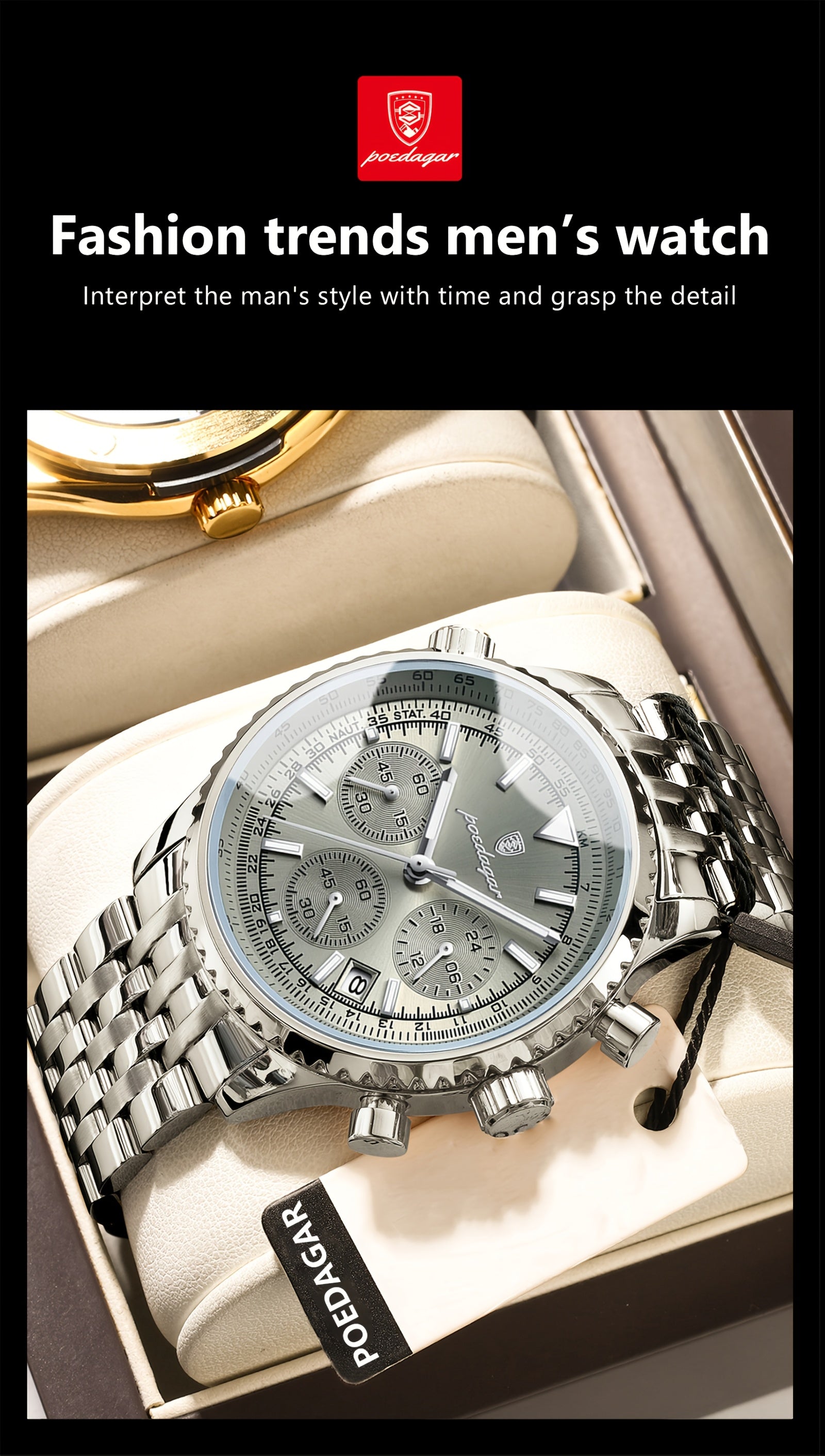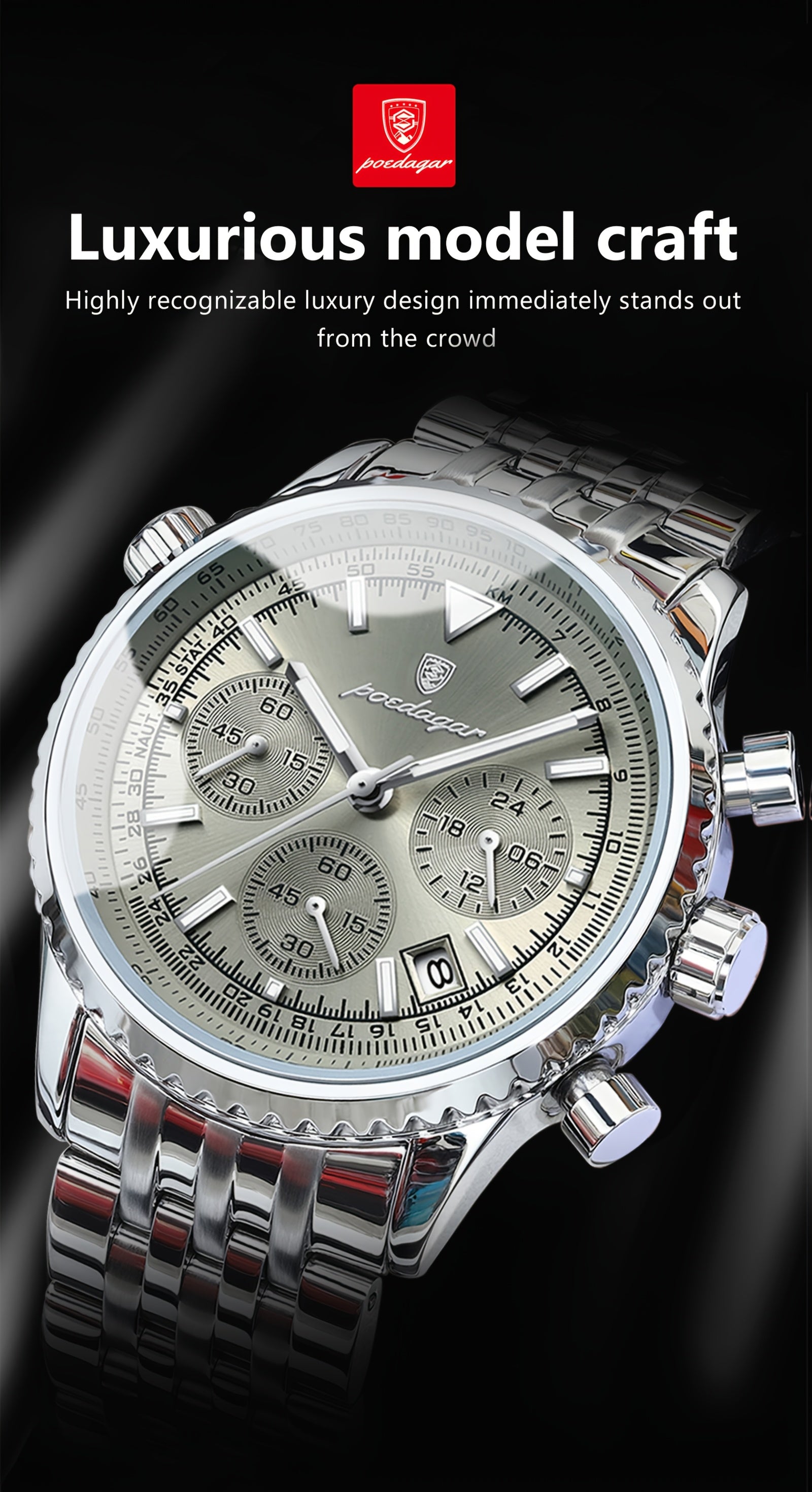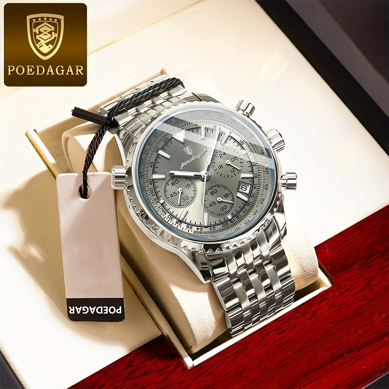 POEDAGAR New waterproof luminous calendar stainless steel ultra-thin Men's watch fashion students Korean business luxury youth chronograph quartz wristwatch., Perfect for Thanksgiving