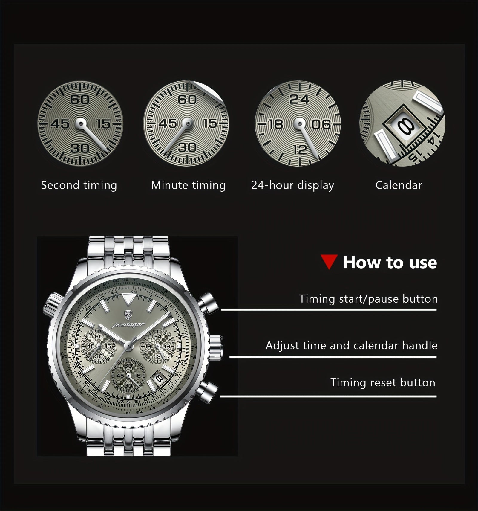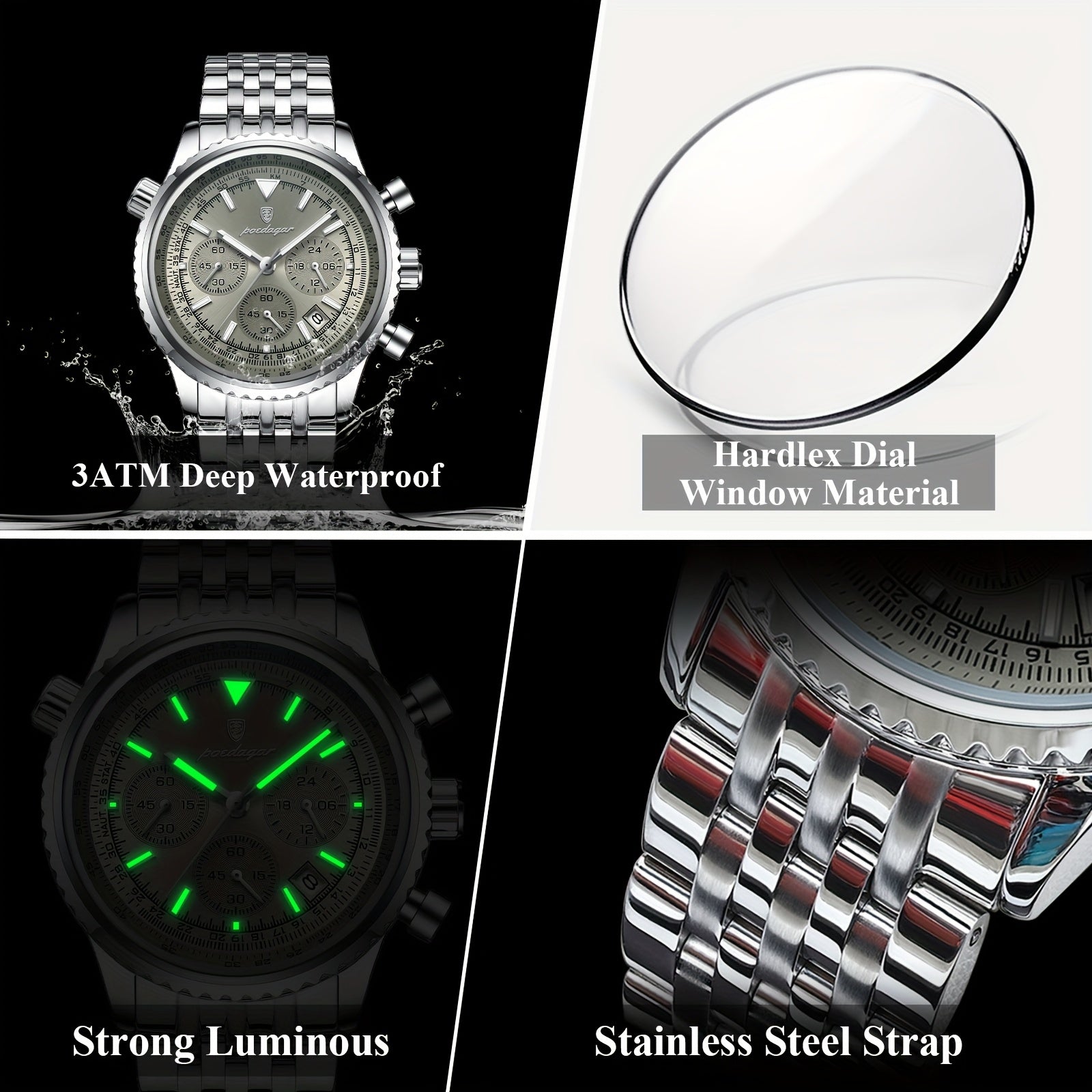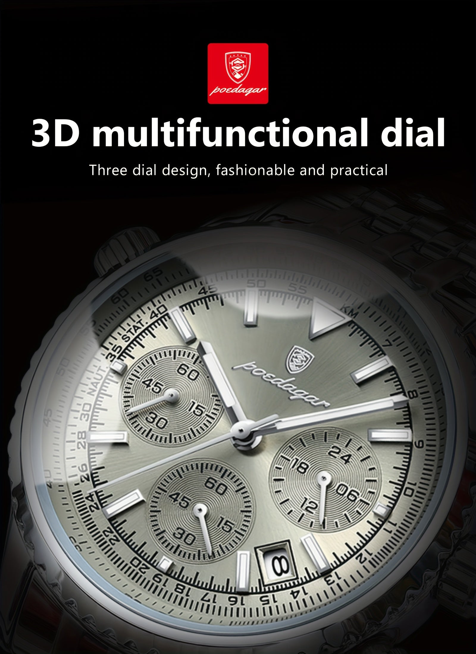 POEDAGAR New waterproof luminous calendar stainless steel ultra-thin Men's watch fashion students Korean business luxury youth chronograph quartz wristwatch., Perfect for Thanksgiving