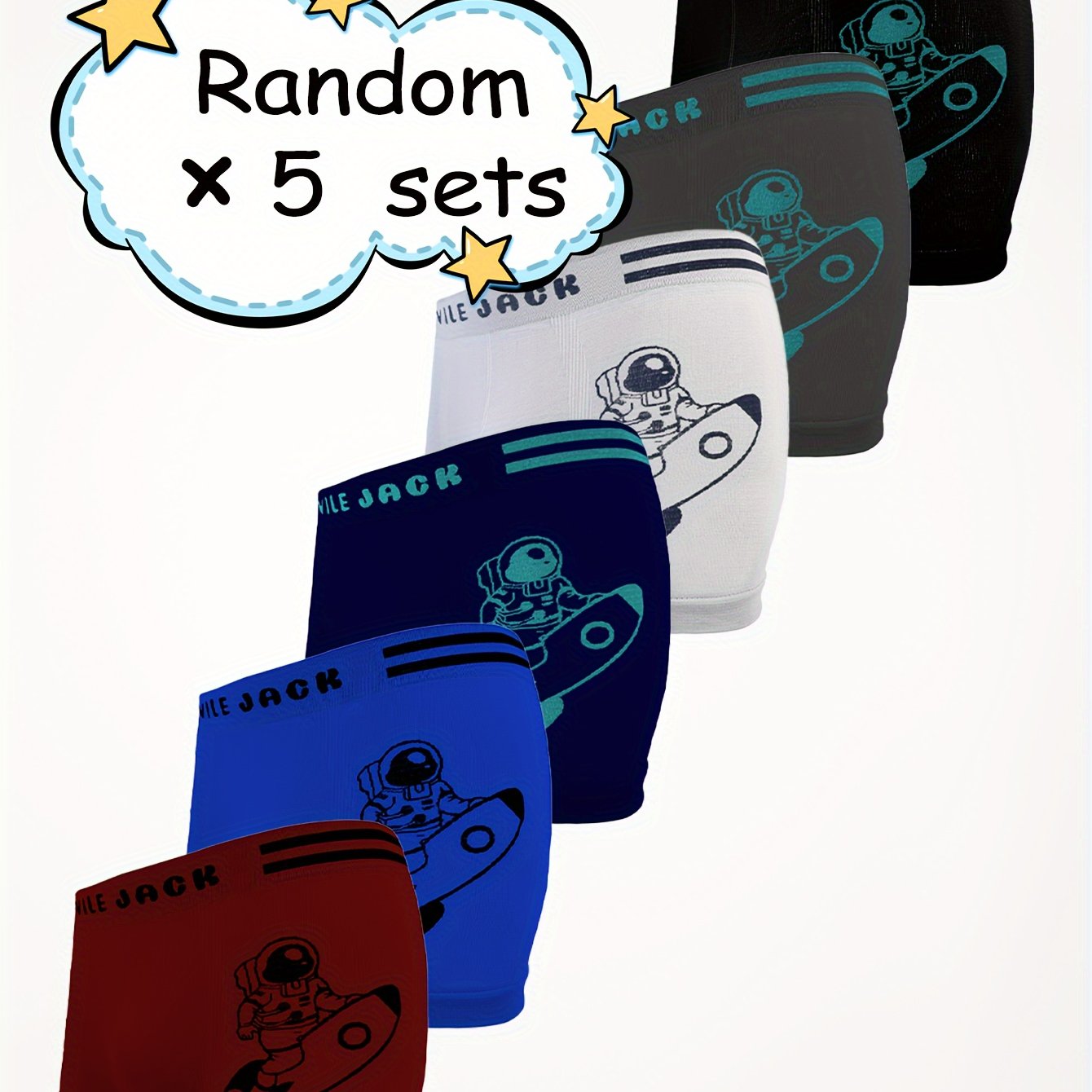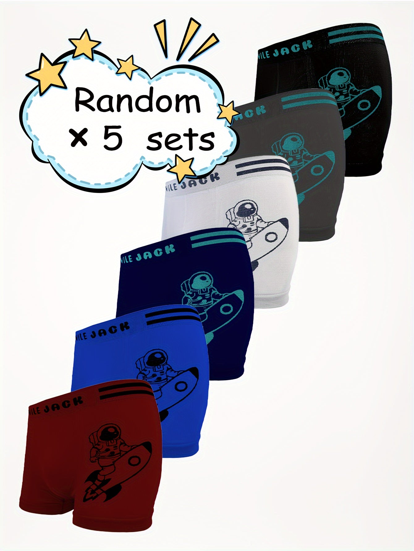 Պատահական 5 զույգ տղայի ներքնազգեստ, բարձր ձգվող շնչառական, հիանալի տիեզերագնաց փոքր հրթիռային տպագիր