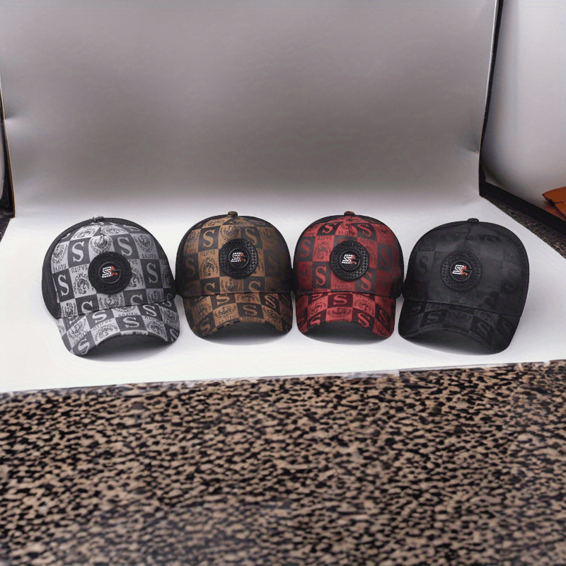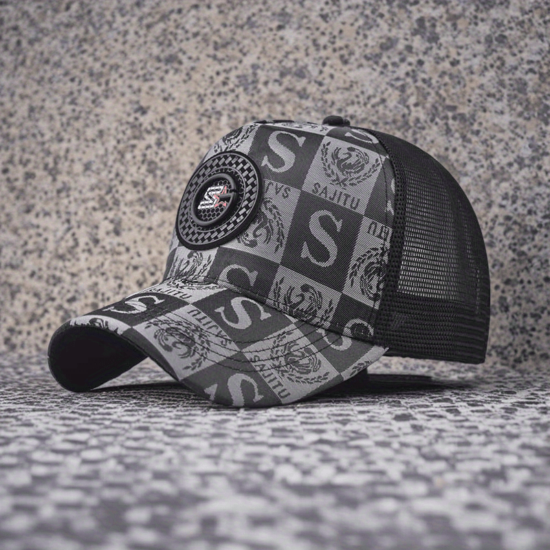Ռետրո պատչվորք ասեղնագործված S տառով բեյսբոլի գլխարկ - շնչող ցանցե արևապաշտպան գլխարկ տղամարդկանց և կանանց համար, վանդակավոր բադիկի դիզայնով, ամառային նորաձև բացօթյա գլխարկ լայնեզրով, գլխարկների համար նախատեսված պատառիկներ