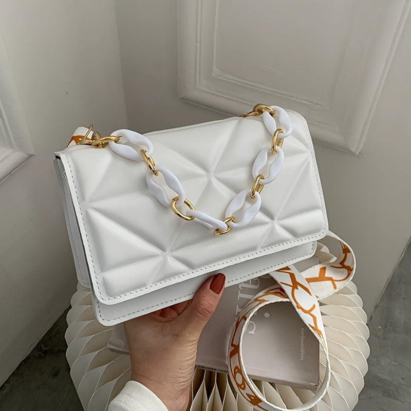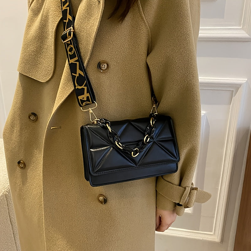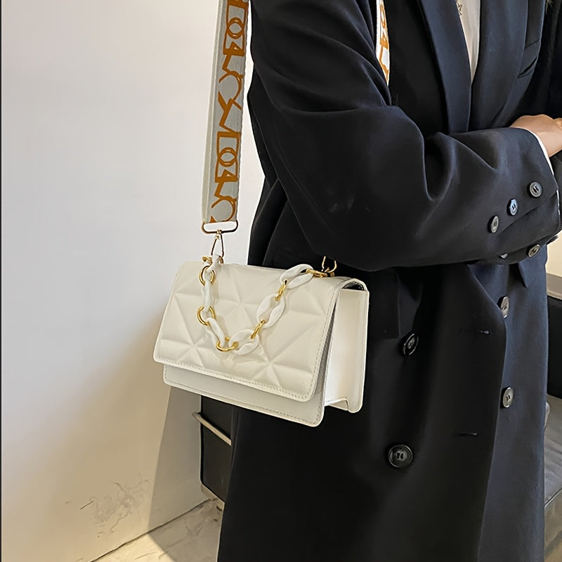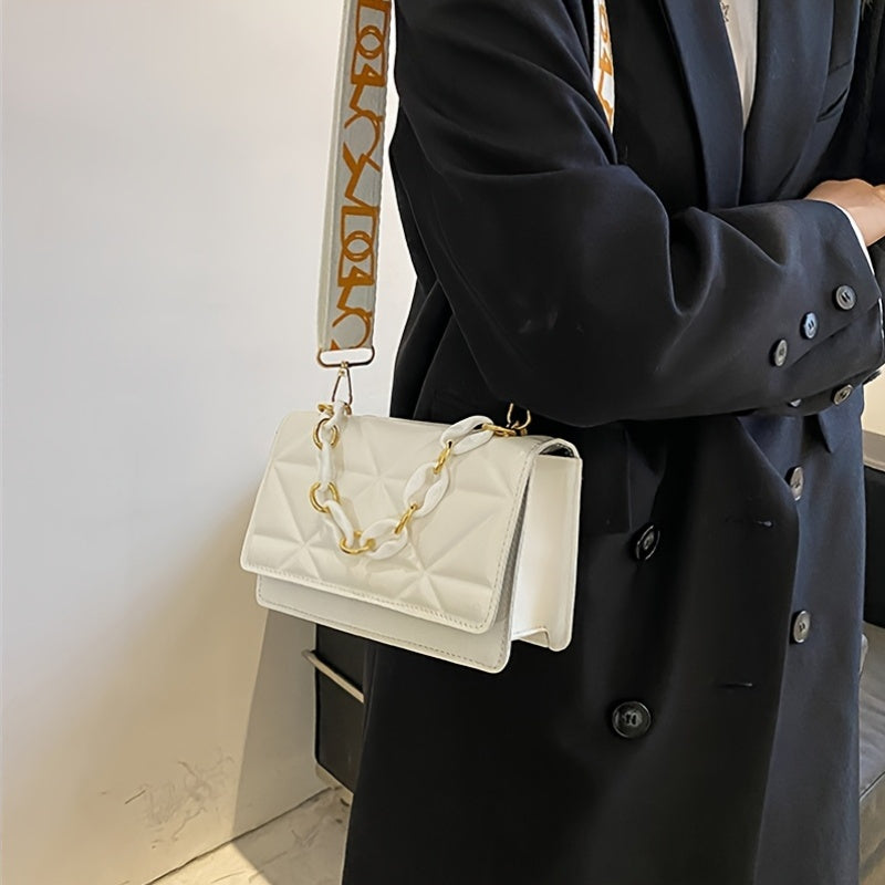 Ռետրո ուսի պայուսակ, նորաձև լայն ժապավենով կրծկալով պայուսակ, արևմտյան ոճի շղթայով փոքր պայուսակ, կանացի առօրյա պայուսակ (սպիտակ/սև/վարդագույն/շագանակագույն)