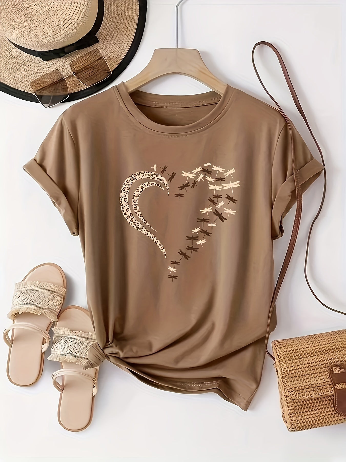 Կլոր օձիքով կանացի սրտաձև նախշերով մարզաշապիկ, կլոր օձիքով կարճ թևքերով վերնաշապիկ։ Պատրաստված է շնչող պոլիեսթեր մանրաթելից, կարելի է լվանալ լվացքի մեքենայով և հարմար է չորս եղանակների համար։