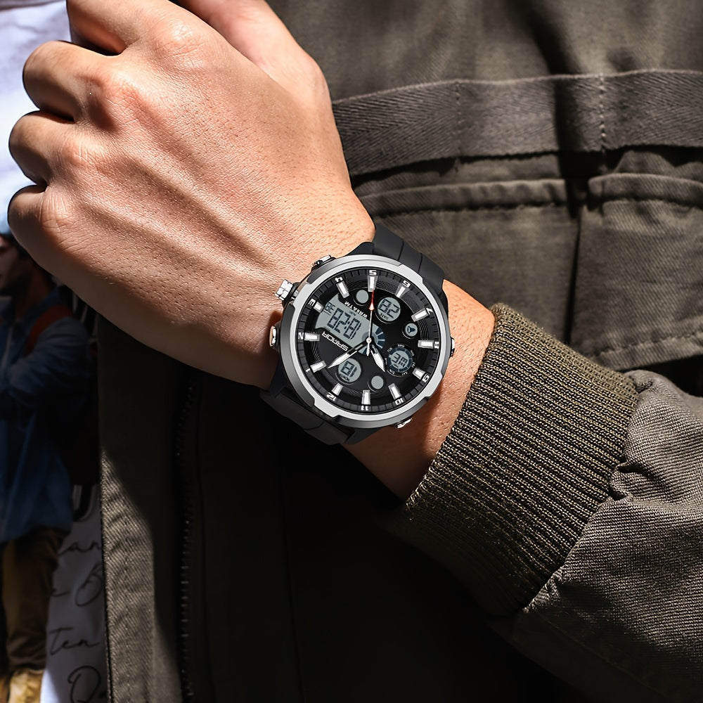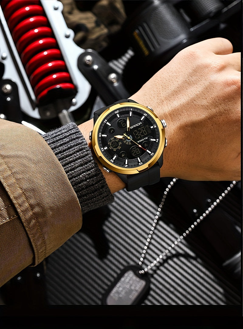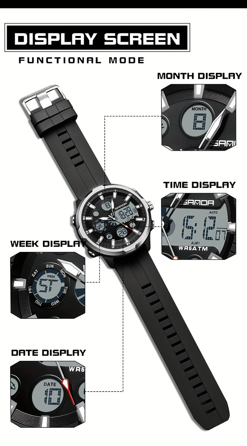 SANDA տղամարդկանց թվային բացօթյա սպորտային ձեռքի ժամացույց, ջրակայուն բազմաֆունկցիոնալ քրոնոգրաֆիկ քվարցային ժամացույց նվերային ժամացույցի համար 9053