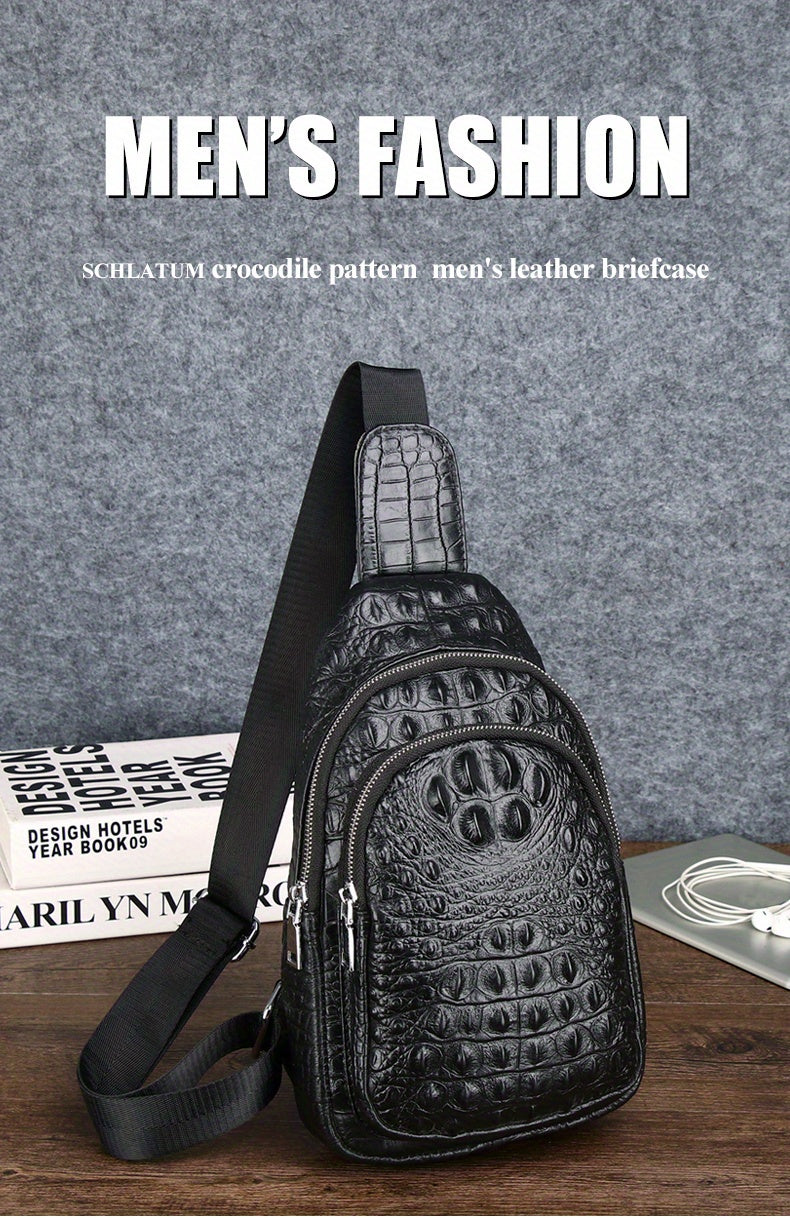 SCHLATUM բնական կաշվից կոկորդիլոսի նախշերով պայուսակ - սև, մեծ տարողունակությամբ բազմաֆունկցիոնալ մեջքի պայուսակ ճանապարհորդության, սպորտի և քեմփինգի համար, ոճային կայծակաճարմանդով փակվող դիզայնով