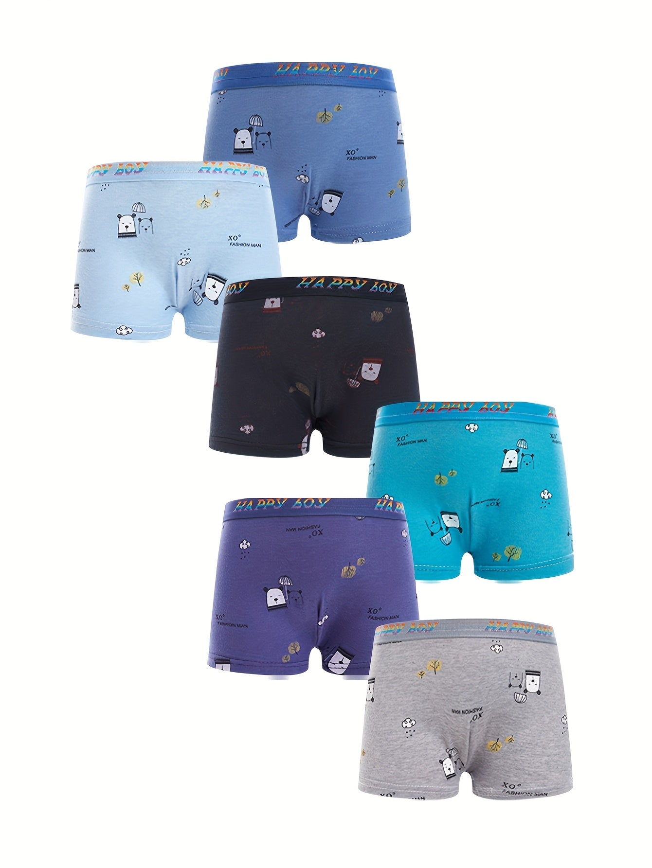 Բռնցքամարտիկի 6 տղաների հավաքածու՝ գեղեցիկ կենդանիներով, վառ գույներով և տարբեր նախշերով; Հարմարավետ, շնչող, մեքենայով լվացվող և հեշտ խնամվող: