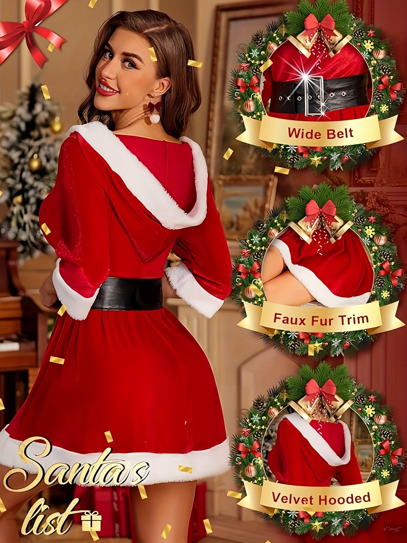 Սեքսուալ, նեղ, կարմիր, խորը V-աձև, գլխարկով միդի զգեստ՝ Սուրբ Ծննդյան համար | Փքված արքայադստեր մինի կիսաշրջազգեստ, իրանը ամրացնող երեկույթի հանդերձանք, Սուրբ Ծննդյան զգեստ, տոնական երեկույթի զգեստ, կարճ, գլխարկով զգեստ՝ սև գոտիով, կոնտրաստային, սպիտակ