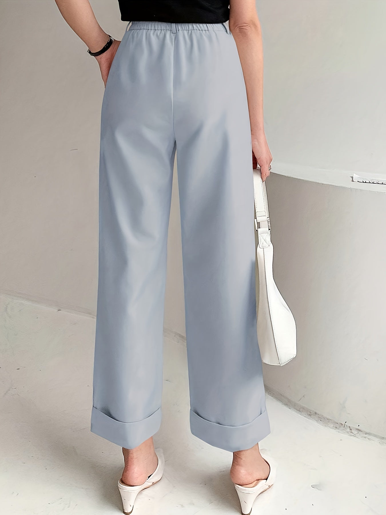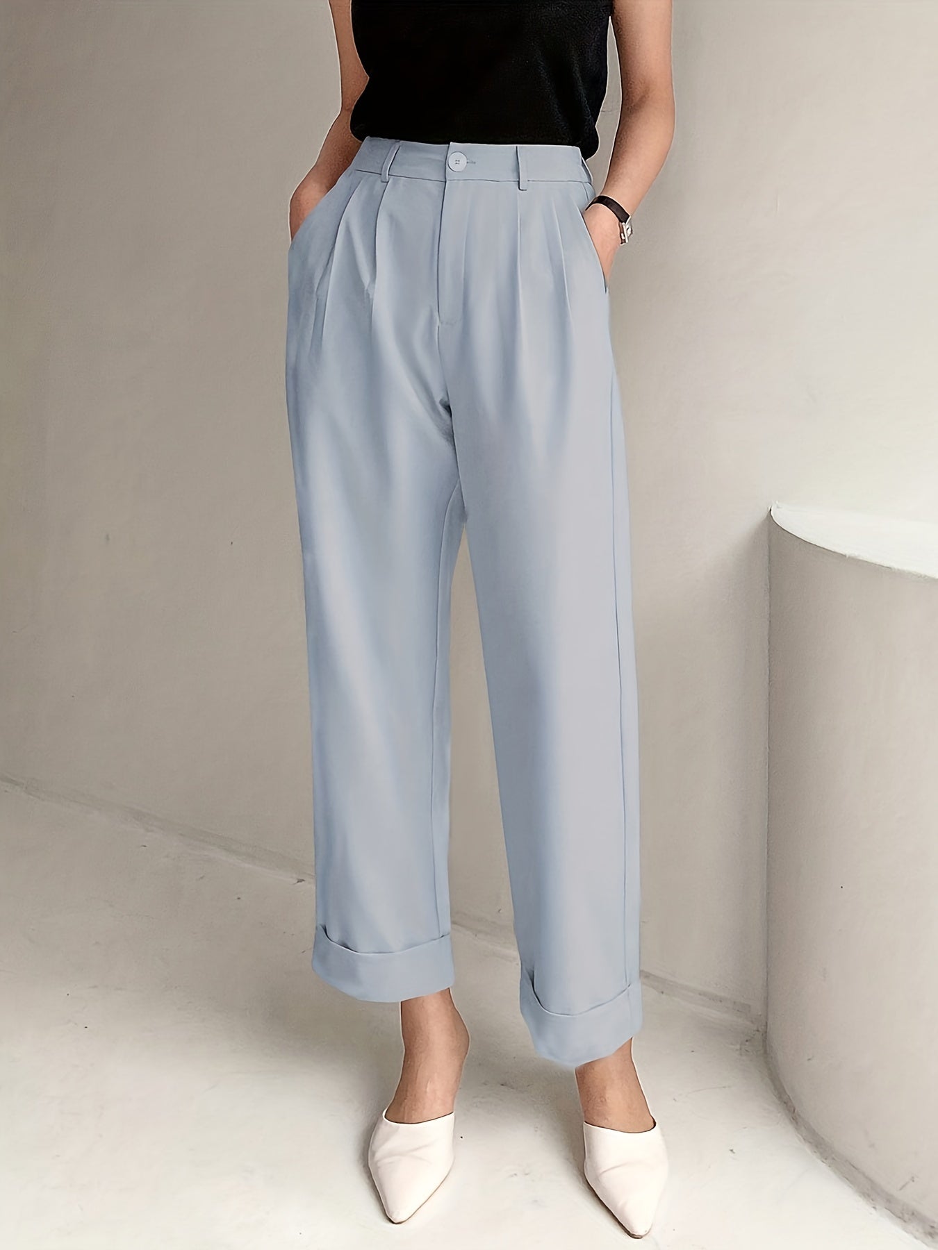 Թեք գրպաններով լայն կոստյում տաբատ, ամենօրյա ազատ տաբատ գարնան և ամառի համար, կանացի հագուստ