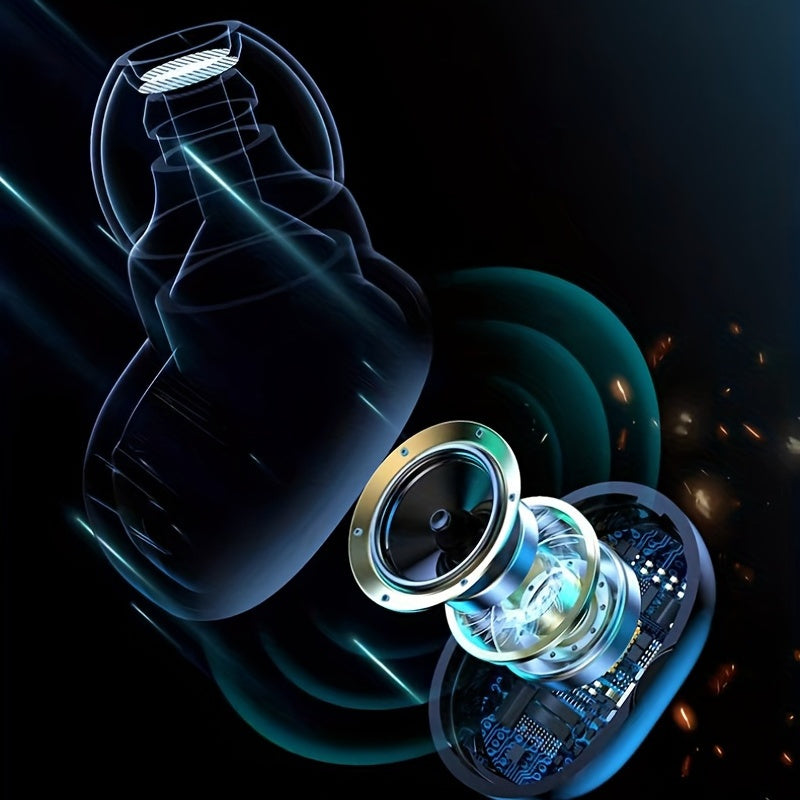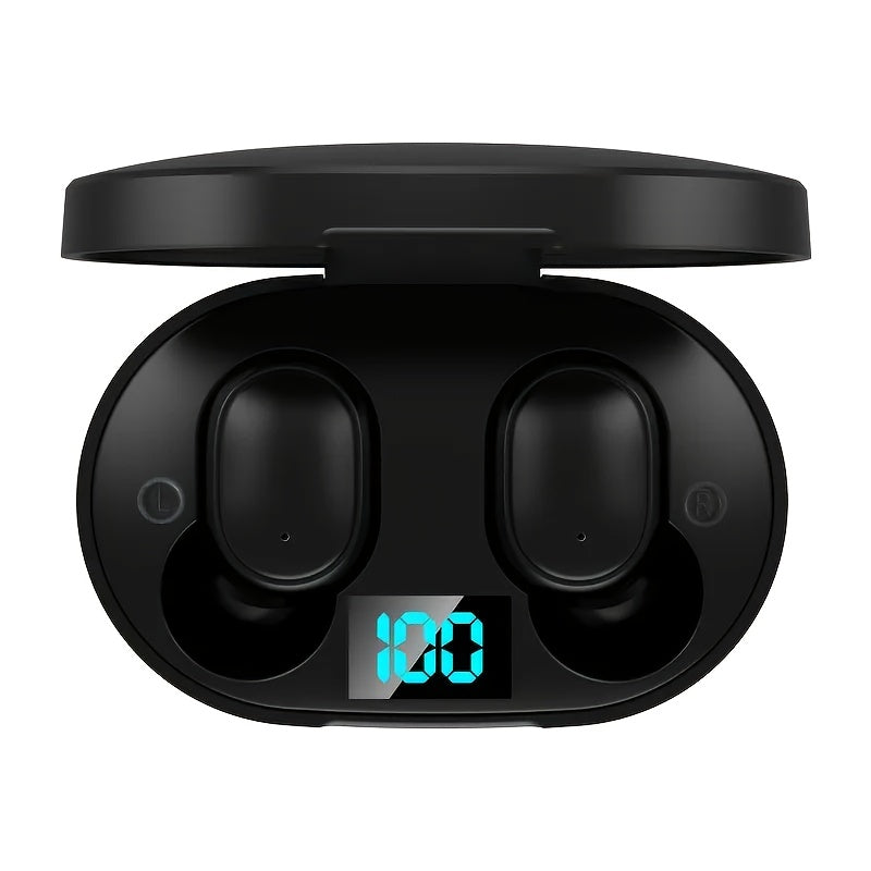 Նրբագեղ սև անլար ականջակալներ՝ HiFi ստերեոով և սպորտային խոսափողով. անլար ականջակալներ iOS/Android-ի համար, ներառված է USB լիցքավորման պատյան.
